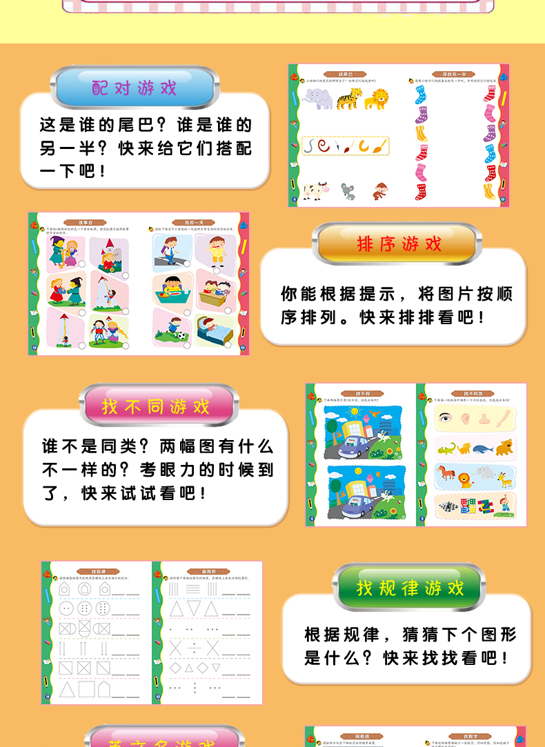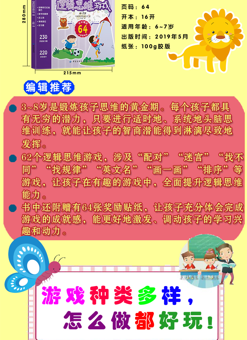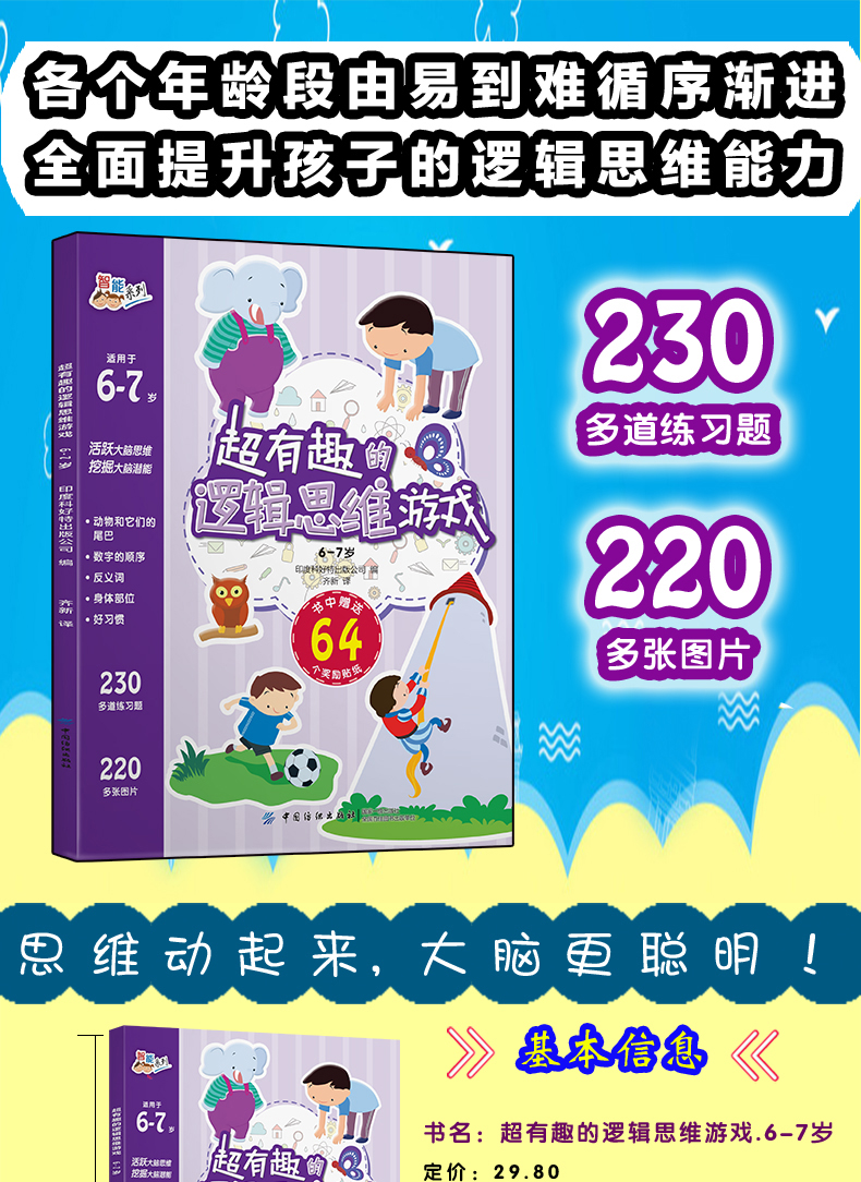 正版 超有趣的逻辑思维游戏:6-7岁儿童启蒙幼小衔接智力开发数学逻辑思维训练 比大小排序形状算数练习题 图形贴纸亲子互动游戏书
