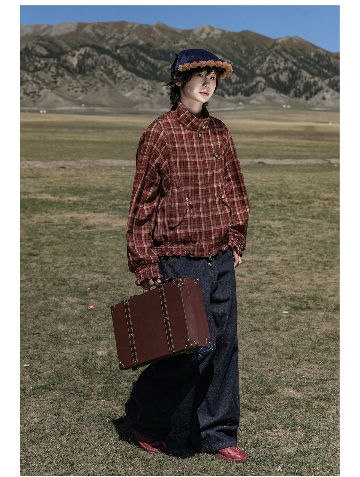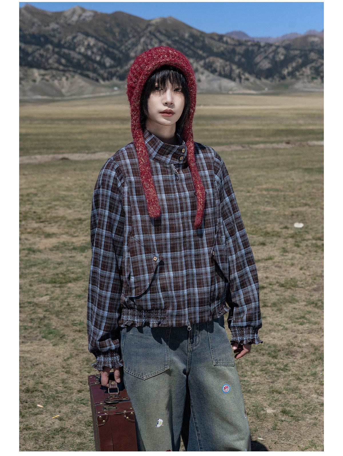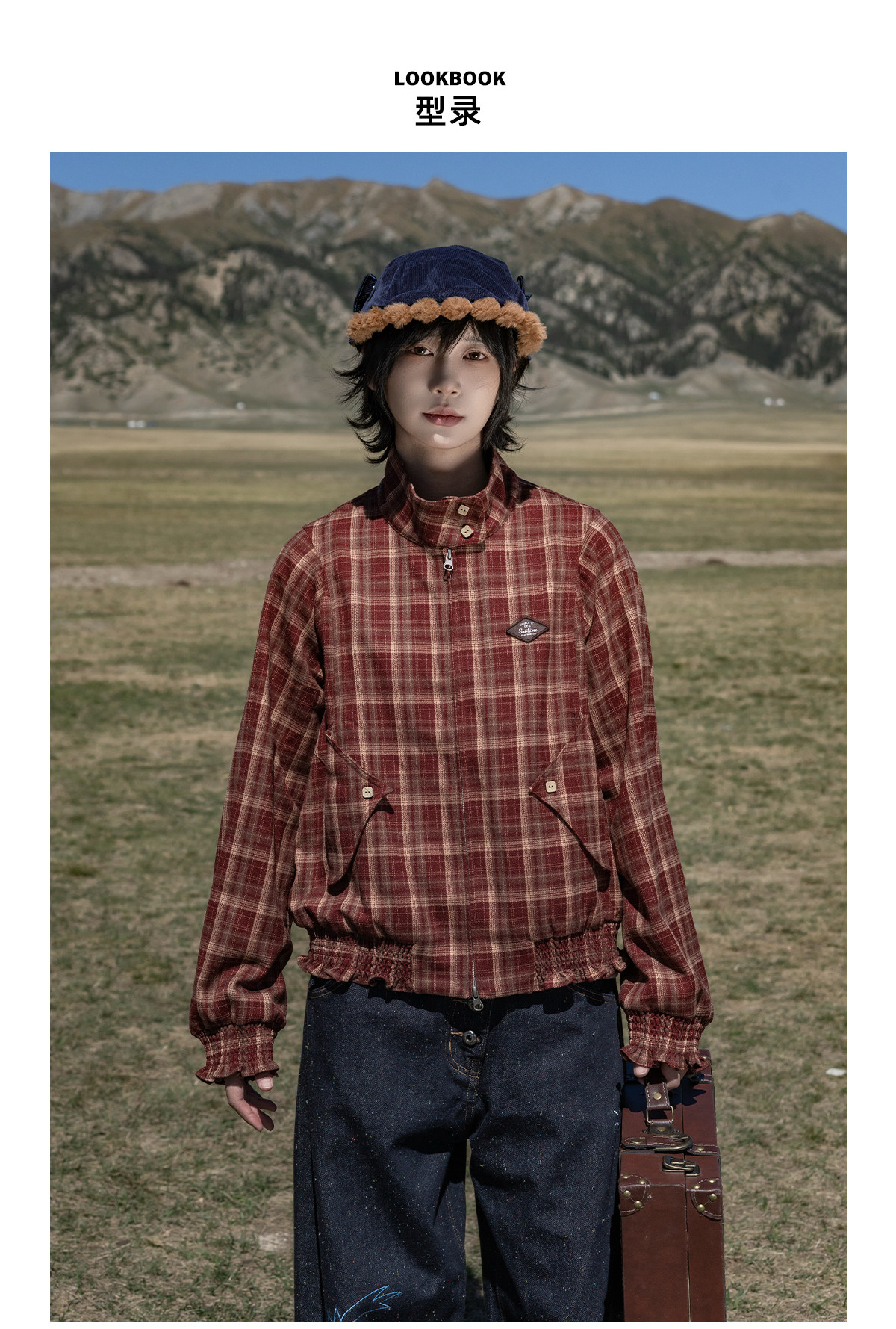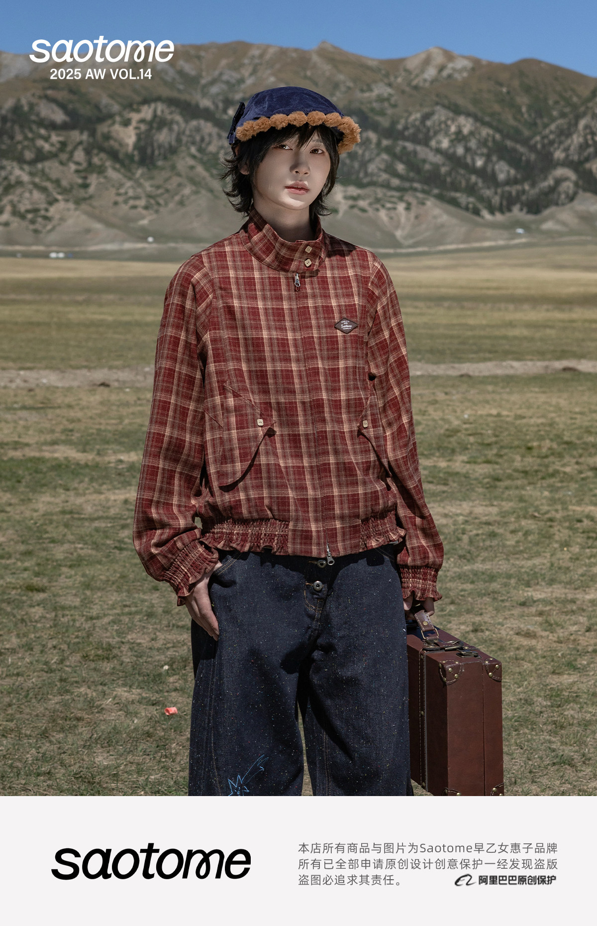早乙女惠子saotome/STMWT14907/磨毛格纹打揽哈灵顿夹克