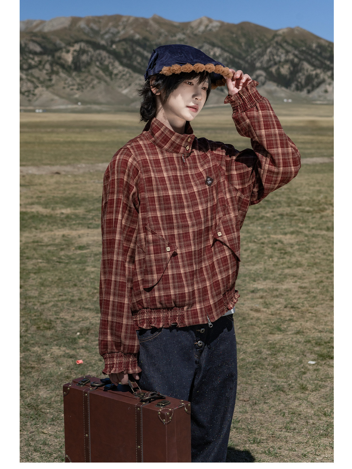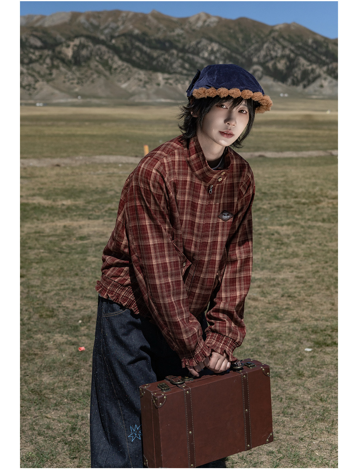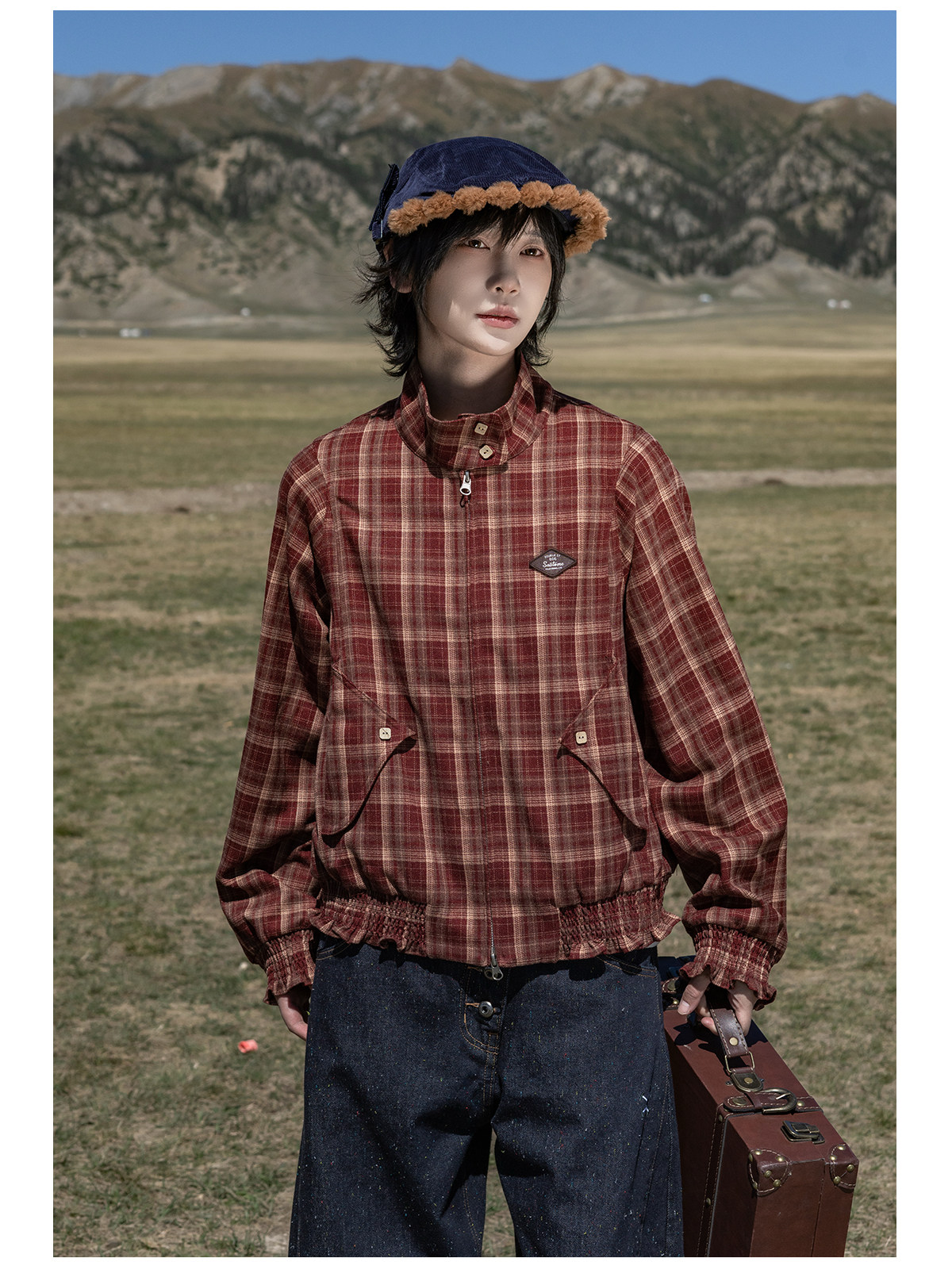 早乙女惠子saotome/STMWT14907/磨毛格纹打揽哈灵顿夹克