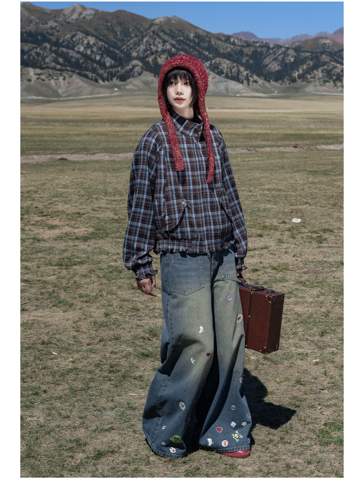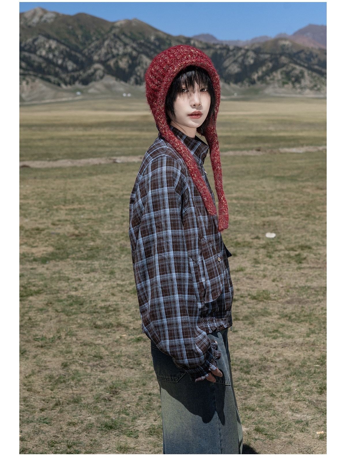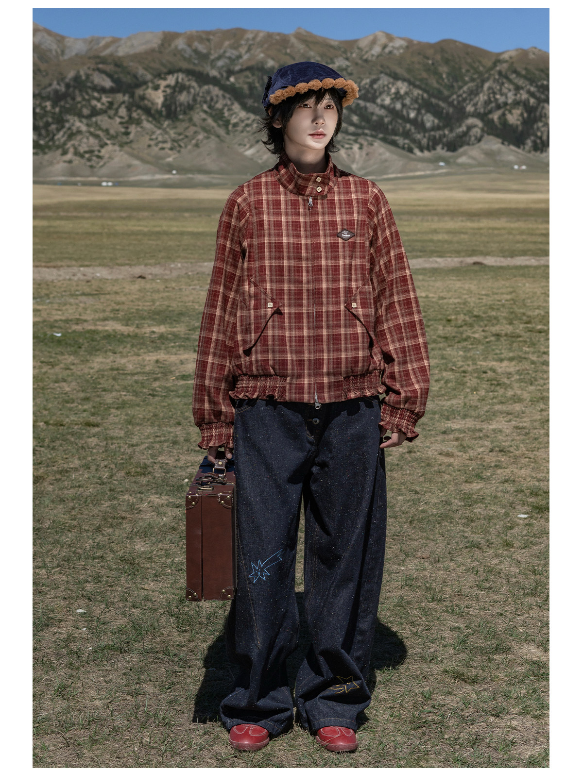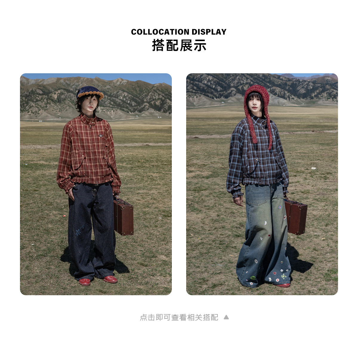早乙女惠子saotome/STMWT14907/磨毛格纹打揽哈灵顿夹克