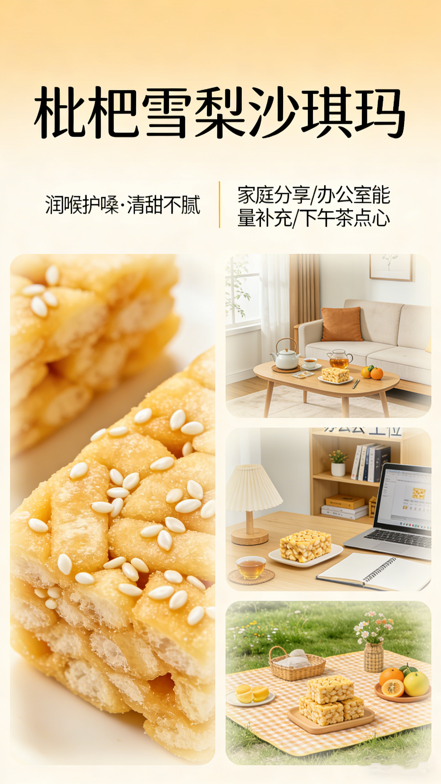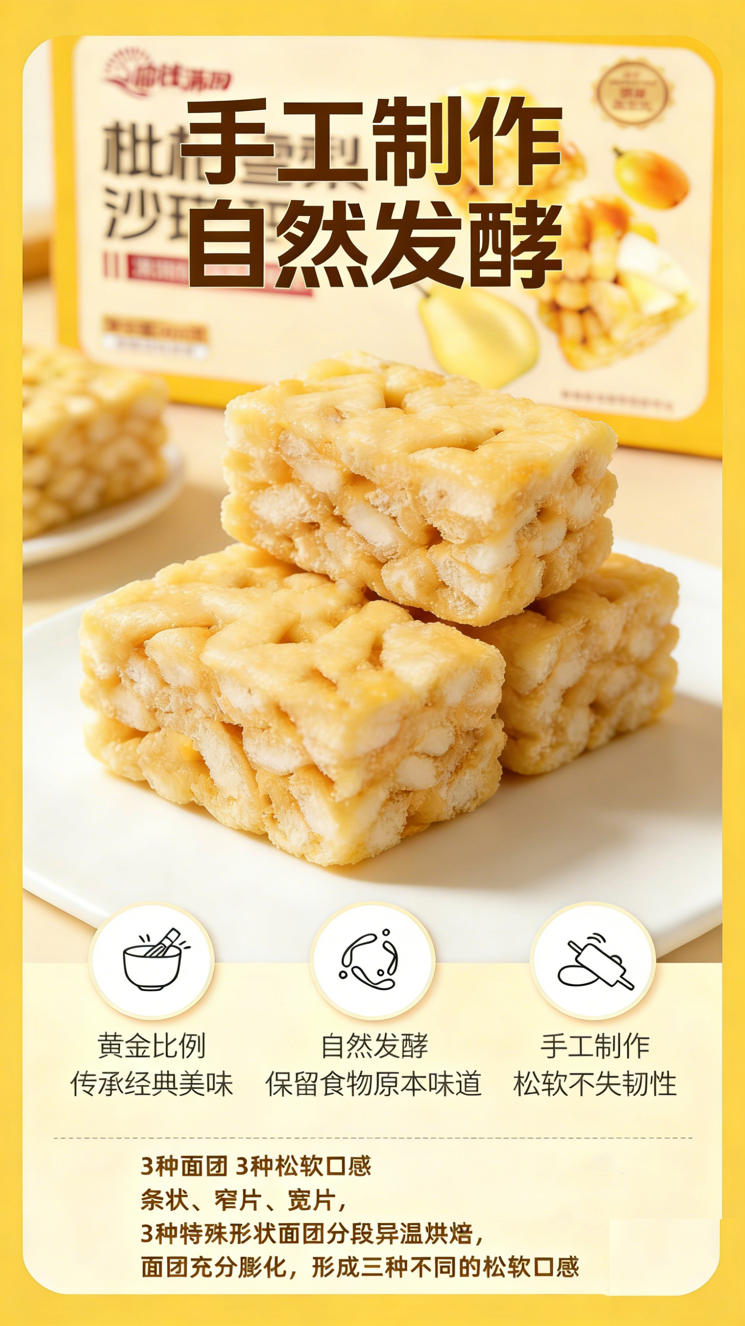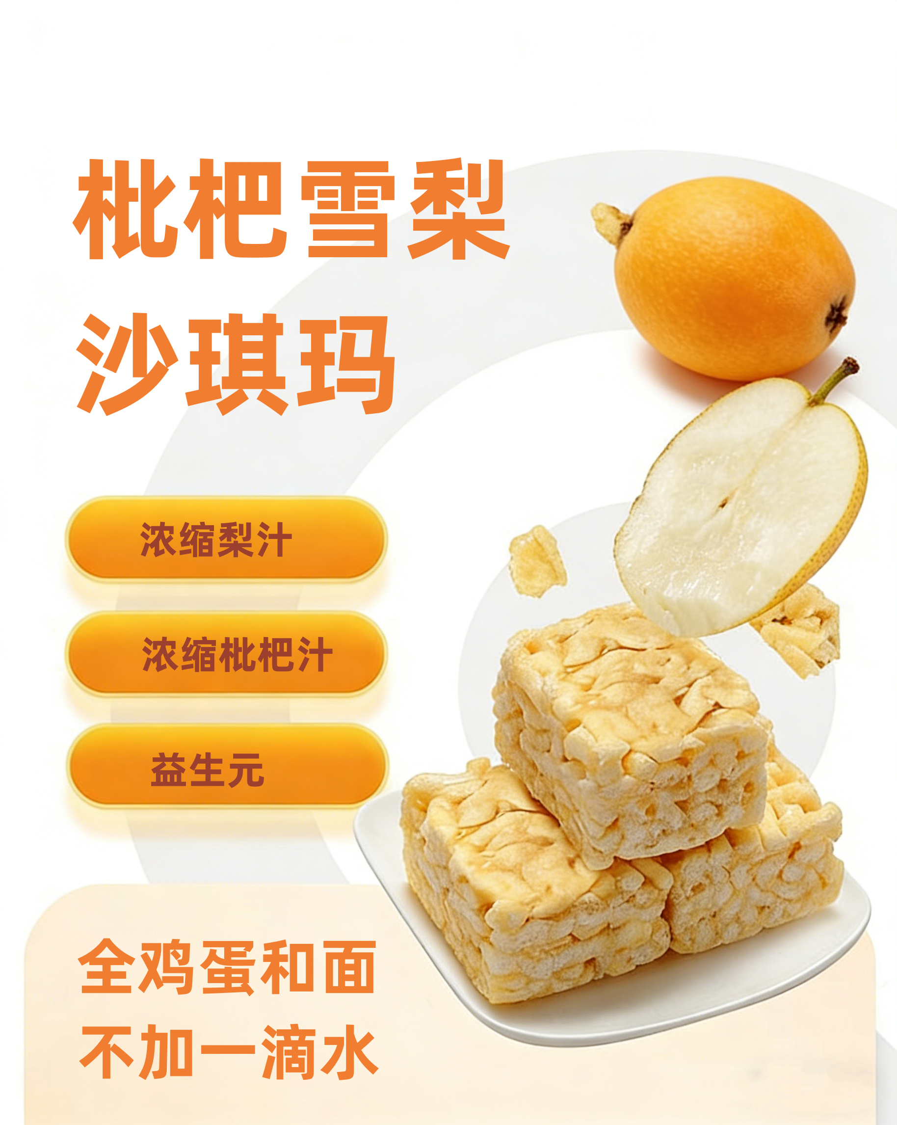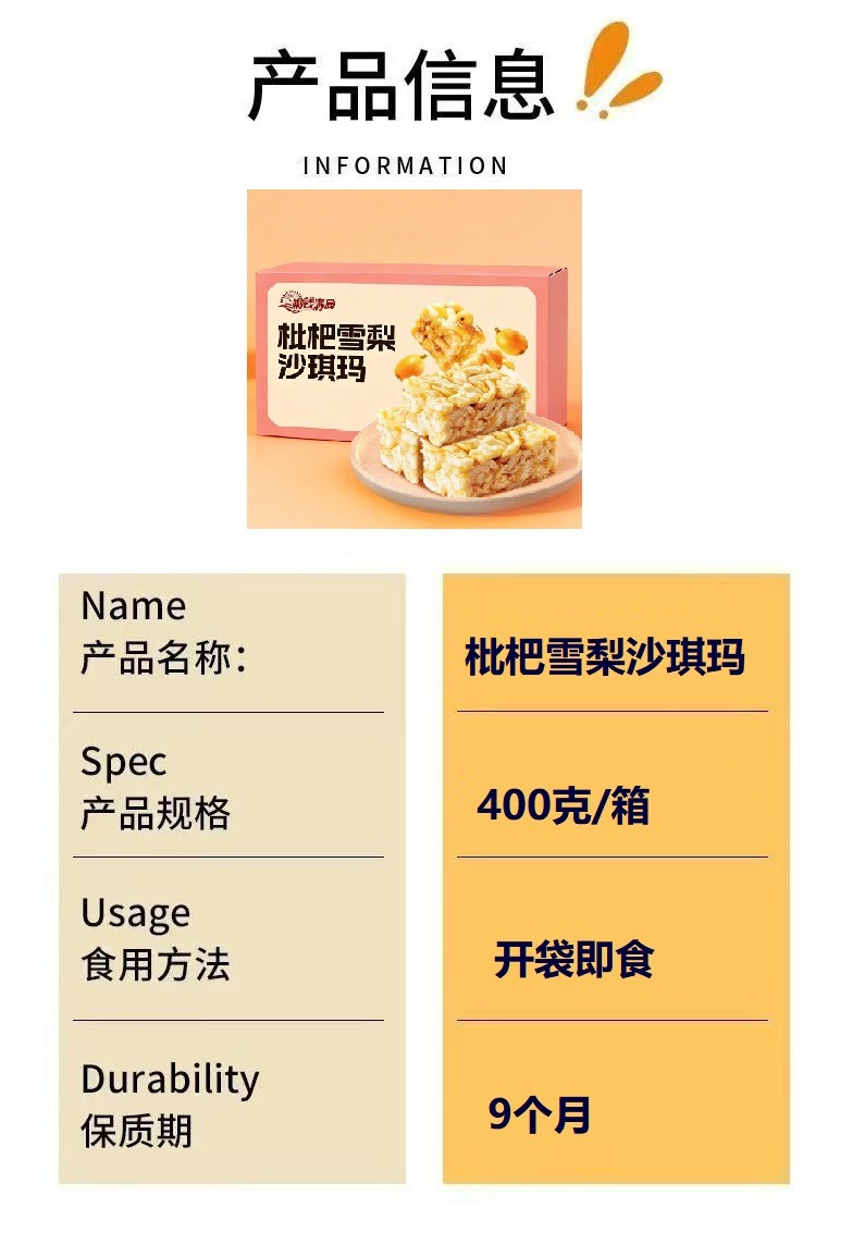 【2份减10元】枇杷雪梨沙琪玛 全鸡蛋和面 不加一滴水 加益生元 枇杷汁 雪梨汁 科学配比 清润微甜 蓬松酥软 400g/盒