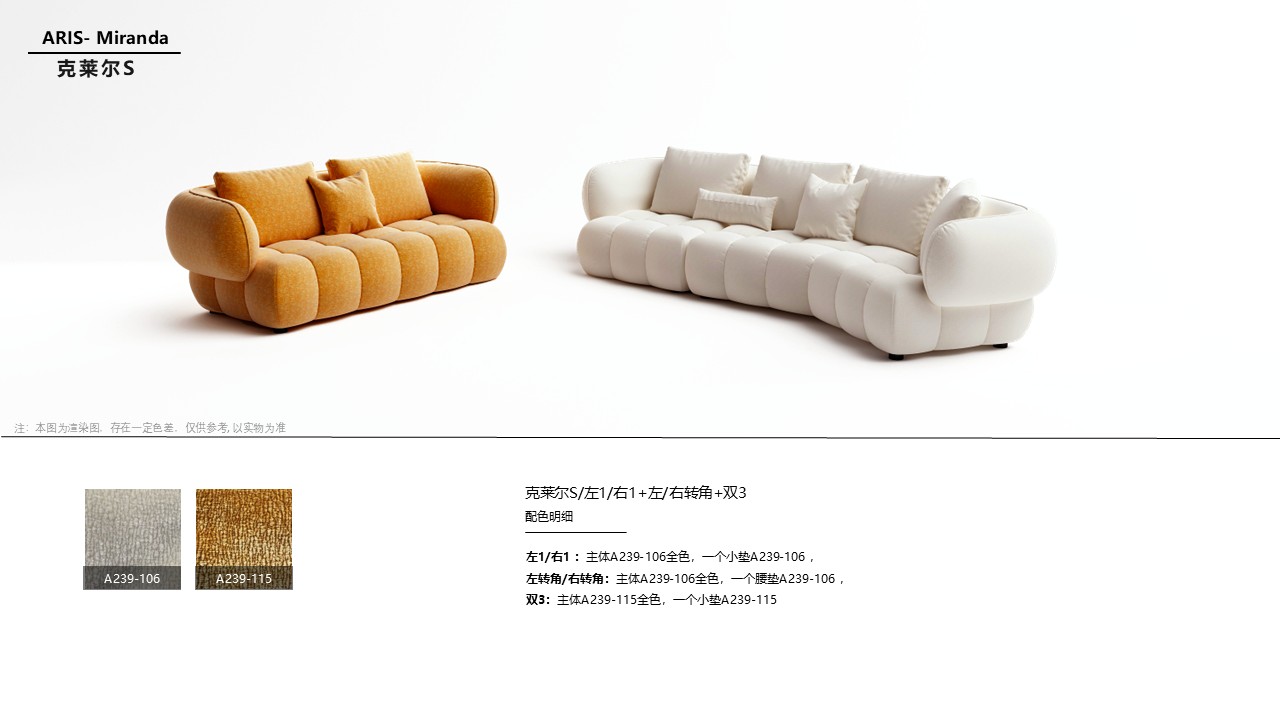 爱依瑞斯 米兰达系列 布艺沙发 克莱尔S