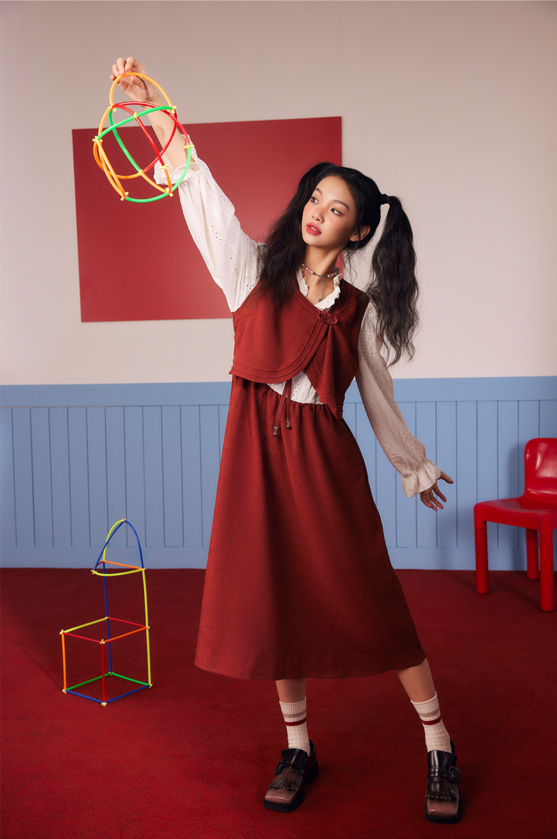 PX女装春季新款 梭织连衣长裙过年氛围感 824108850B 红色