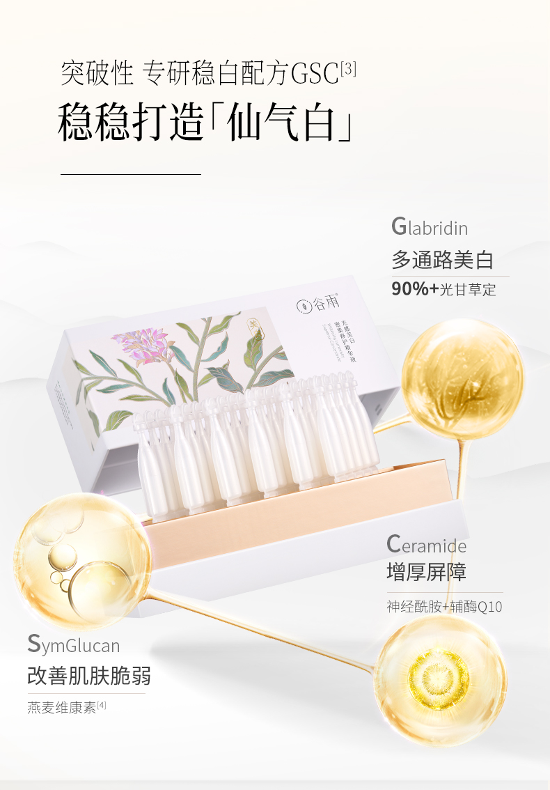 - 谷雨,更适合中国人肤质的植萃美白。专研中华珍稀美白植萃光甘草定,深入研究中国人肤质特点,打造中国女性独有的仙气白。