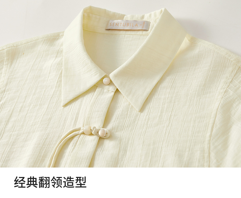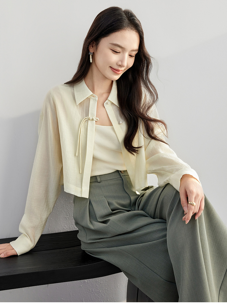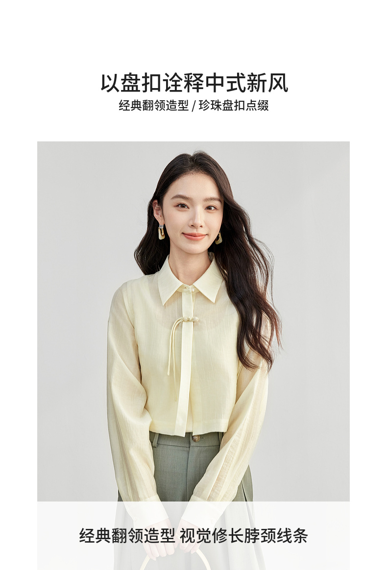 【内购】国风新中式含天丝衬衫翻领珍珠盘扣小个子短款上衣-151W56446