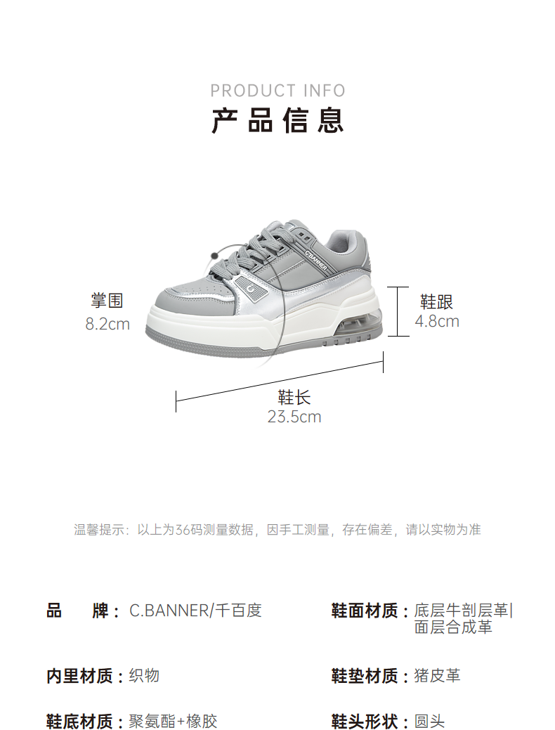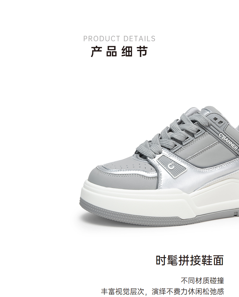 千百度厚底增高潮酷板鞋女秋季时尚高级感运动休闲鞋透气A24438080