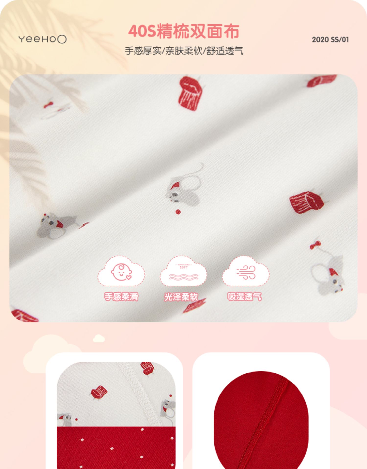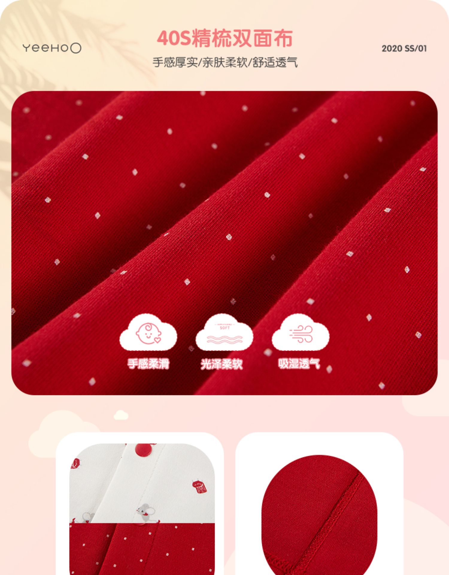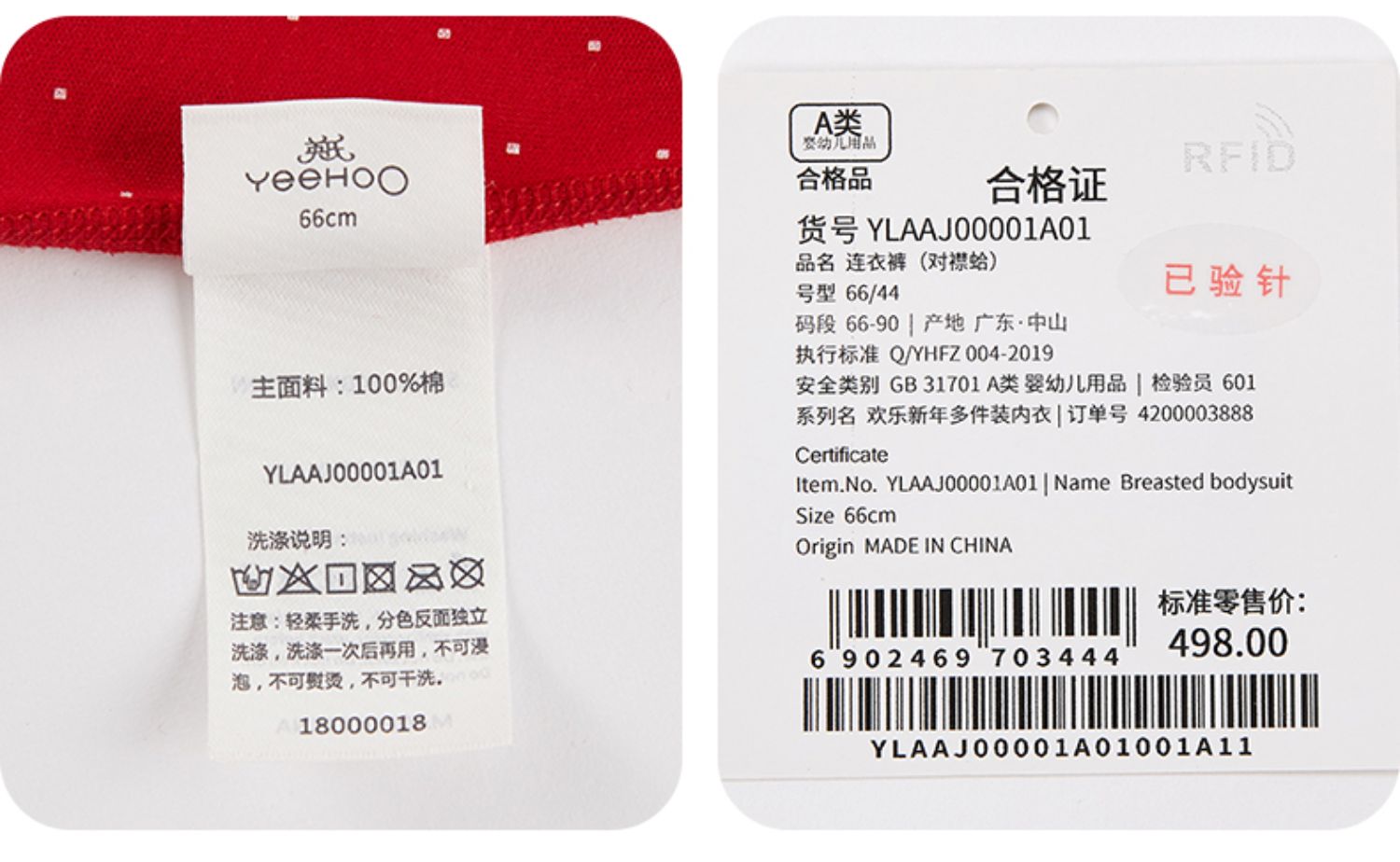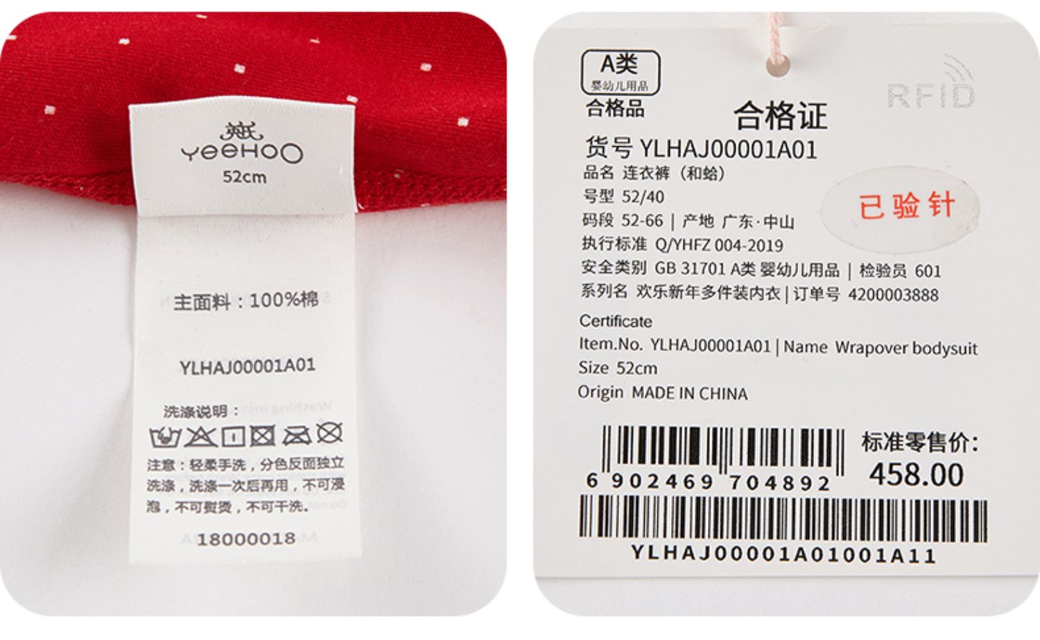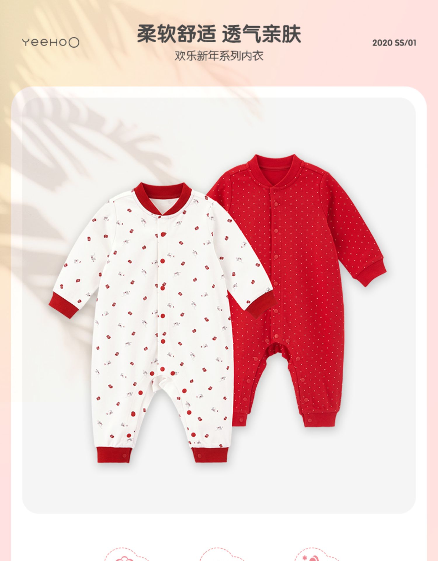 英氏婴儿连体衣红色纯棉内衣2件YLHAJ00001A01 YLAAJ00001A01