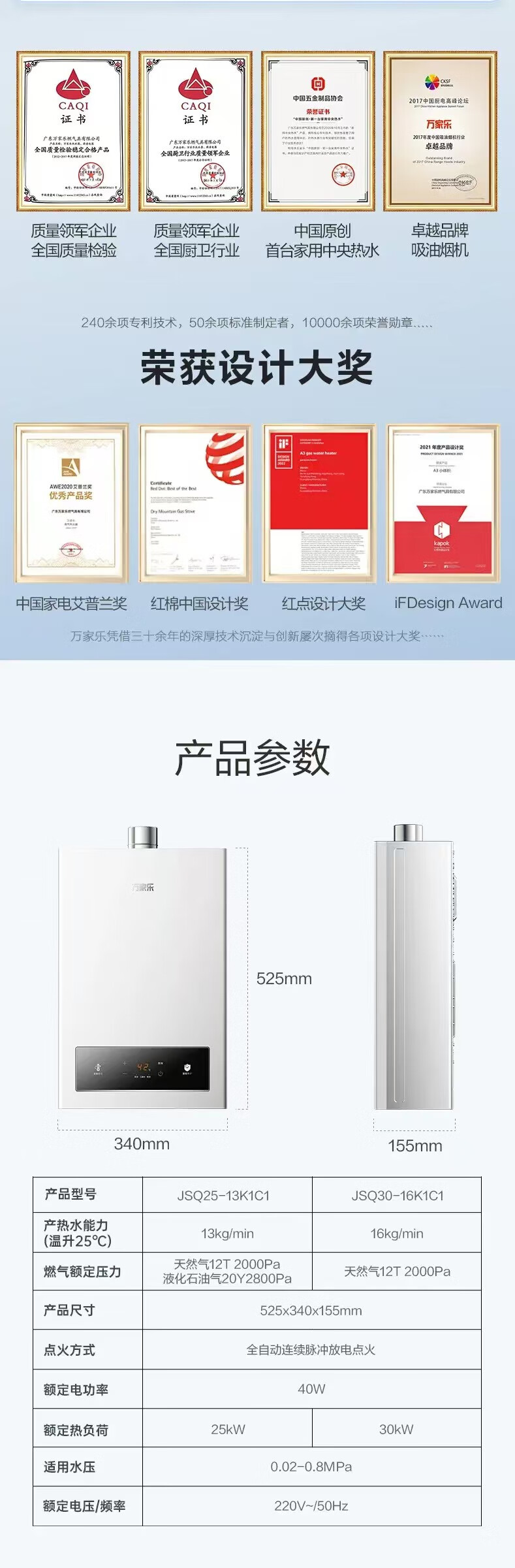 万家乐13升恒温热水器K1C1