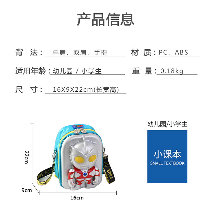 【新】奥特曼超人儿童背包男童双肩包斜挎包XHT