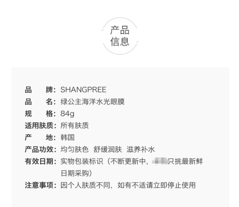 韩国SHANGPREE香蒲丽 红/绿眼膜 版本随机发