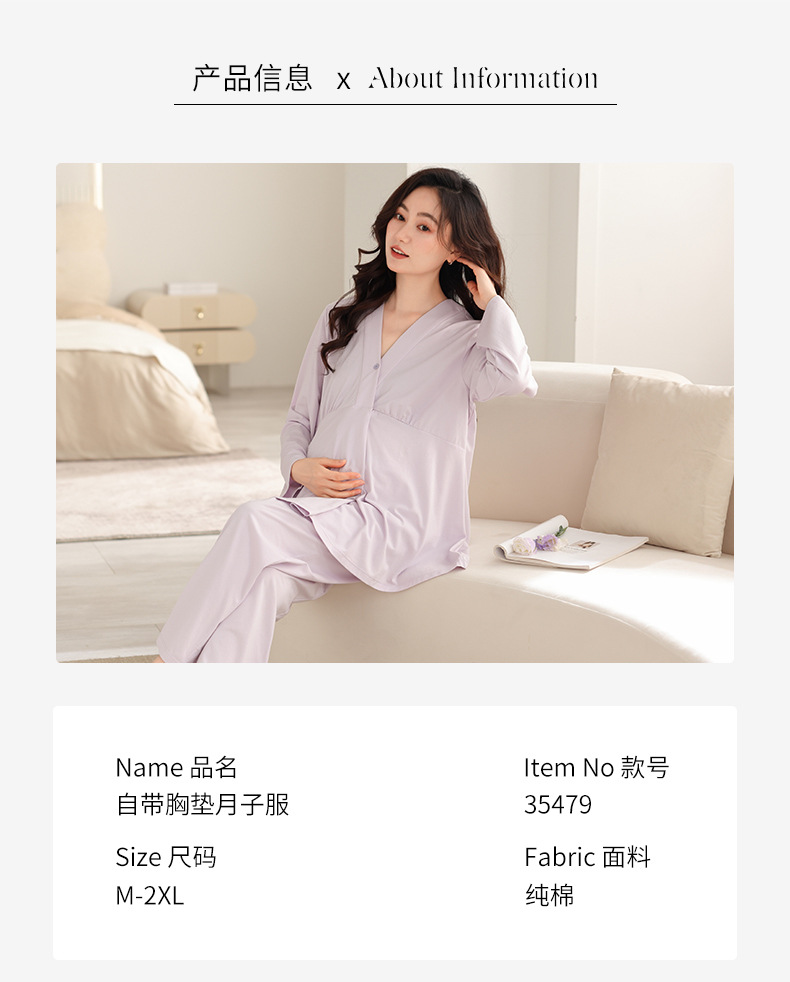 批发棉质月子服带胸垫春夏季新款产后孕妇哺乳透气吸汗家居服套装