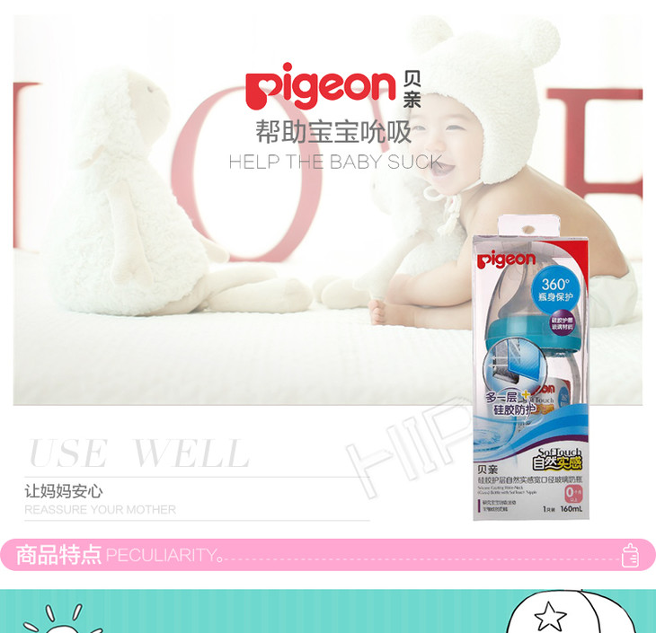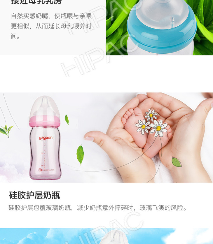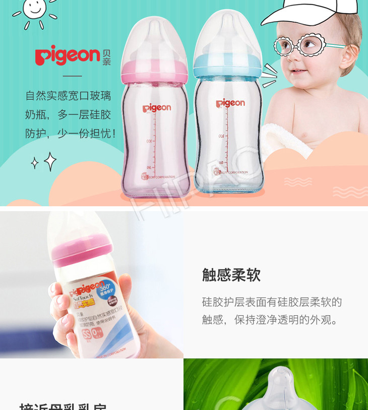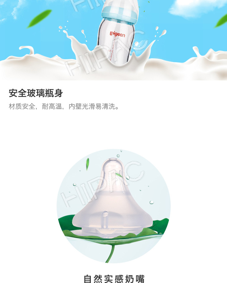 【一般贸易】贝亲 宽口径玻璃奶瓶160ml配SS奶嘴蓝色AA130