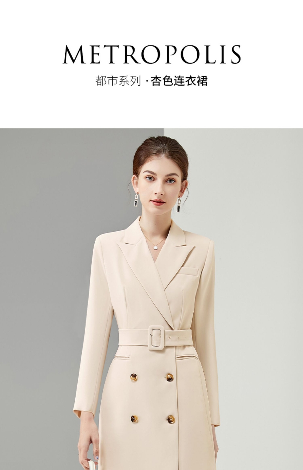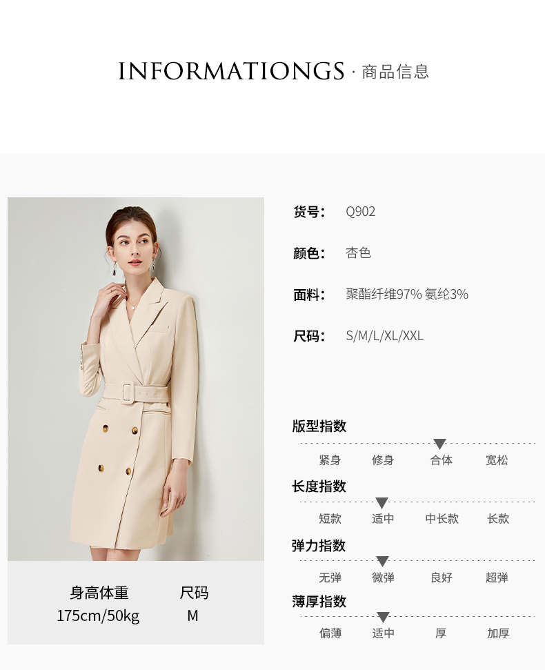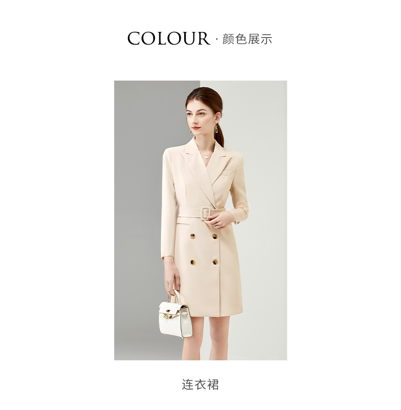 IWY/杏色连衣裙御姐范职业西装裙套装女新款店长工作服时尚设计感Q902