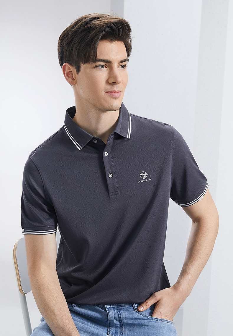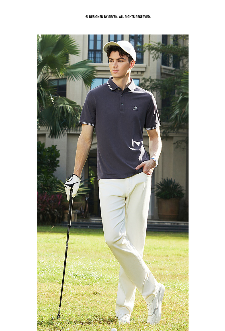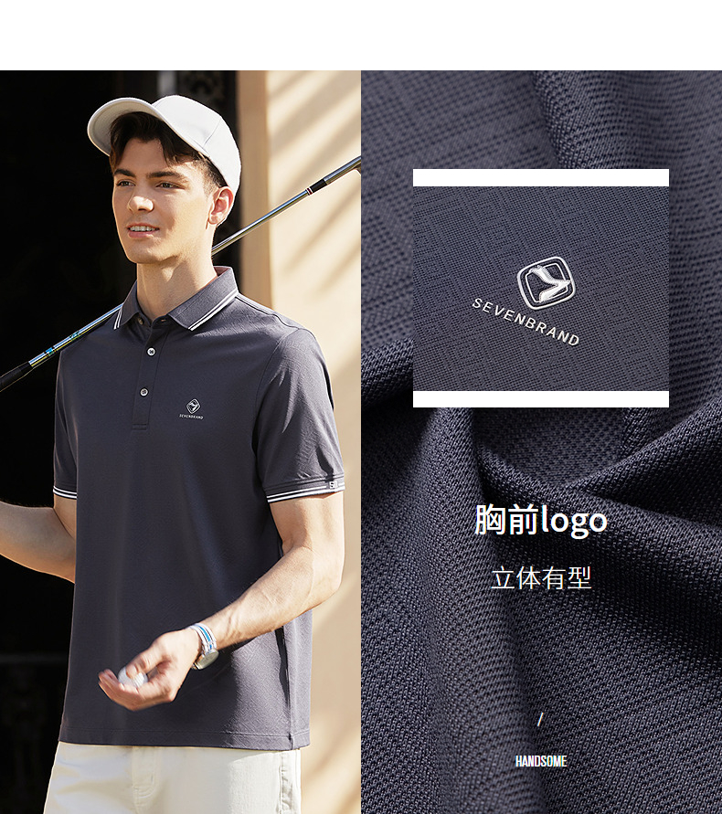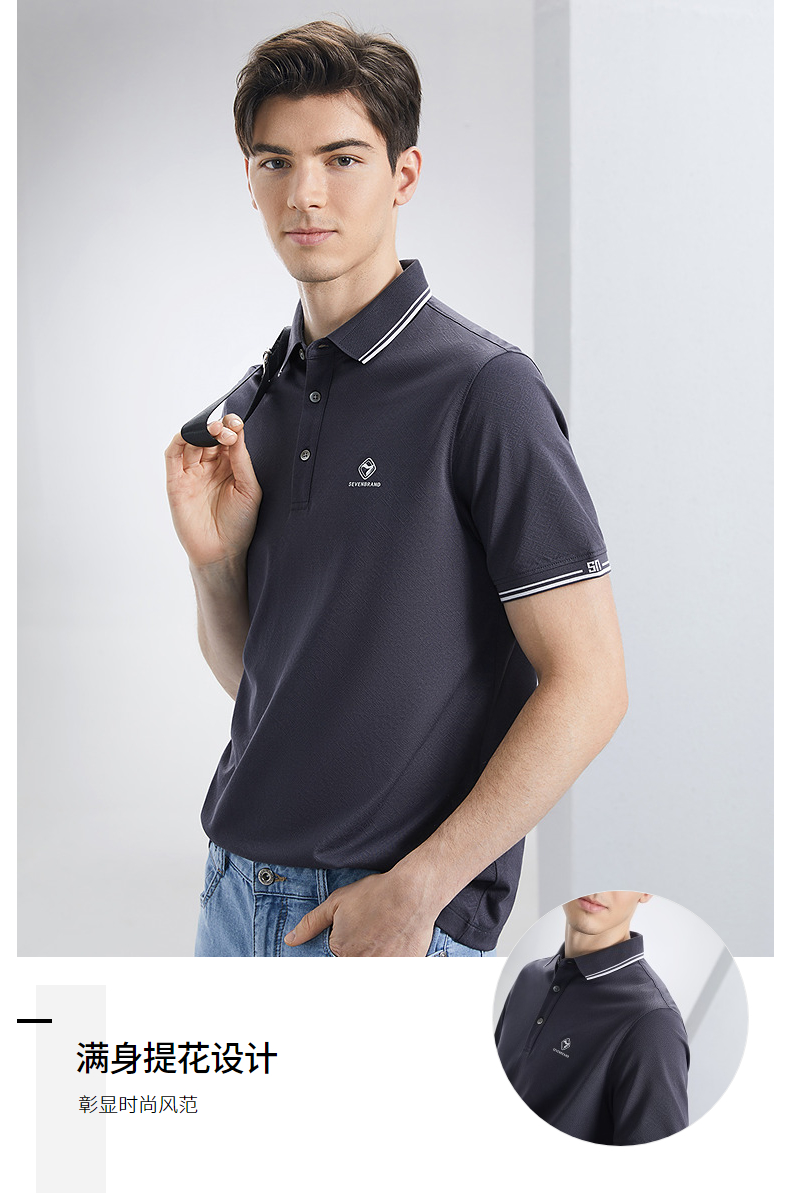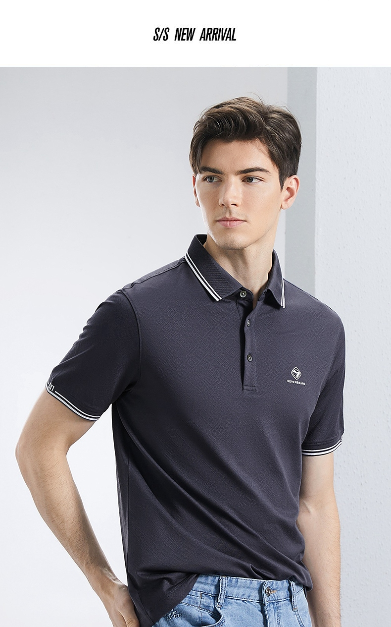 柒牌男装短袖polo衫男夏季2024新款商务休闲中青年提花翻领上衣薄 126T70620