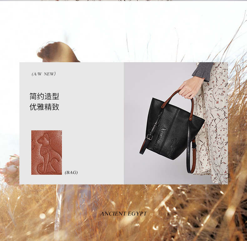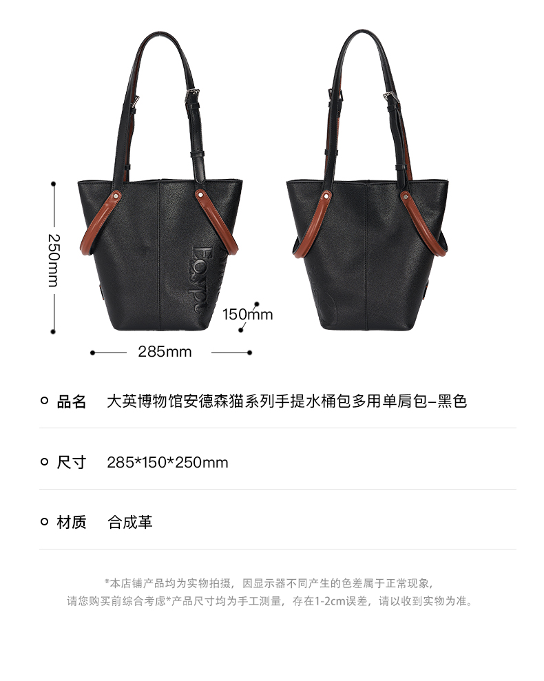 大英博物馆 盖亚·安德森猫系列 手提水桶包多用单肩包 黑色