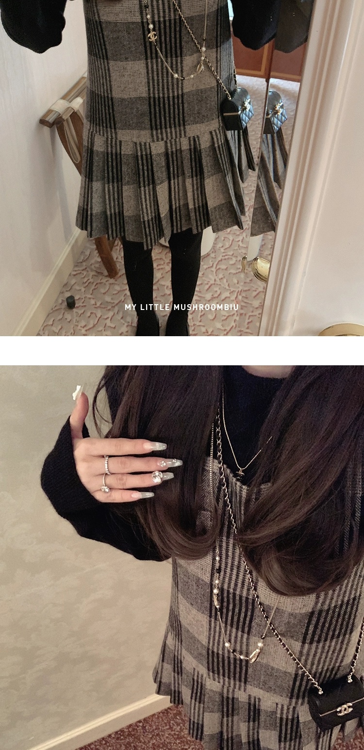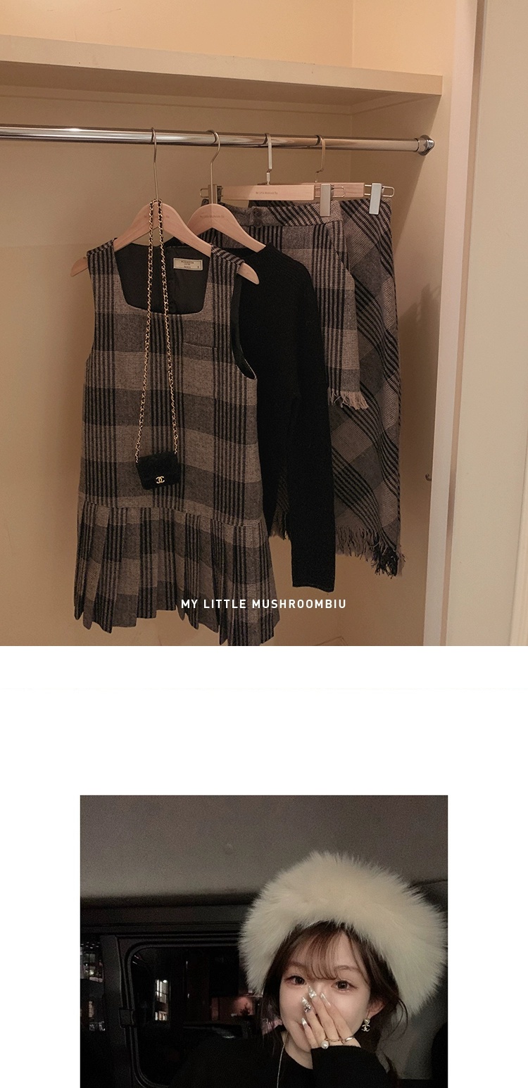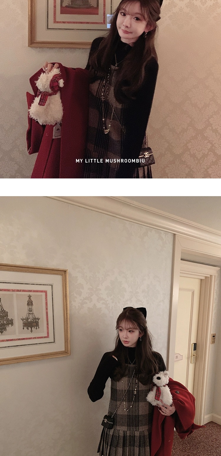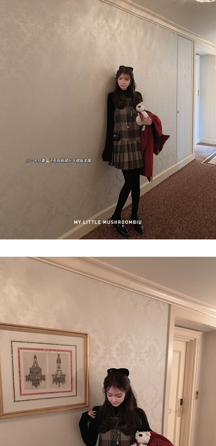 金蘑菇菇 Se promener代官山的漫不经心/复古耐看毛呢格纹背心裙