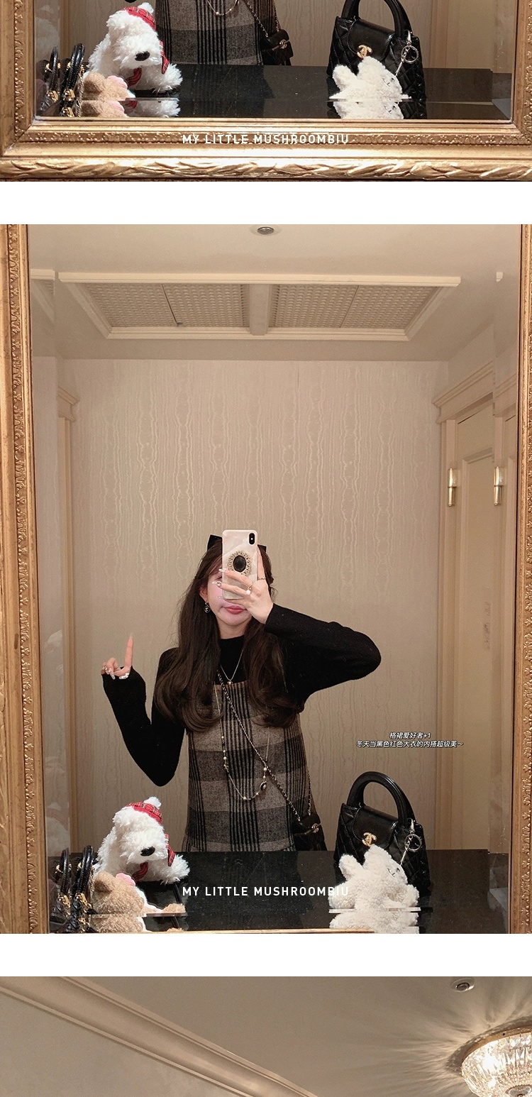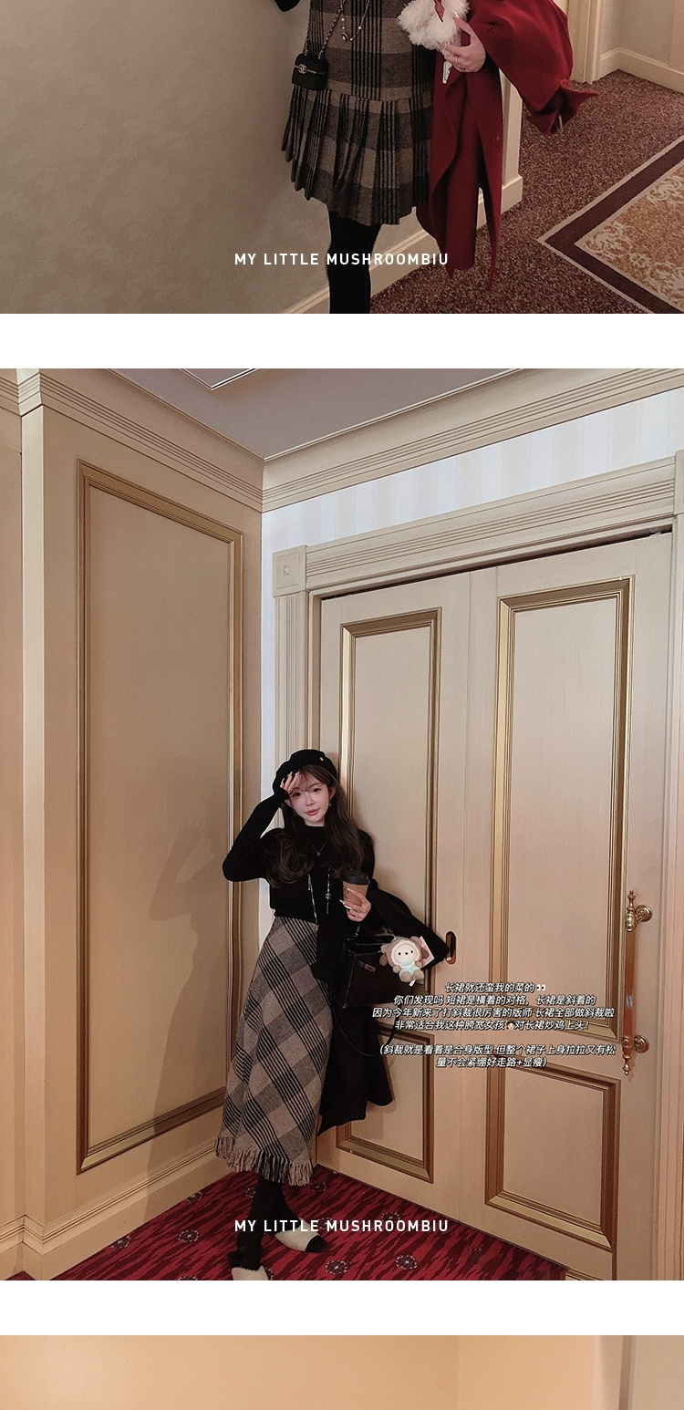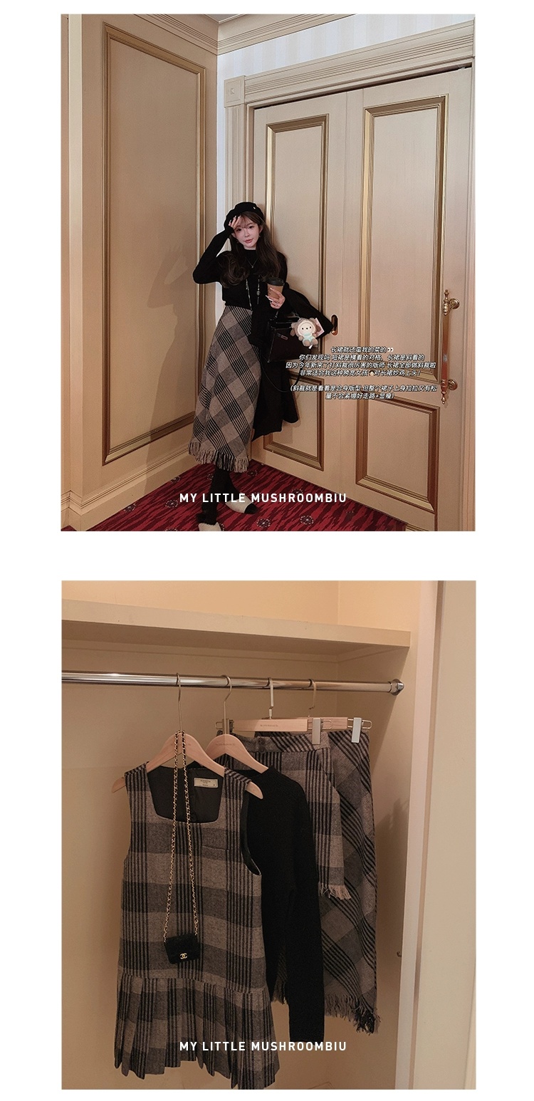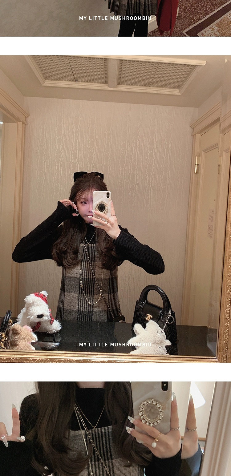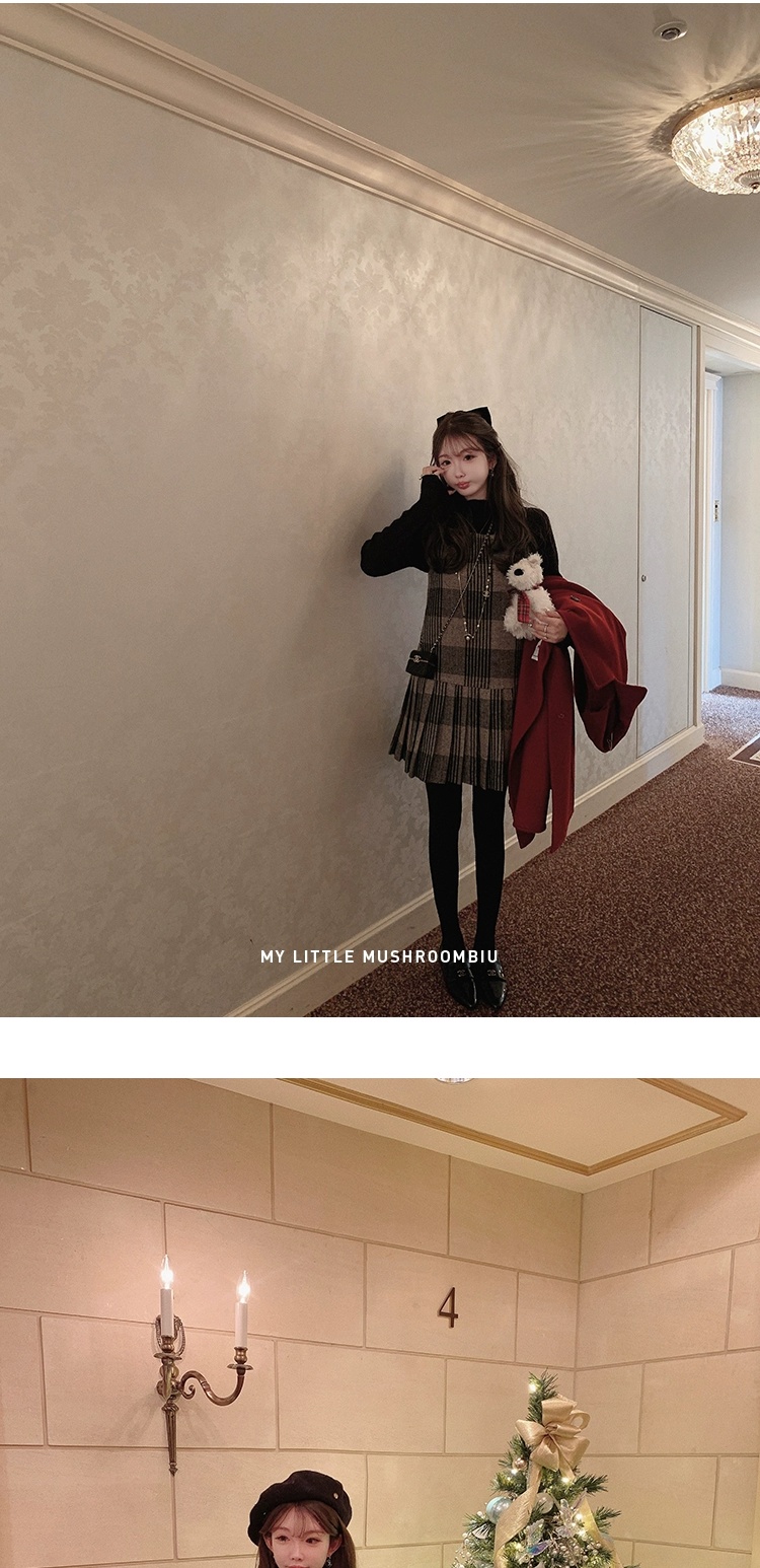 金蘑菇菇 Se promener代官山的漫不经心/复古耐看毛呢格纹背心裙