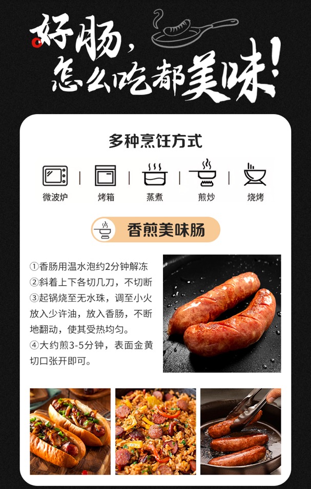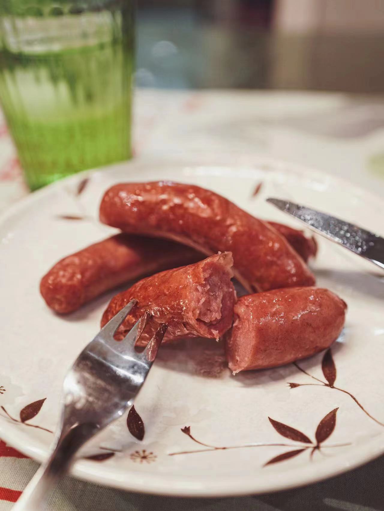 然后说说配方,这款香肠特选整块腿肉食材,拒绝边角料、碎料拼接,不添加淀粉及大豆蛋白,纯肉制作,不像市面上某些品牌添加鸡肉,大黄鲜森家的香肠真材实料,99%以上黑猪肉含量,2:8肥瘦黄金比例,油脂丰富,健康美味,而且不添加香精,色素,防腐剂,孩子吃更健康。