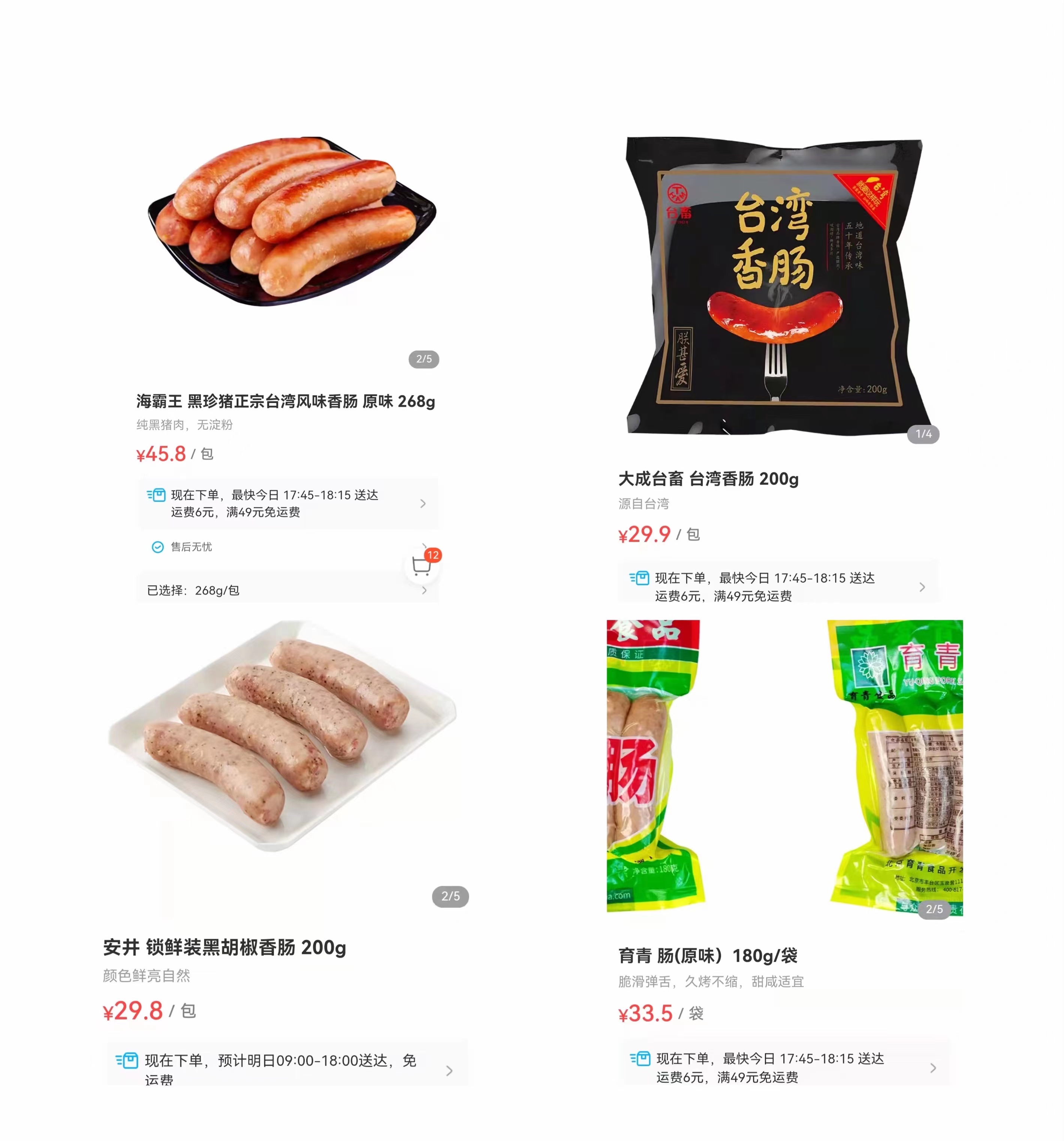 我还特意去搜了下盒马上卖的香肠都多少钱,看下图: