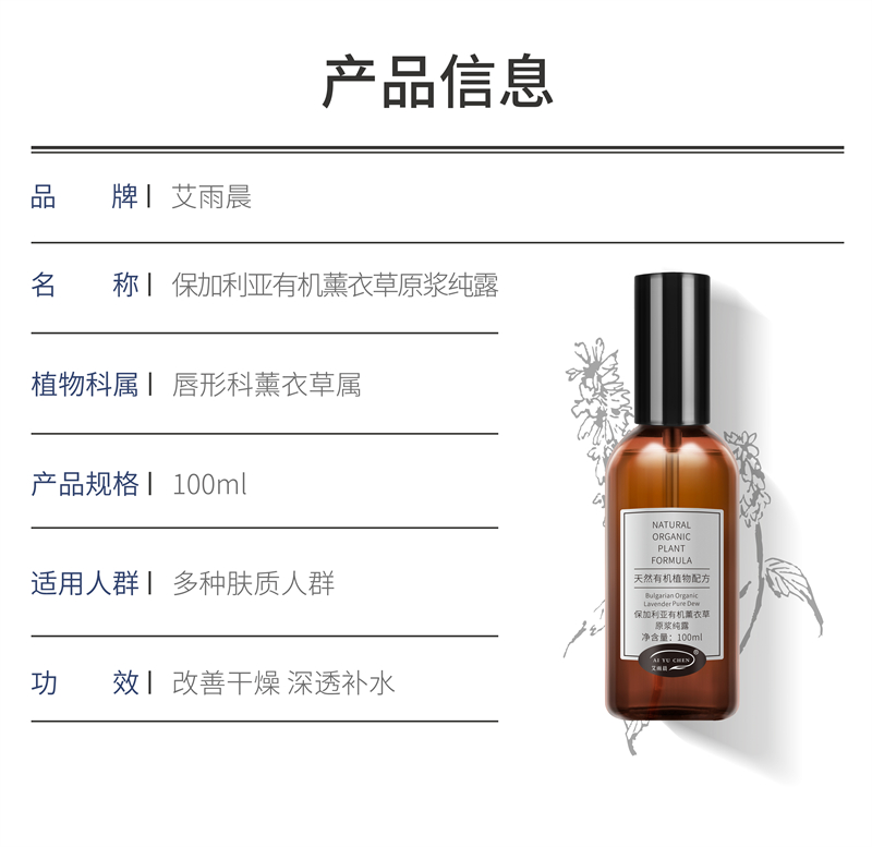 保加利亚有机薰衣草原浆纯露 100ml/瓶