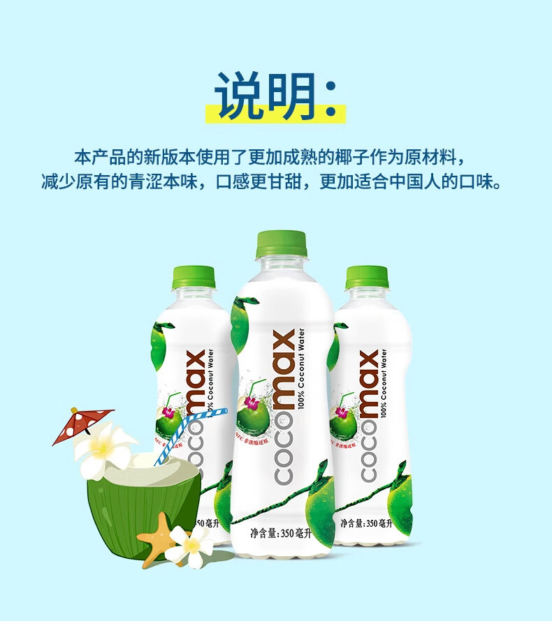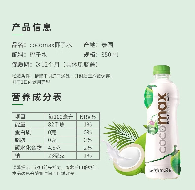 Cocomax100%椰子水350ml/025741 椰香芬芳清爽可口