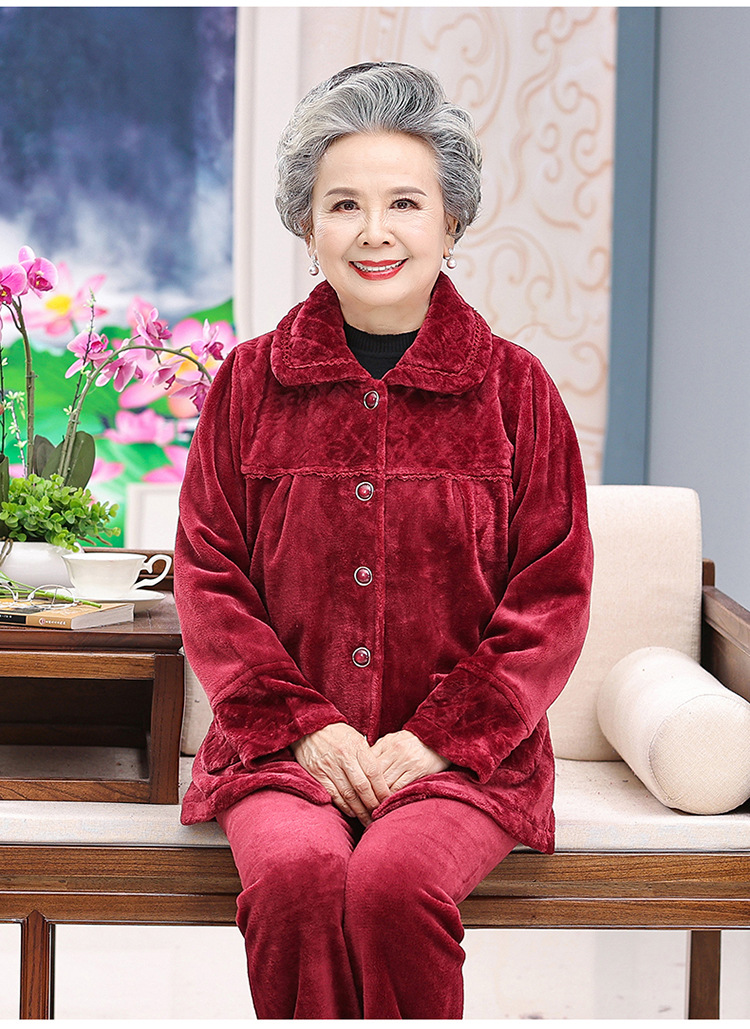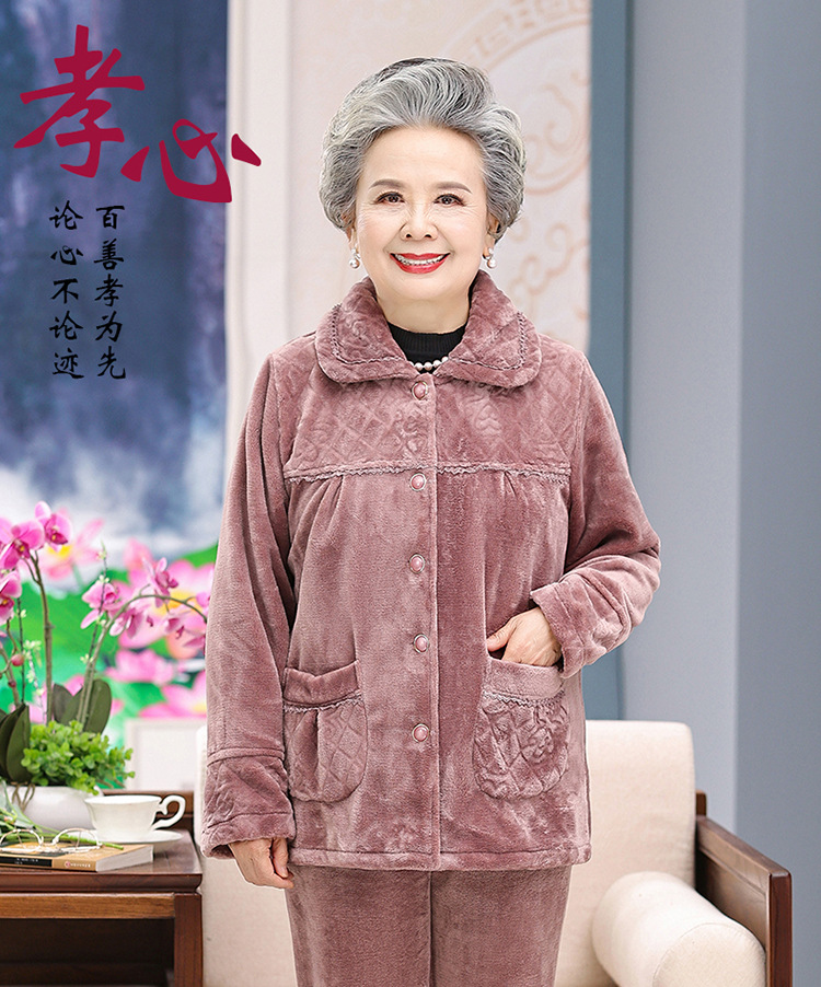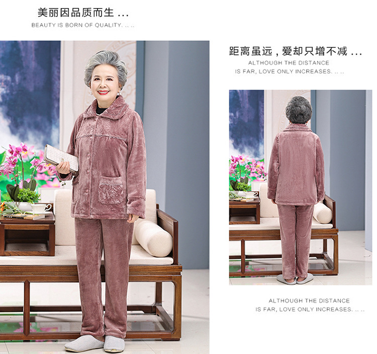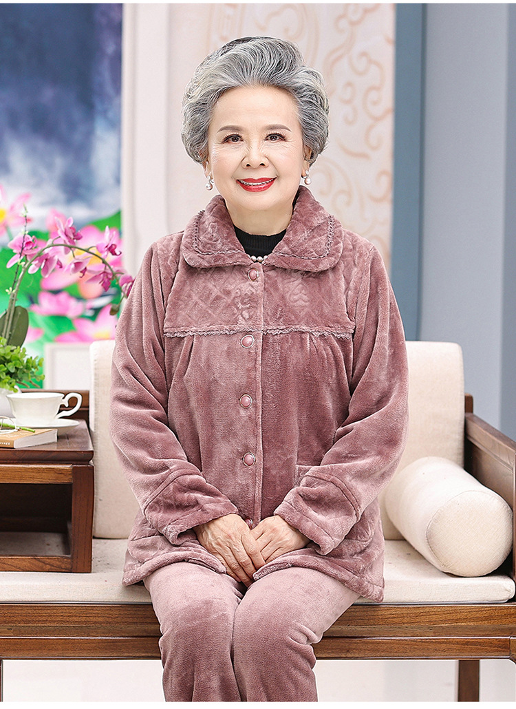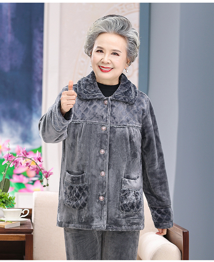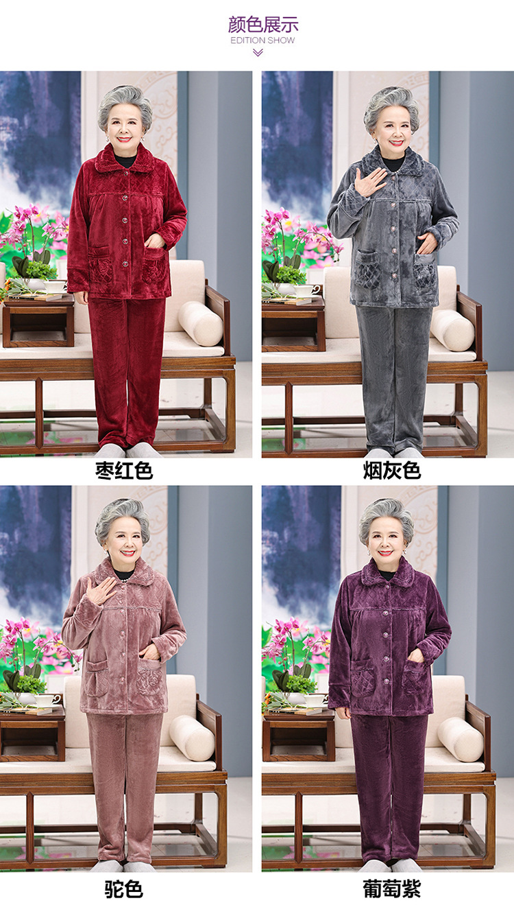 【中老年人睡衣】加绒 秋冬奶奶衣服法兰绒妈妈家居服 保暖老太太套装