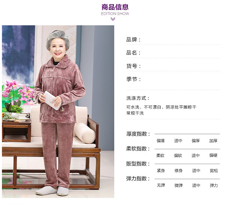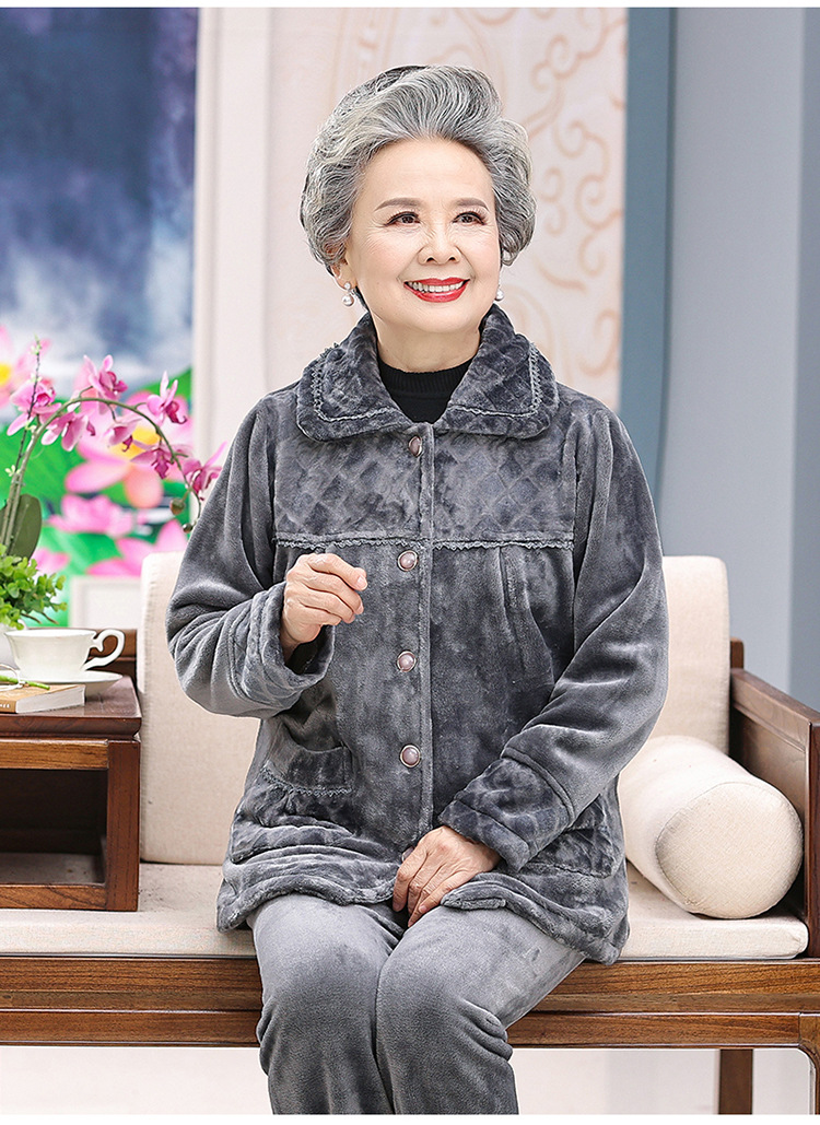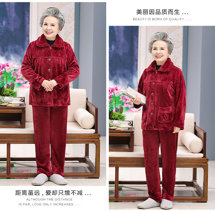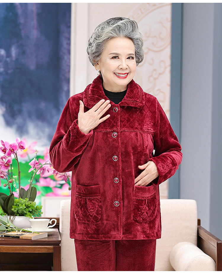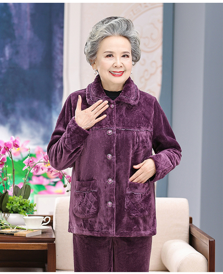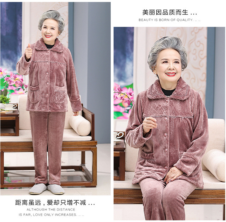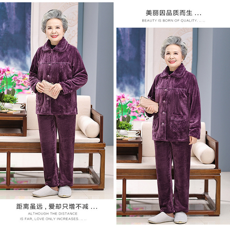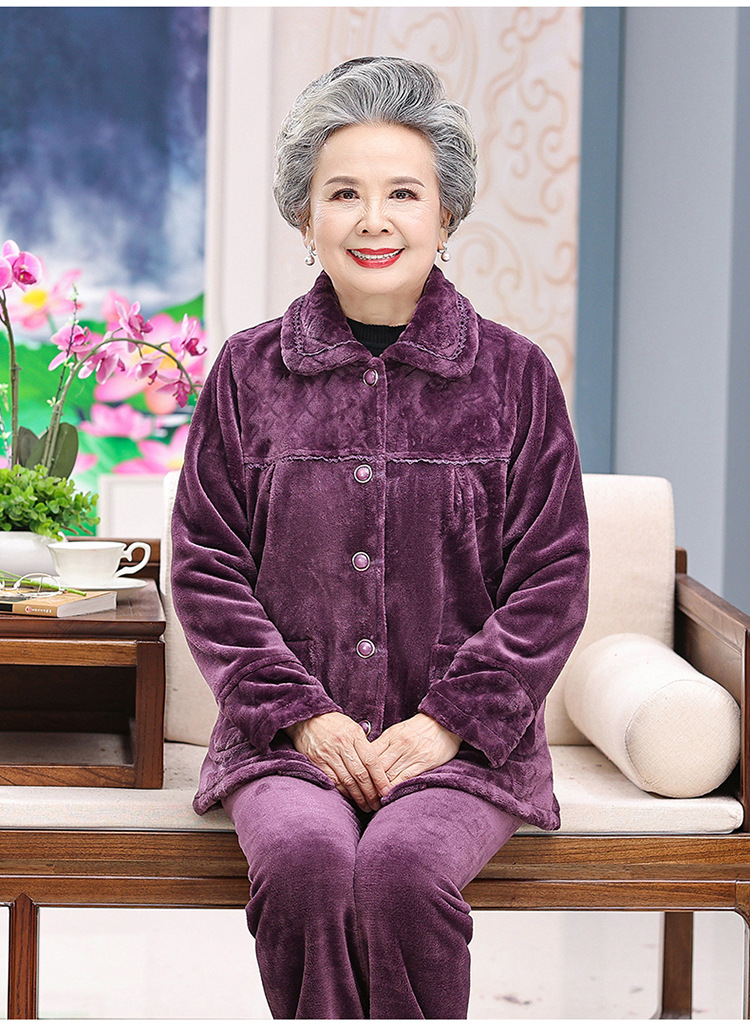 【中老年人睡衣】加绒 秋冬奶奶衣服法兰绒妈妈家居服 保暖老太太套装