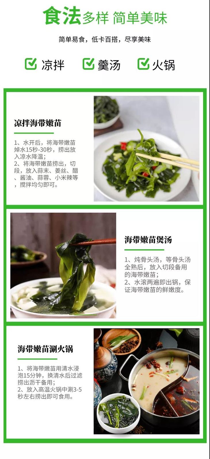 3.盐渍锁鲜,零防腐剂,食法多样,可凉拌、羹汤、火锅,简单美味