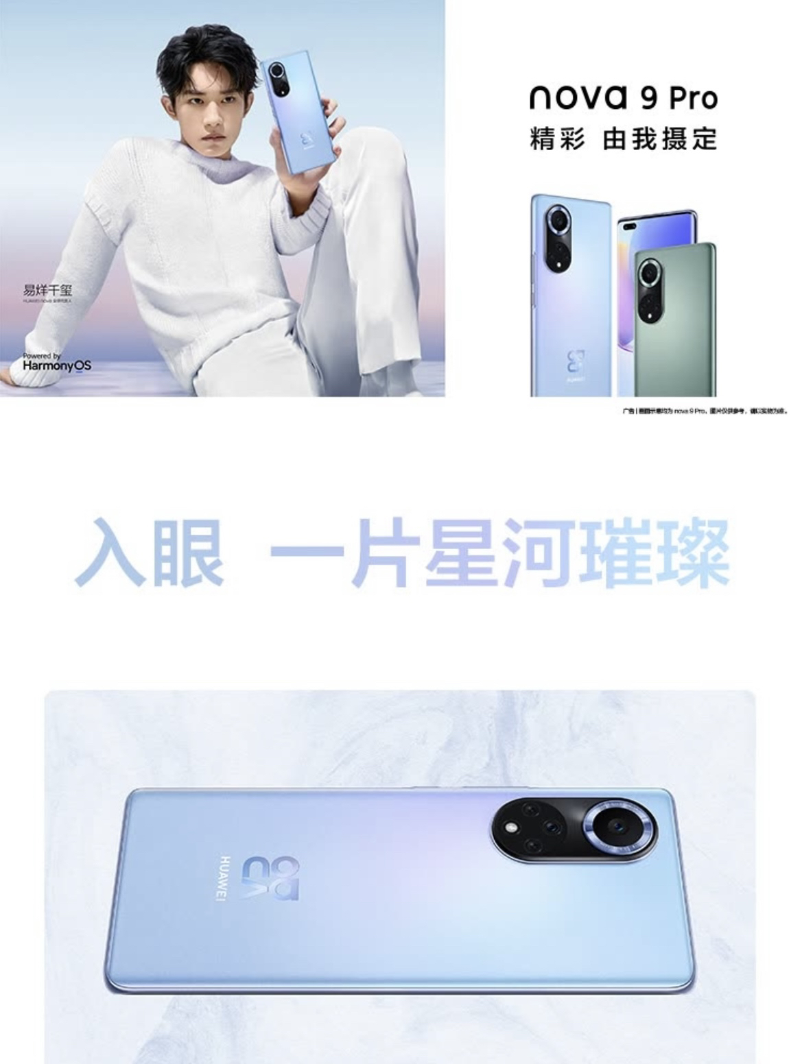 HUAWEI nova 9 Pro 双3200万前置Vlog镜头 100W超级快充 10亿色臻彩屏 8GB+256GB 9号色 华为手机