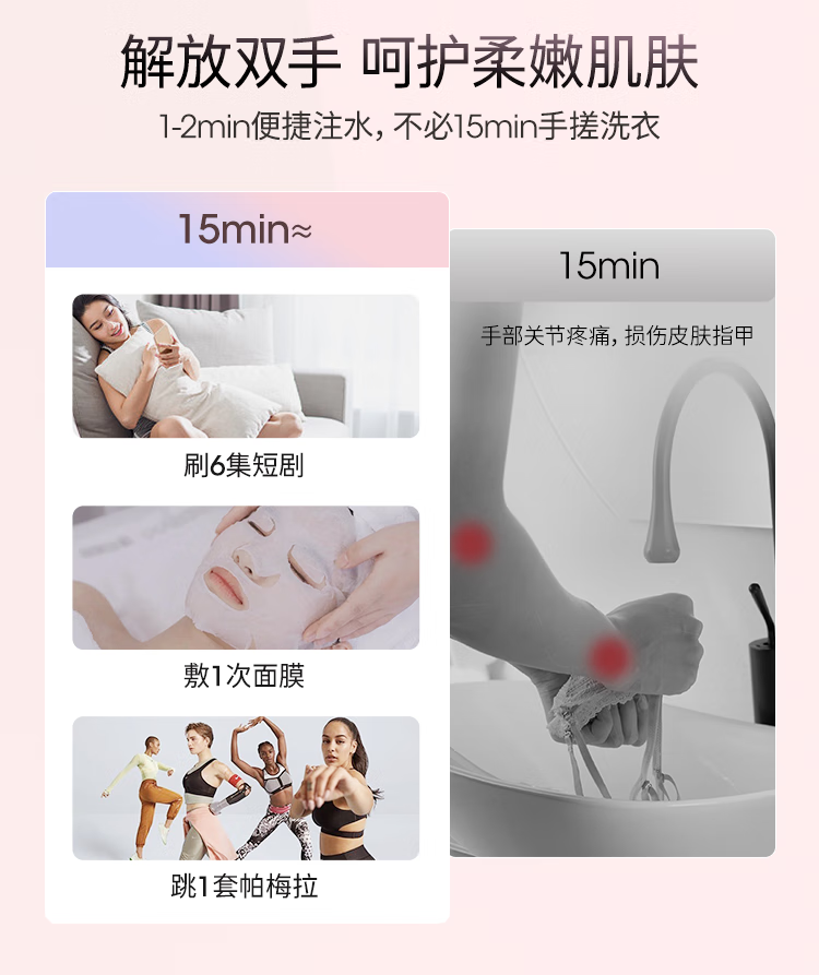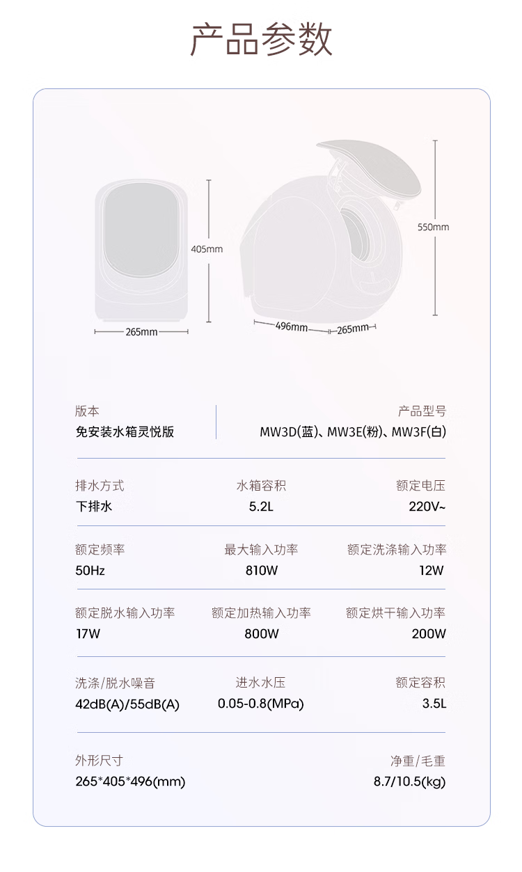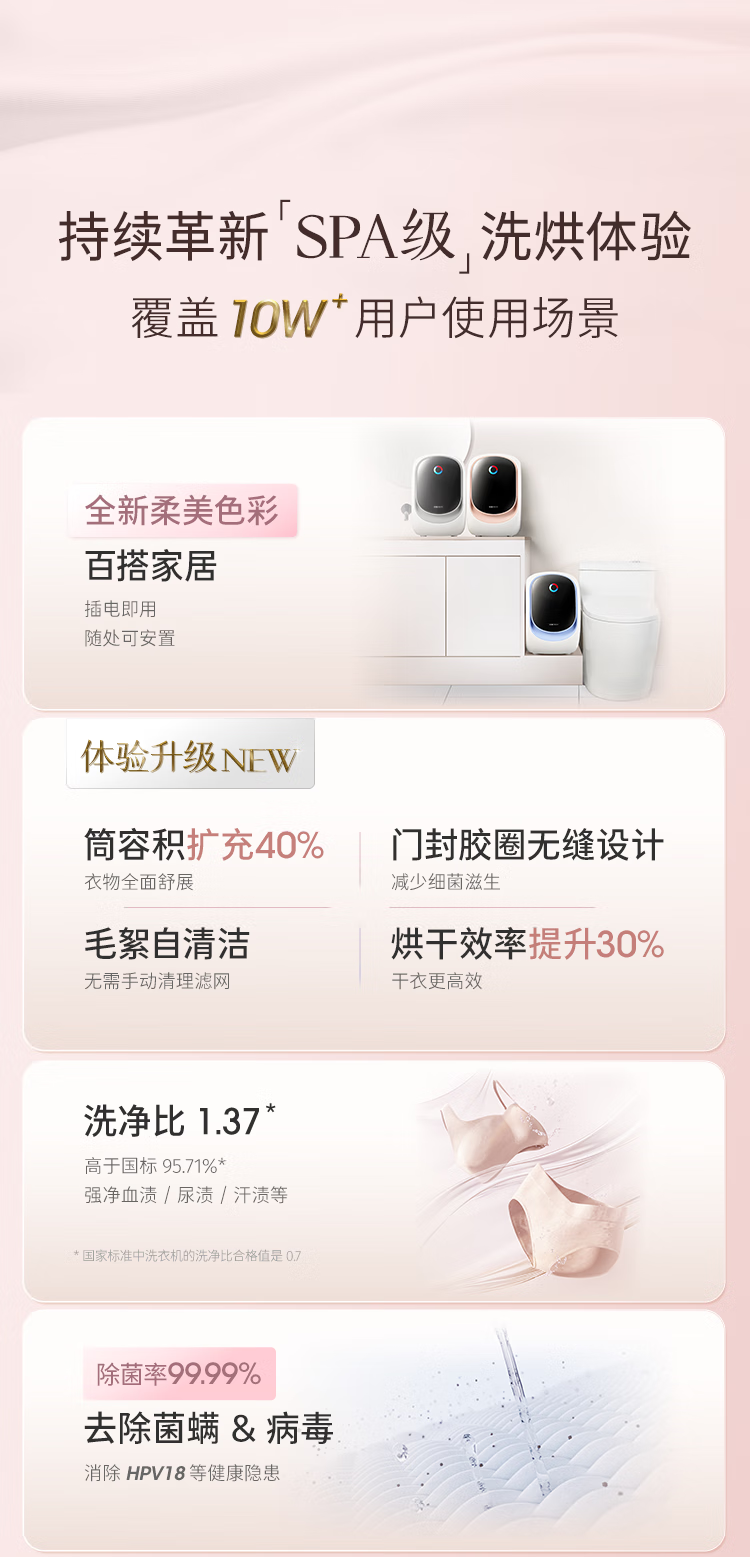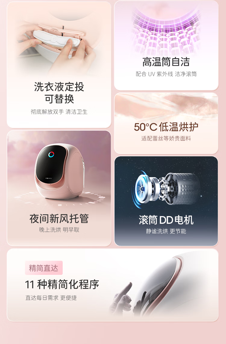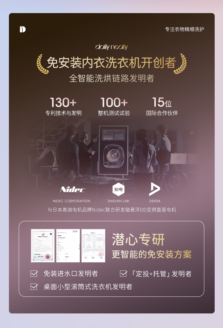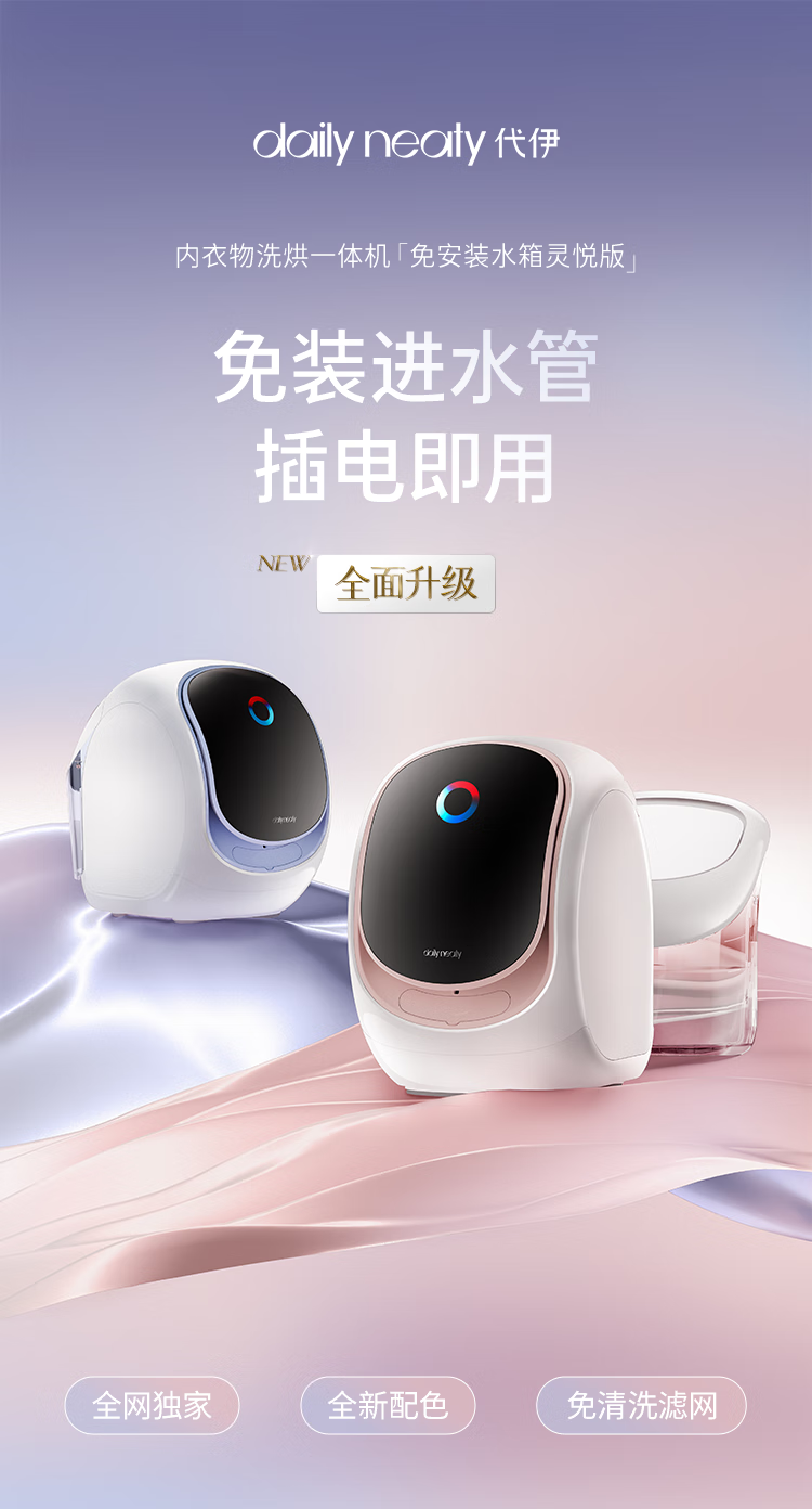 daily neaty内衣洗衣机 水箱版2代0.2kg灵悦版 免安装洗烘一体免装进水口迷你滚筒智能投放