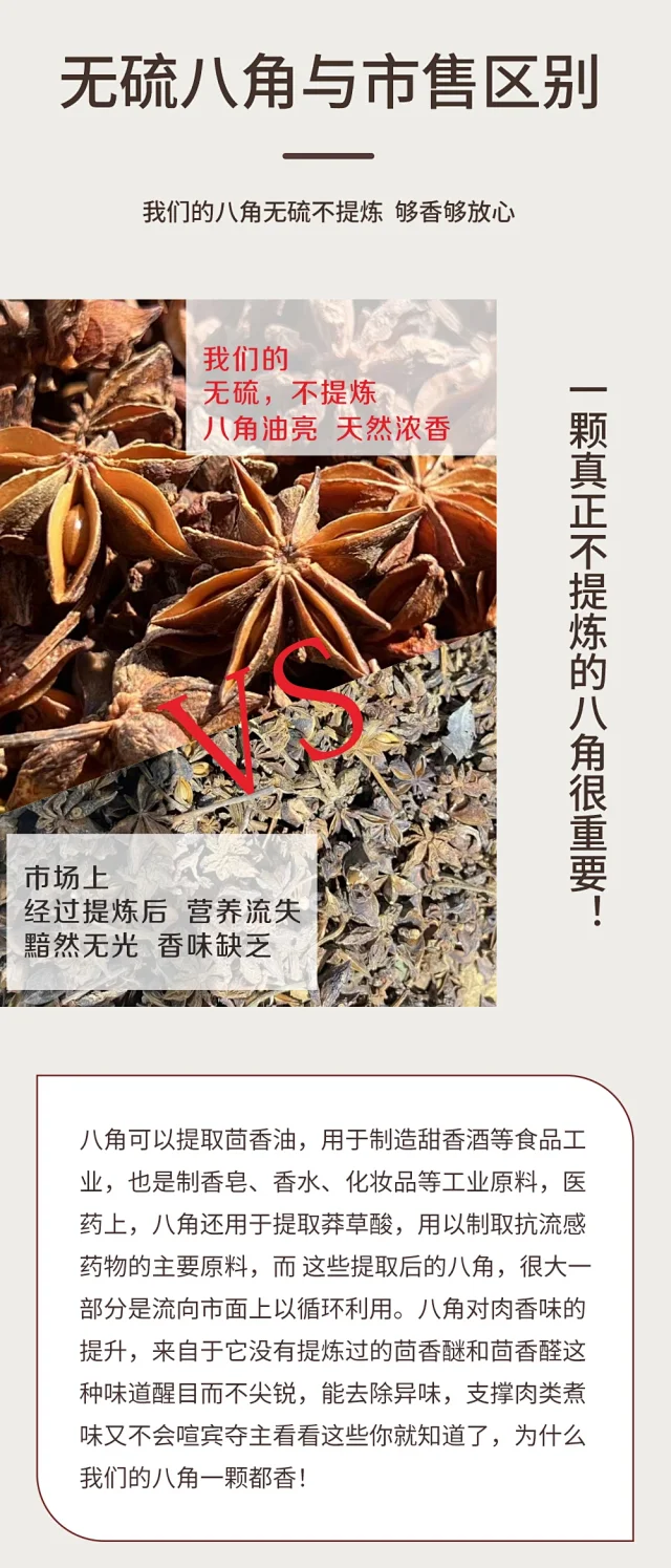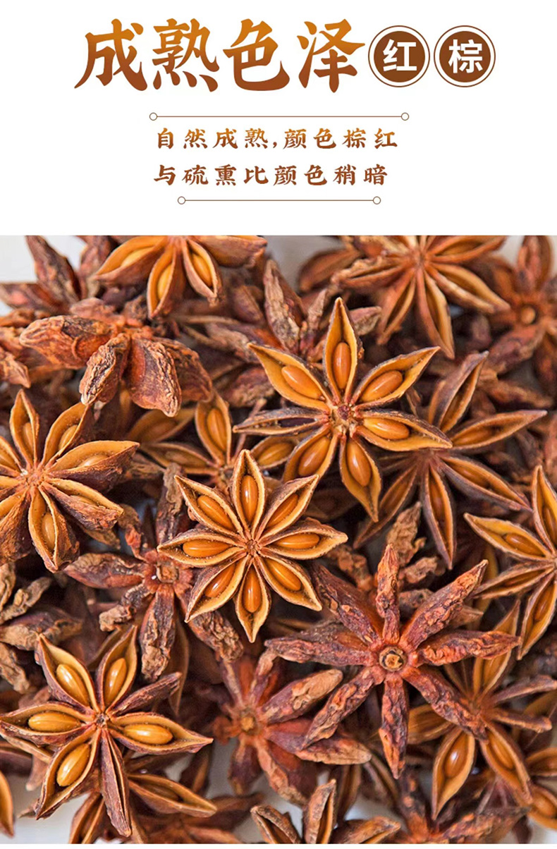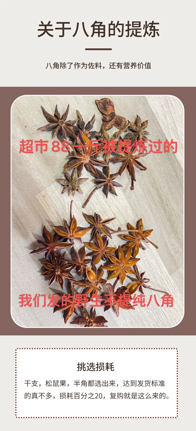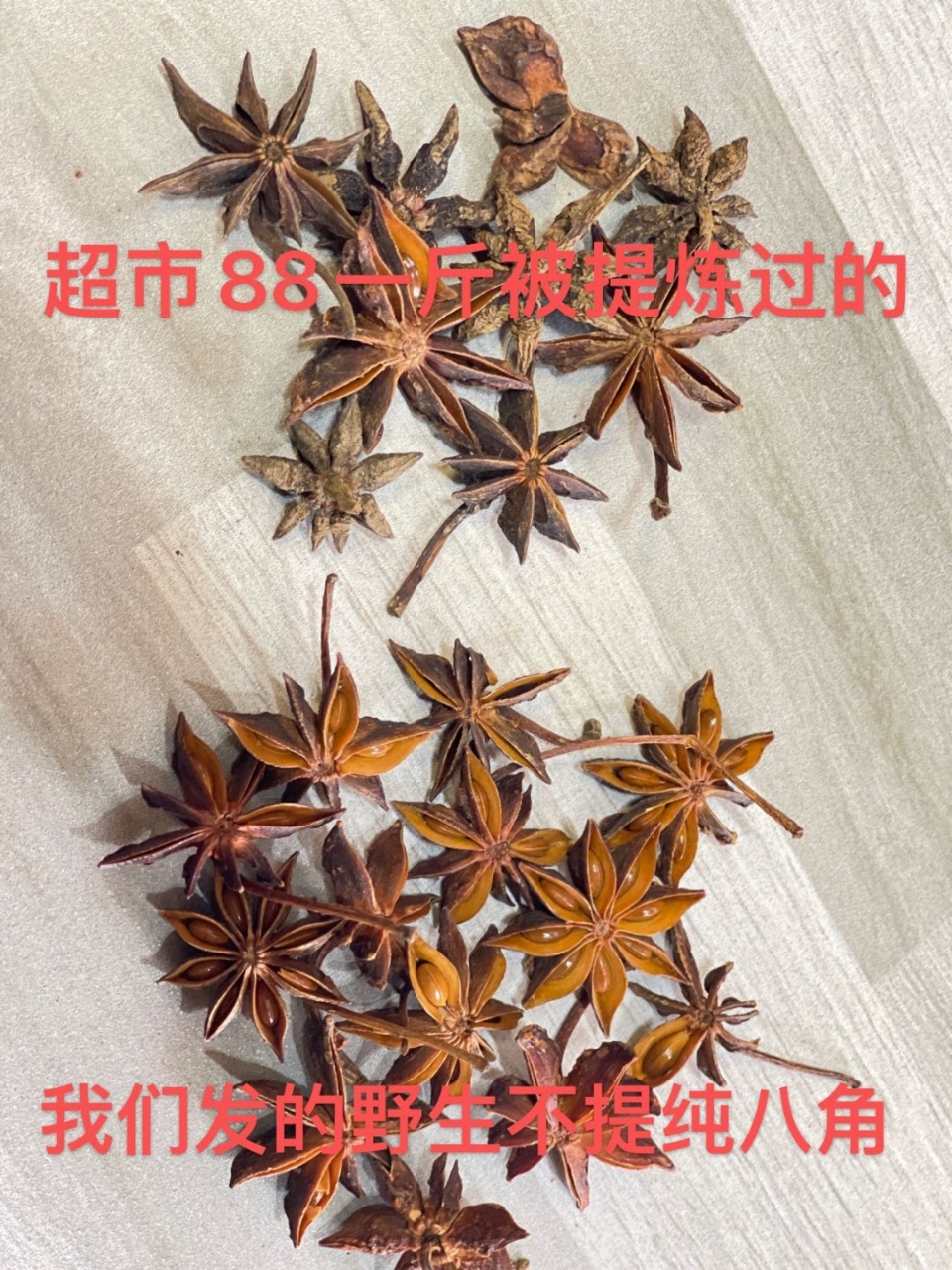 全国百分之95的家庭都会食用八角,而百分之80的家庭都没见过这种满是油籽的无硫不提炼香八角。