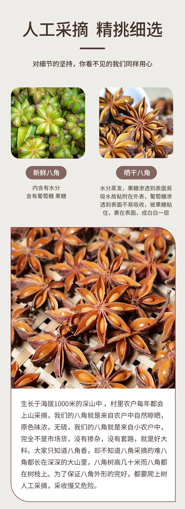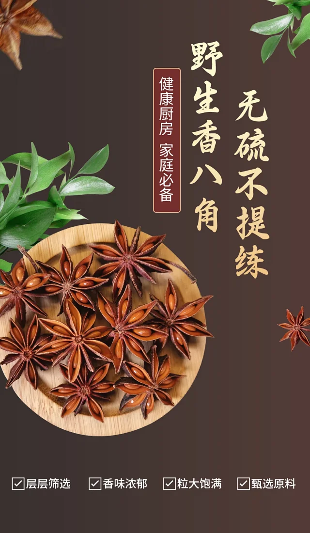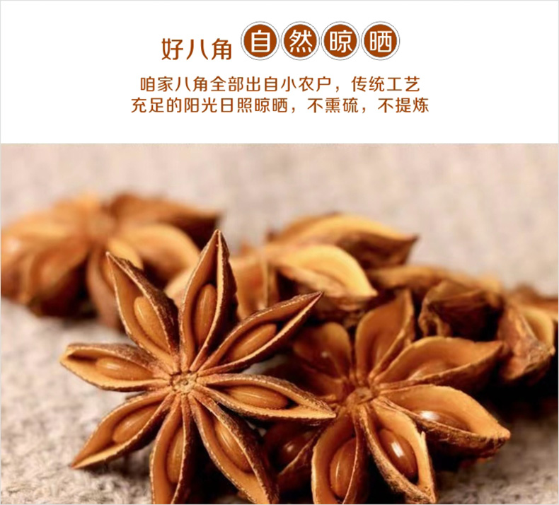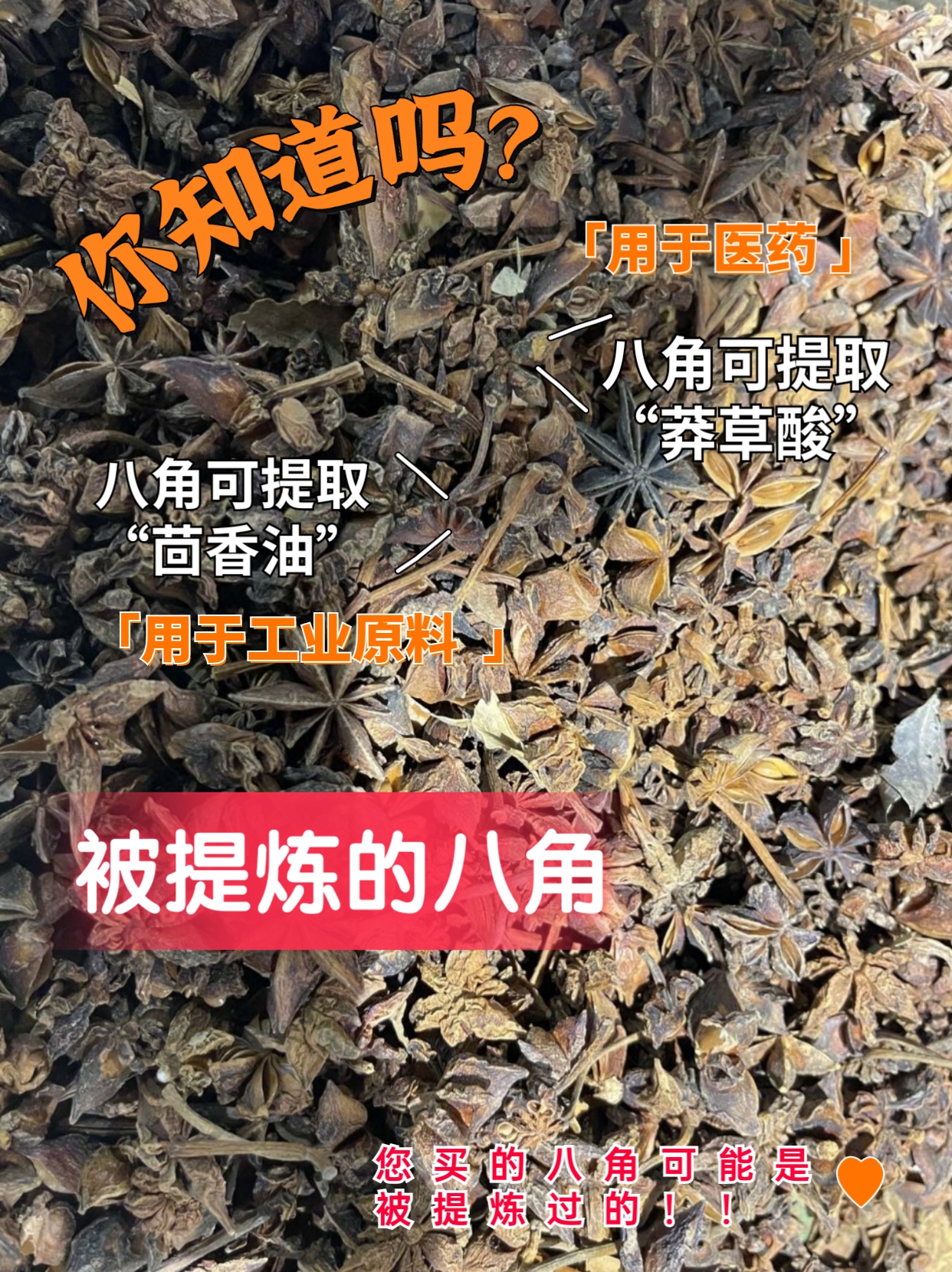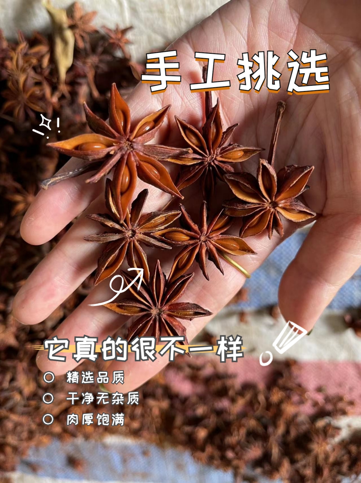 全国百分之95的家庭都会食用八角,而百分之80的家庭都没见过这种满是油籽的无硫不提炼香八角。