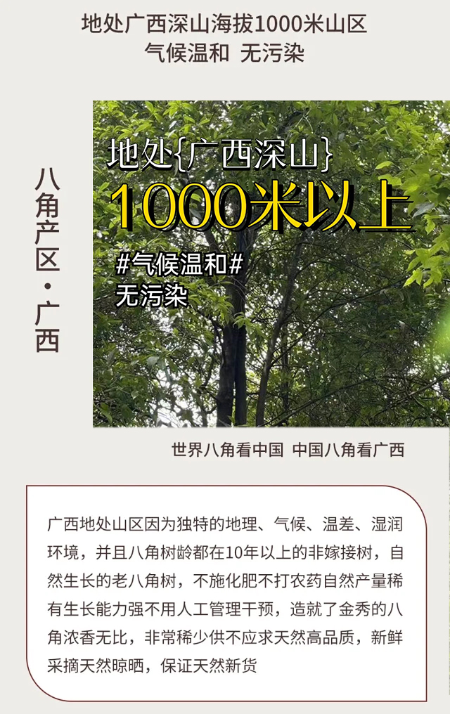 野生不提炼八角 醇香四溢 无硫/不提炼/野生/非嫁接/30年以上老树/深山八角