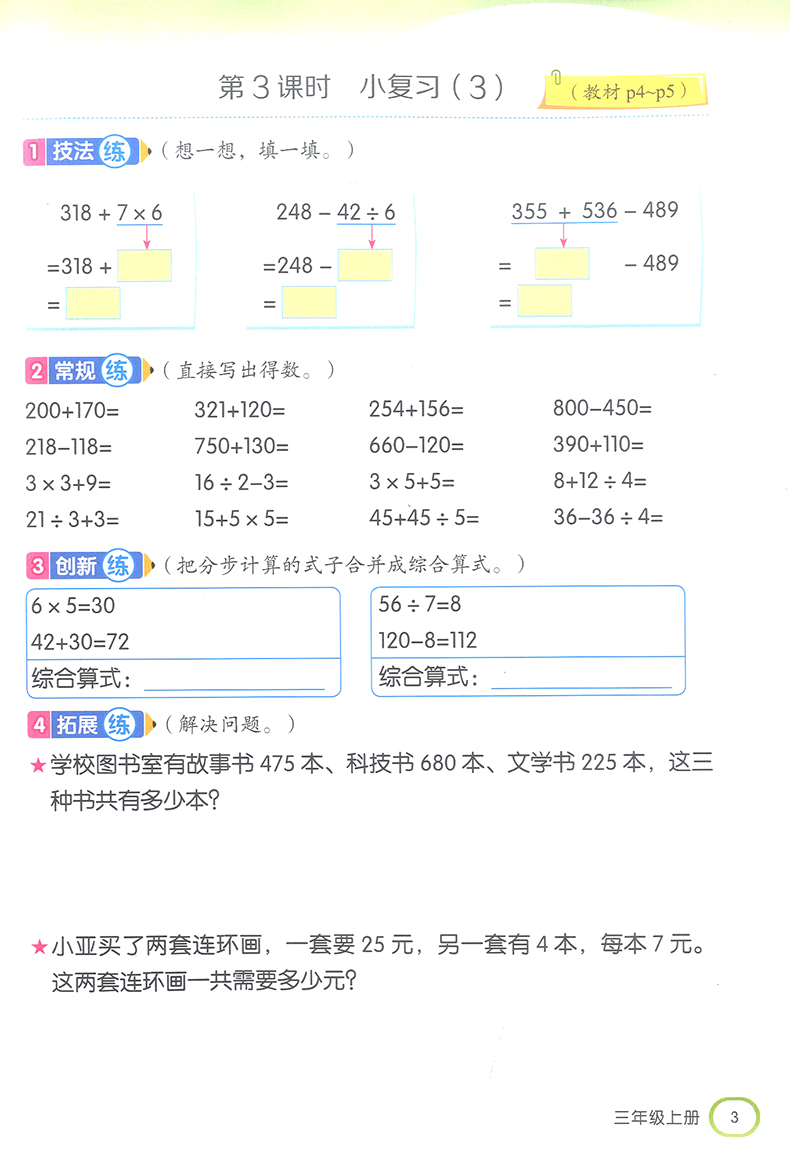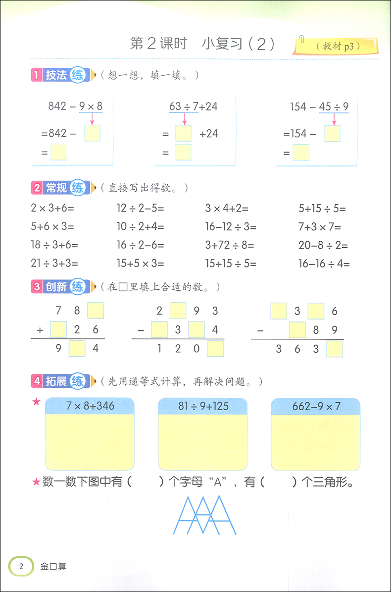 2020金口算阶梯小练习 三年级上册/3年级第一学期 沪教版 含答案 钟书金牌 小学数学口算速算练习册 上海大学出版社
