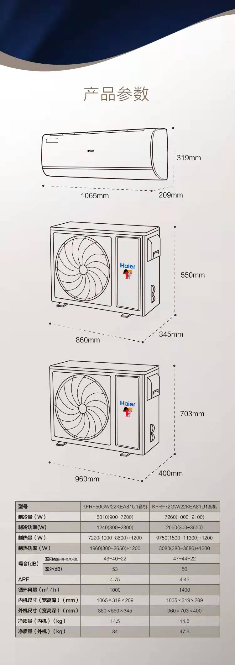 海尔 雷神者二代大2匹新一级变频 3D除菌舱睡眠空调挂机 自清洁 三翼导板 2匹 挂机KFR-50GW22KEA81U1