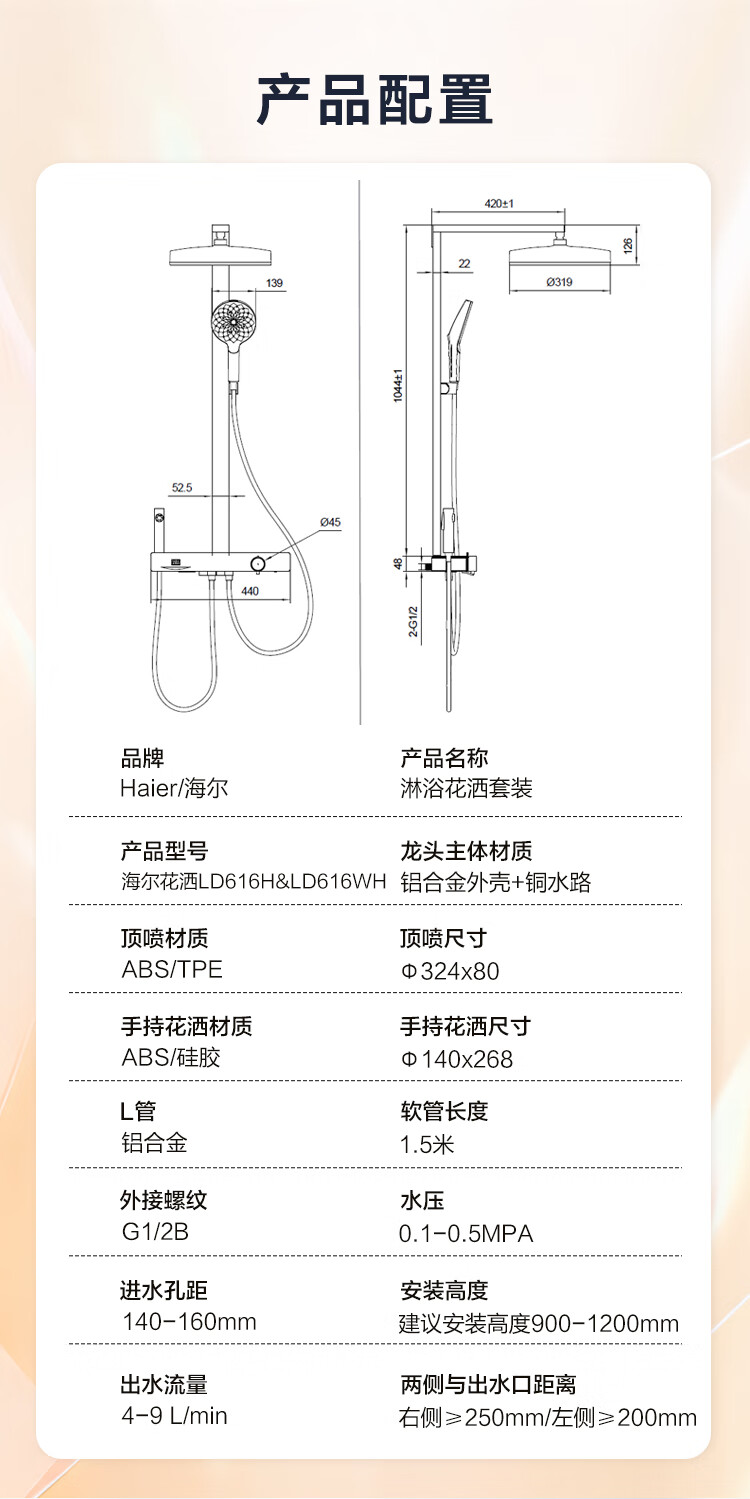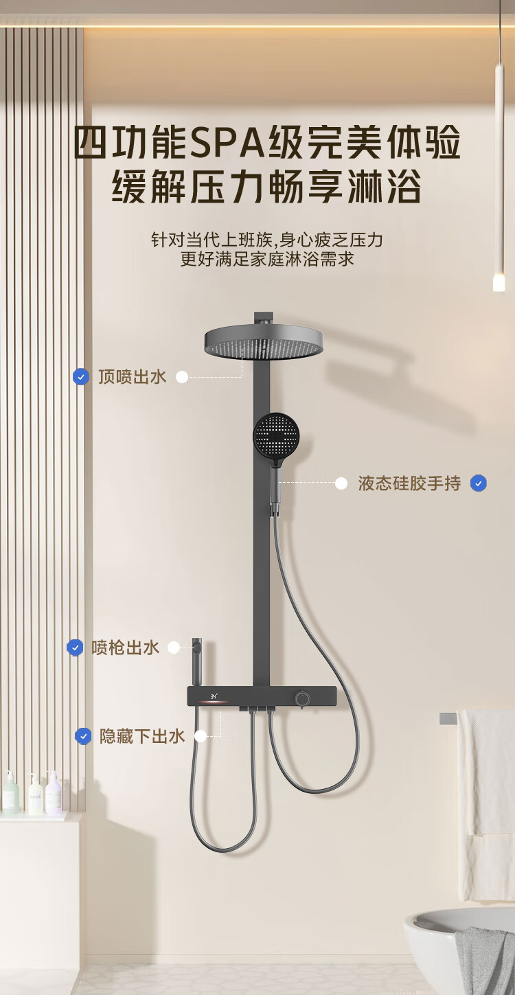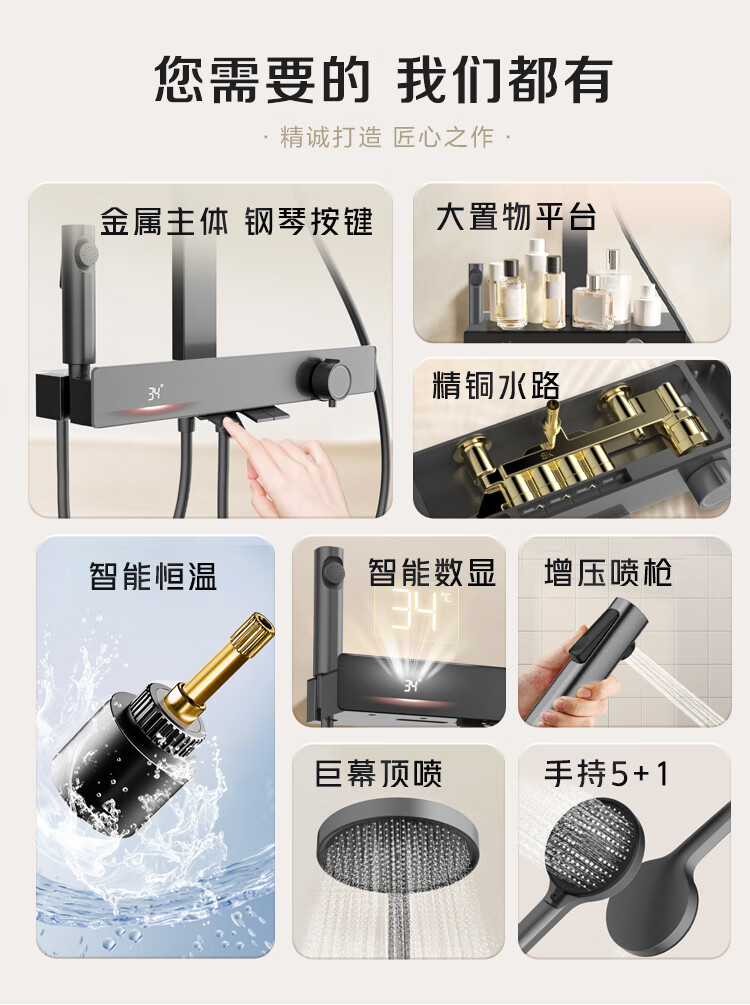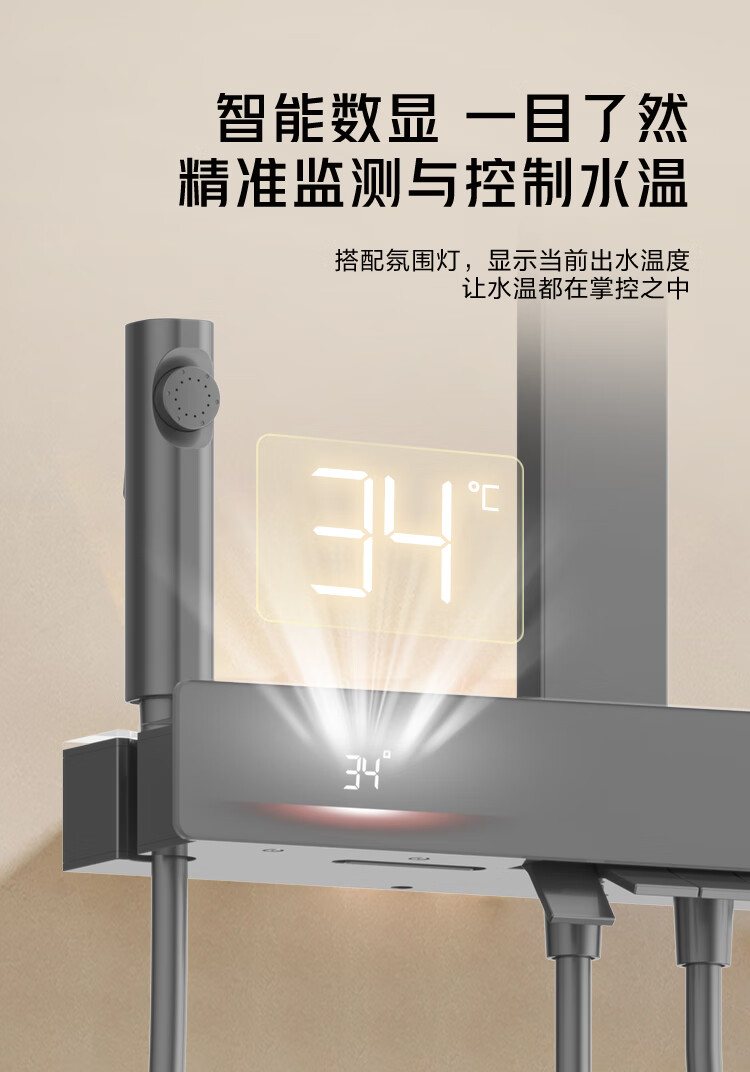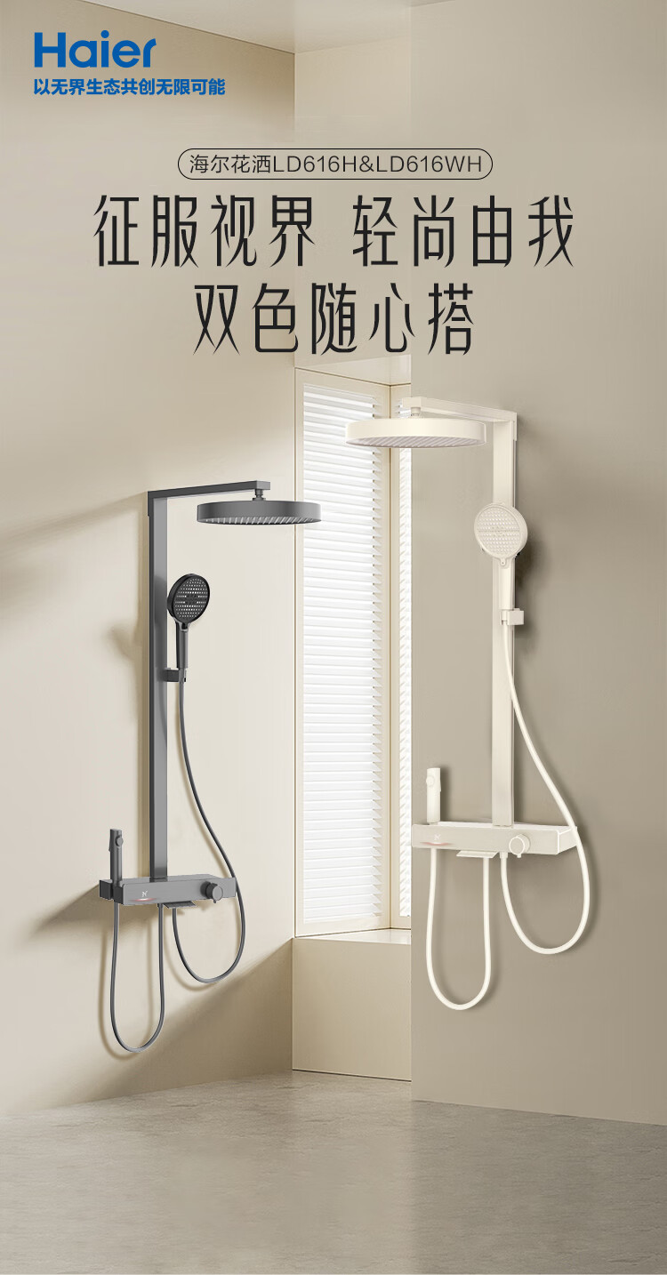 海尔(Haier)四功能恒温花洒全套钢琴按键智能数显枪灰色/奶白色淋浴花洒套装LD616H/LD616WH