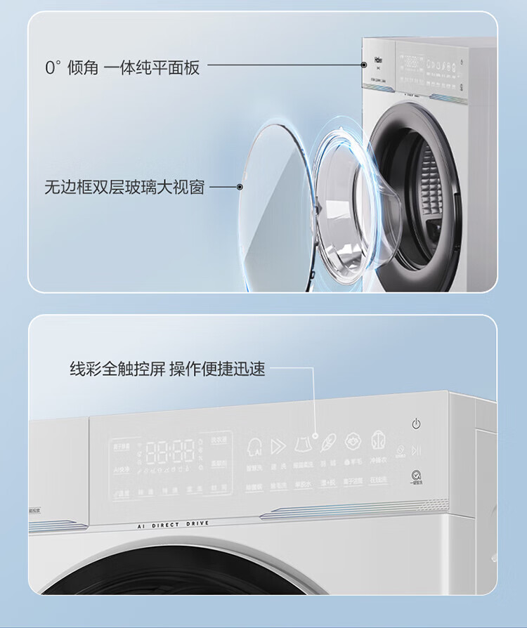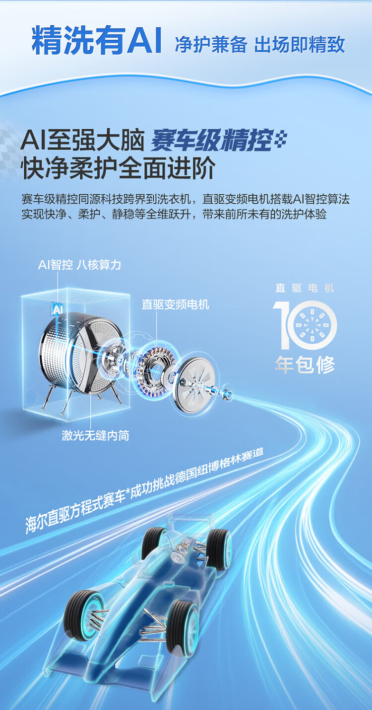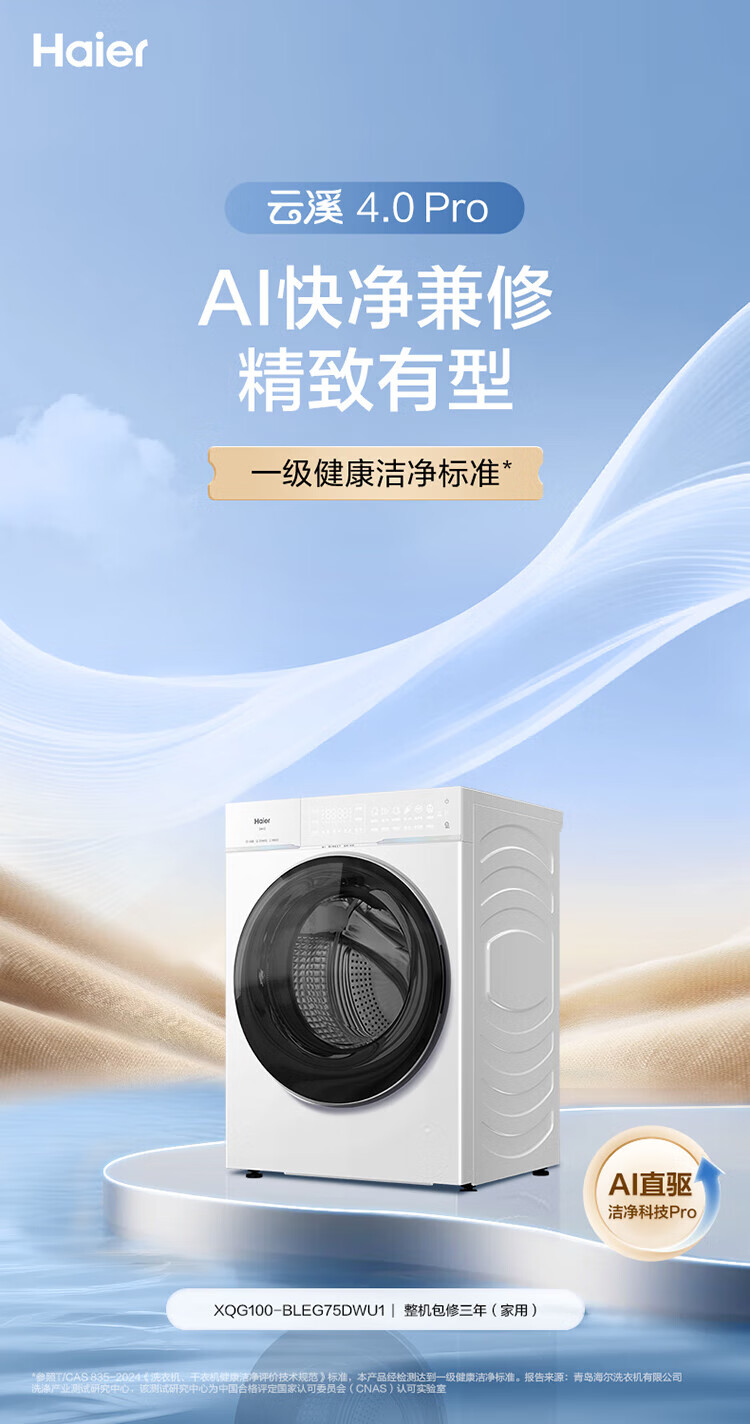 【云溪4.0pro】海尔滚筒洗衣机全自动10公斤大容量懒人家用AI直驱精华洗1.28高洗净比光等离子除菌【75D白】537超薄+AI直驱+光等离子除菌XQG100-BLEG75DWU1