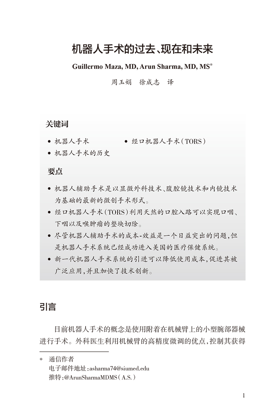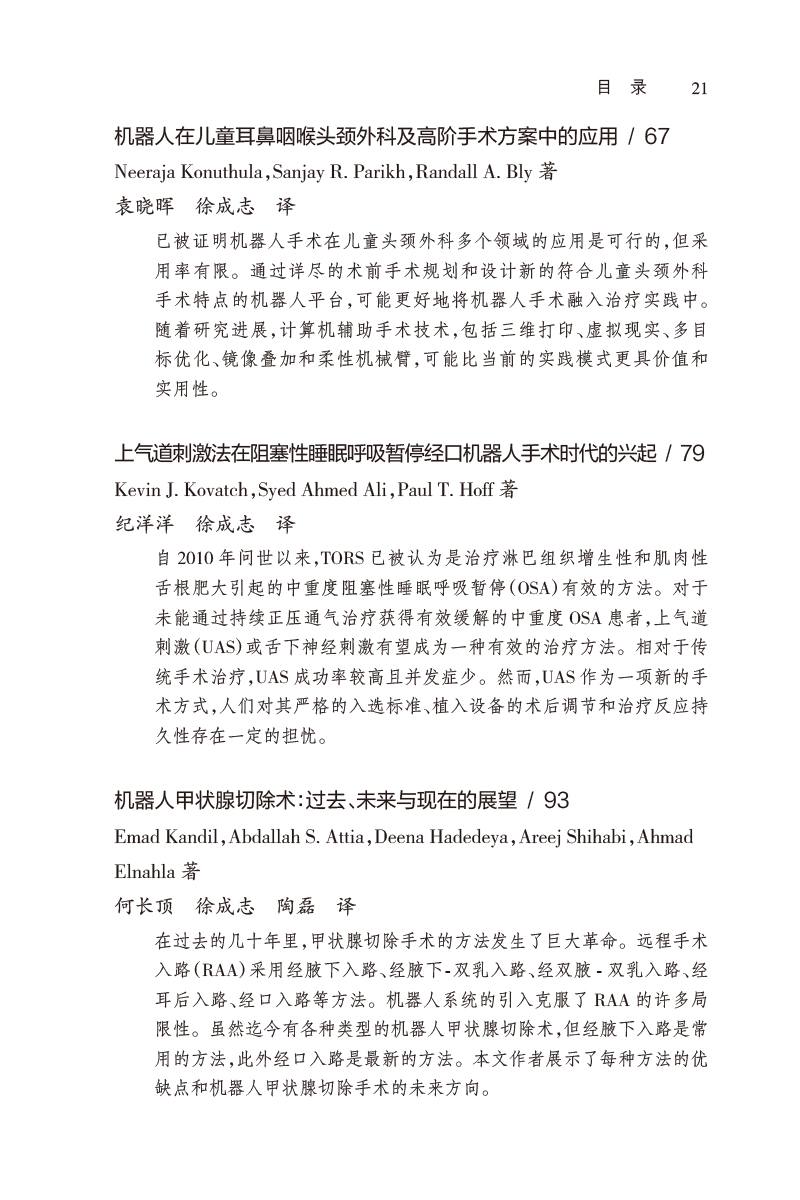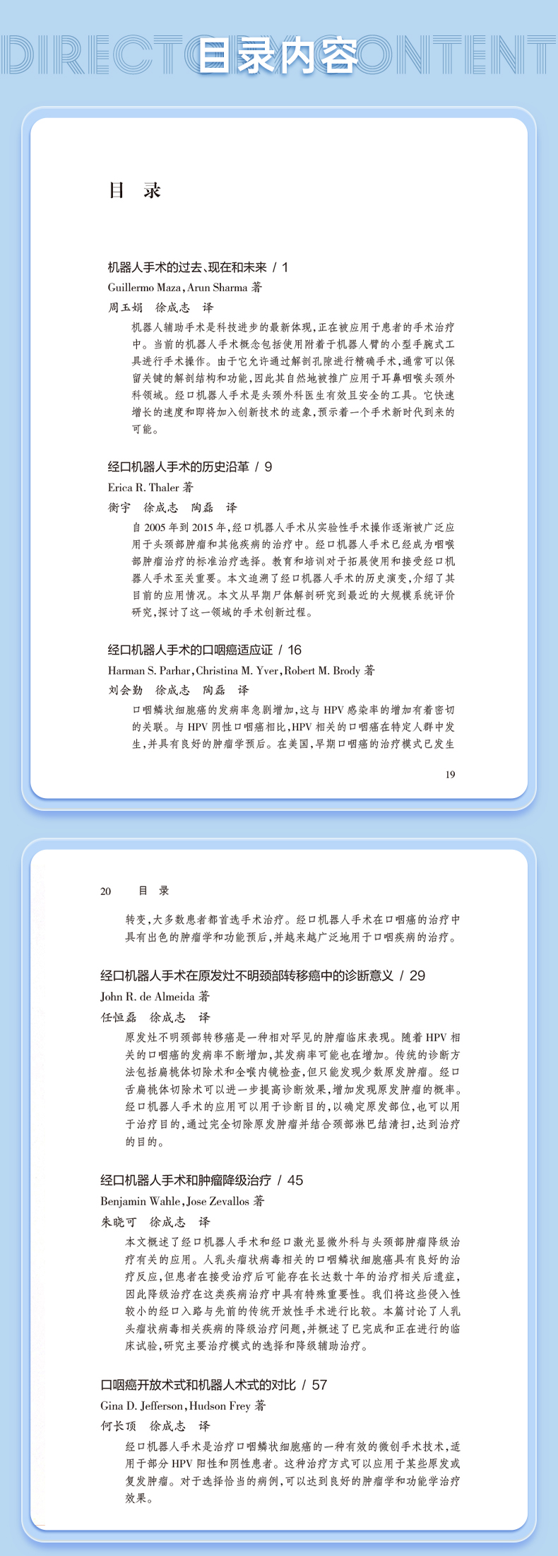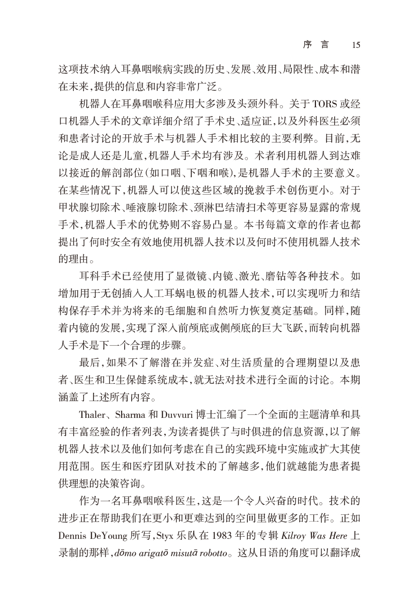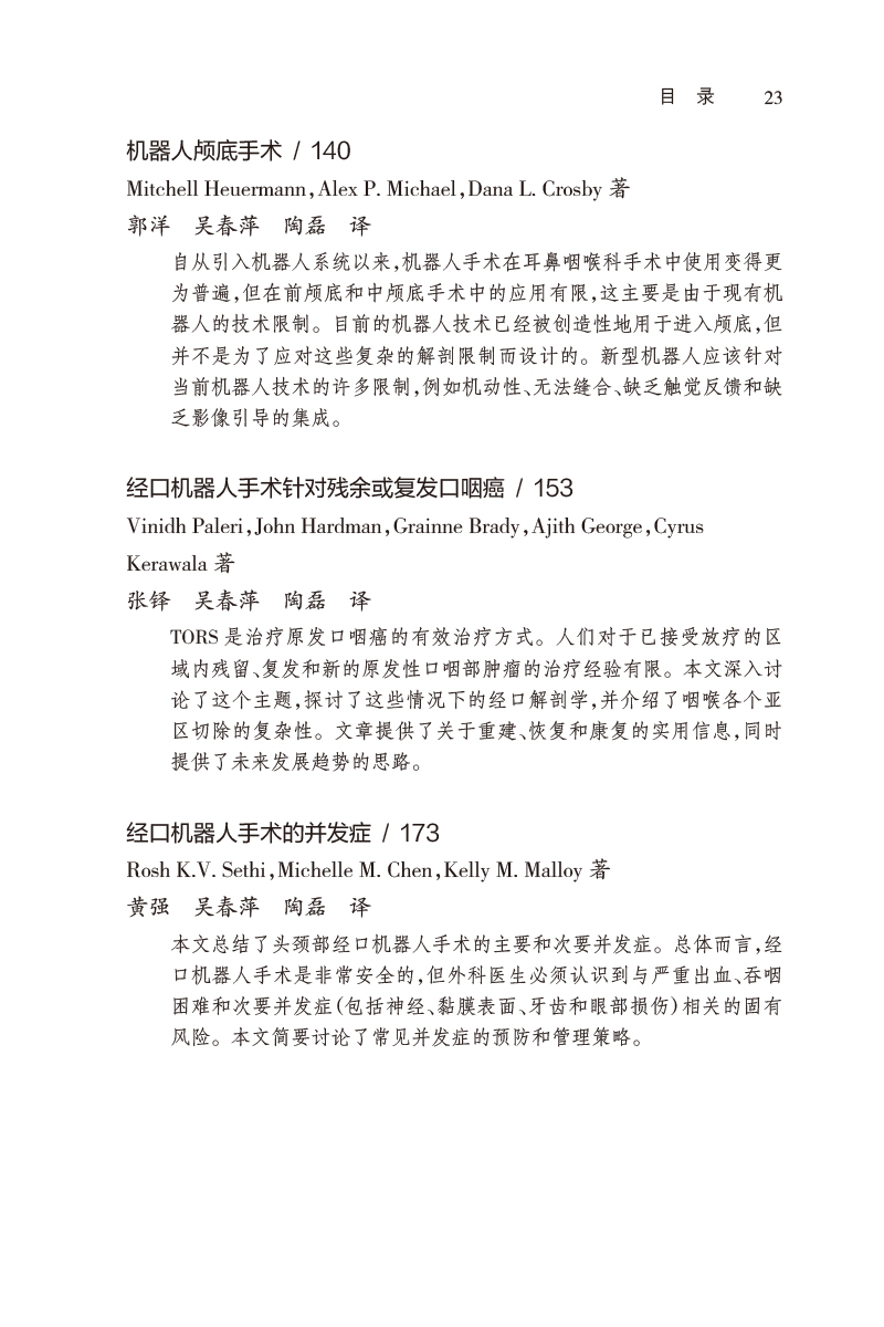 手术机器人在耳鼻咽喉头颈外科中的应用 徐成志 吴春萍 陶磊 耳鼻咽喉科手术机器人应用各方面总结 人民卫生出版社9787117363594