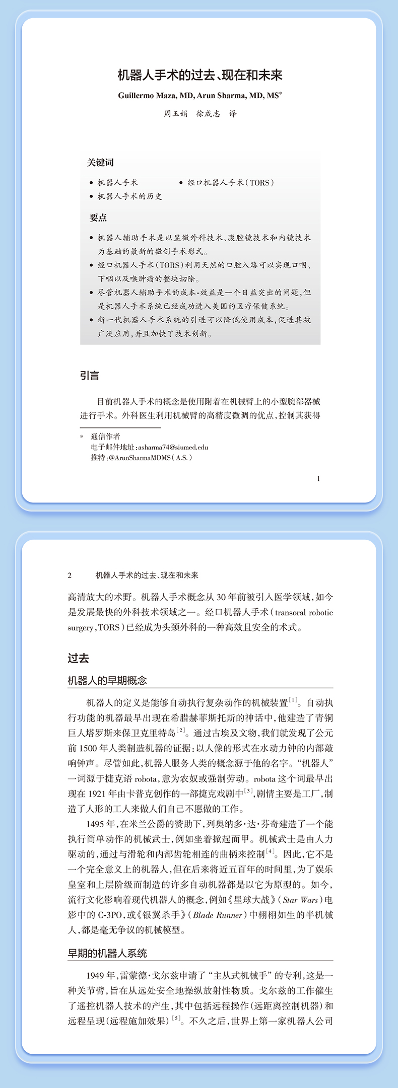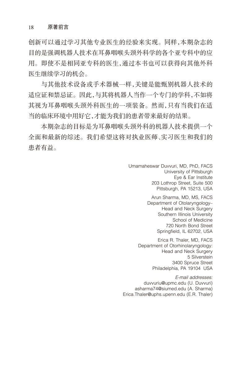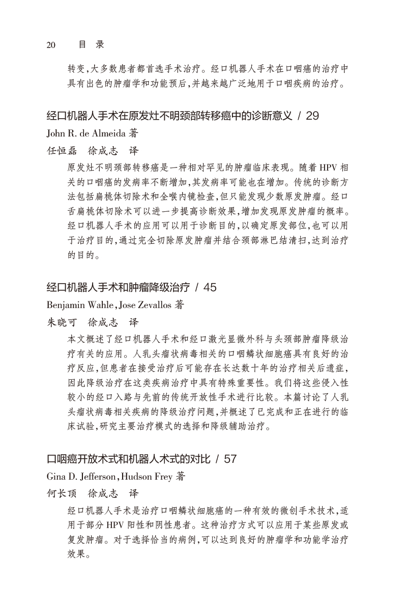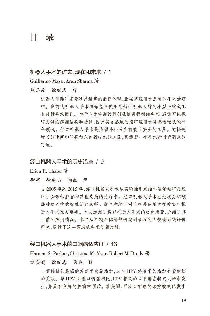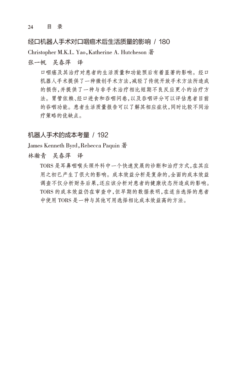 手术机器人在耳鼻咽喉头颈外科中的应用 徐成志 吴春萍 陶磊 耳鼻咽喉科手术机器人应用各方面总结 人民卫生出版社9787117363594