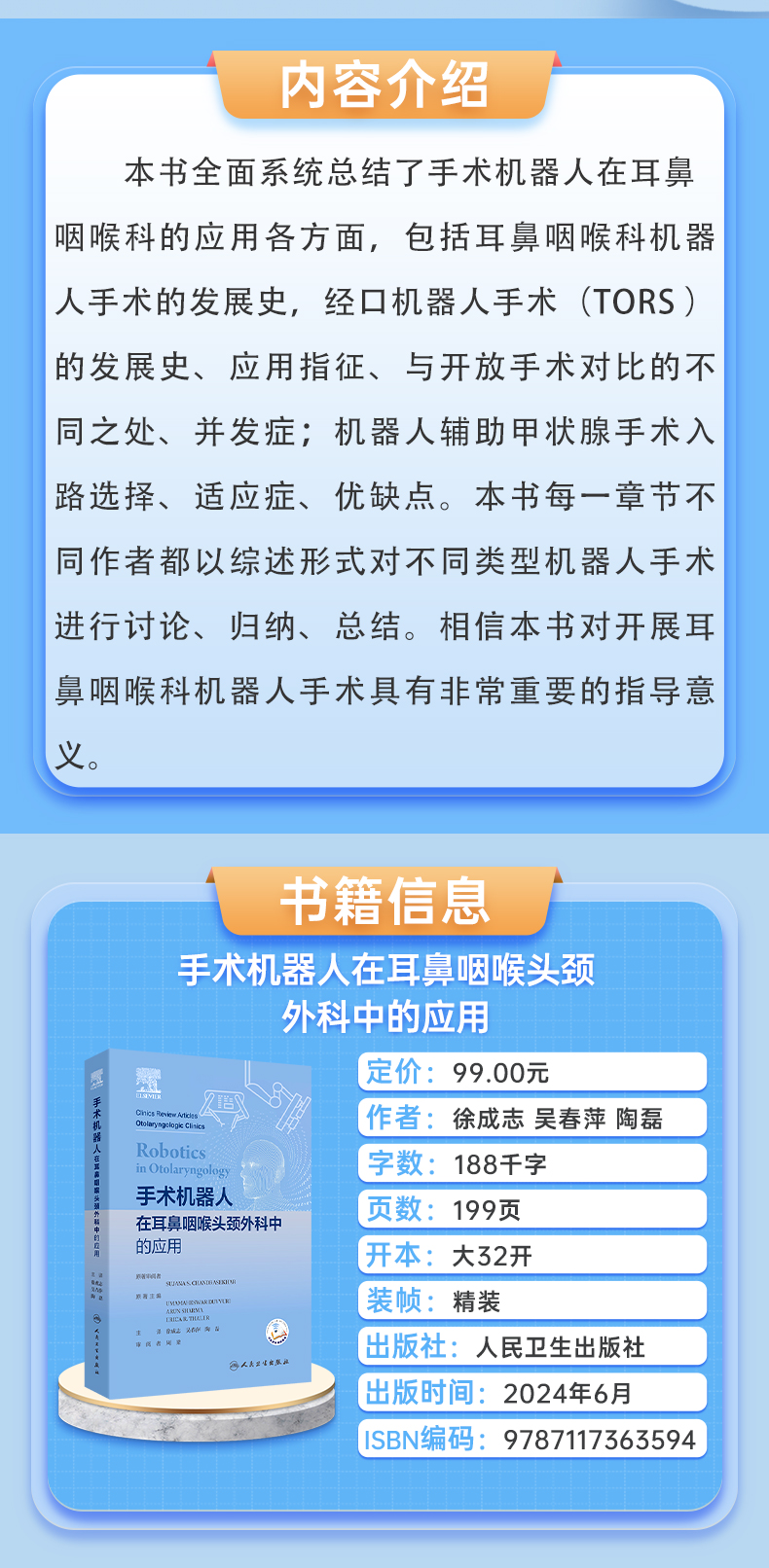 书名:手术机器人在耳鼻咽喉头颈外科中的应用
