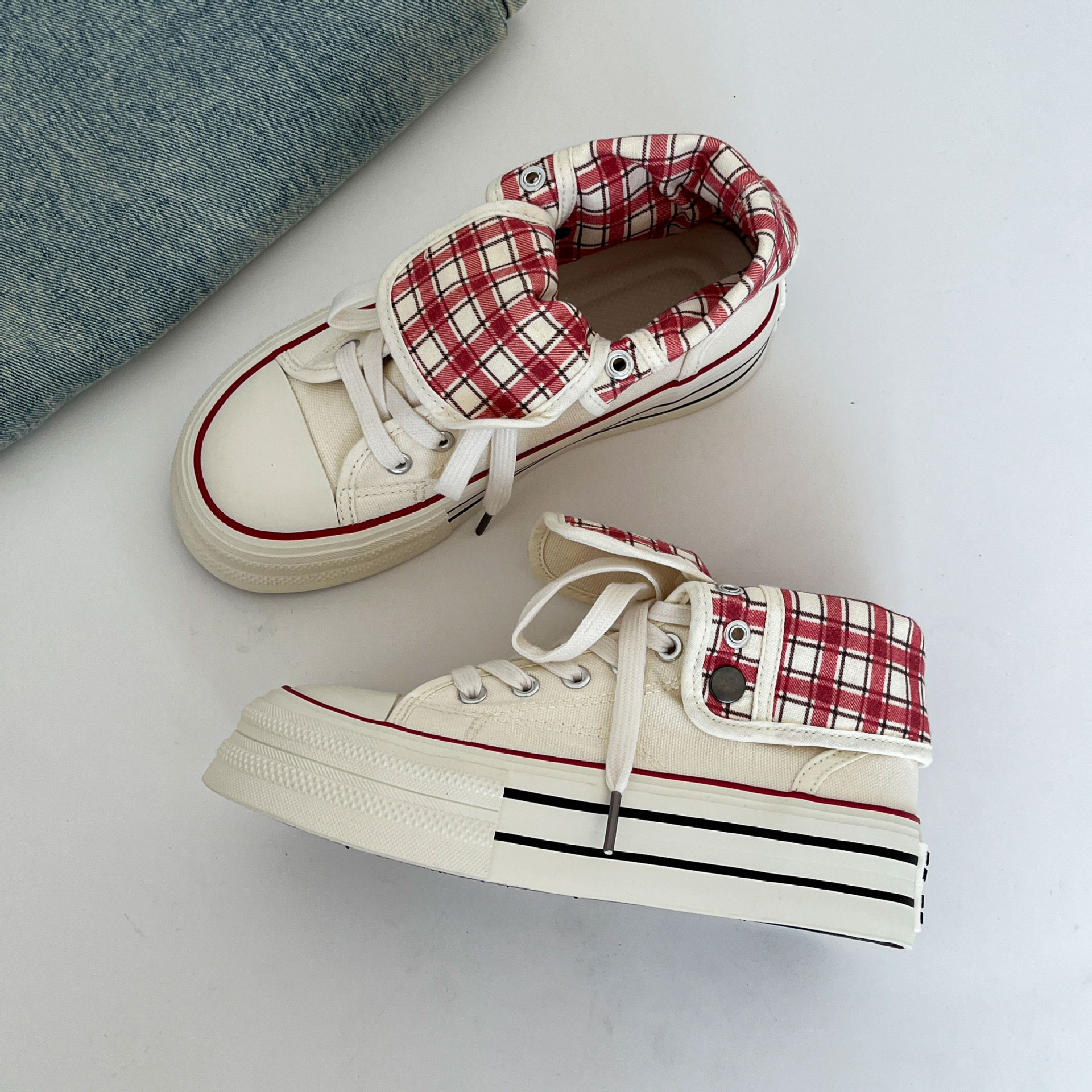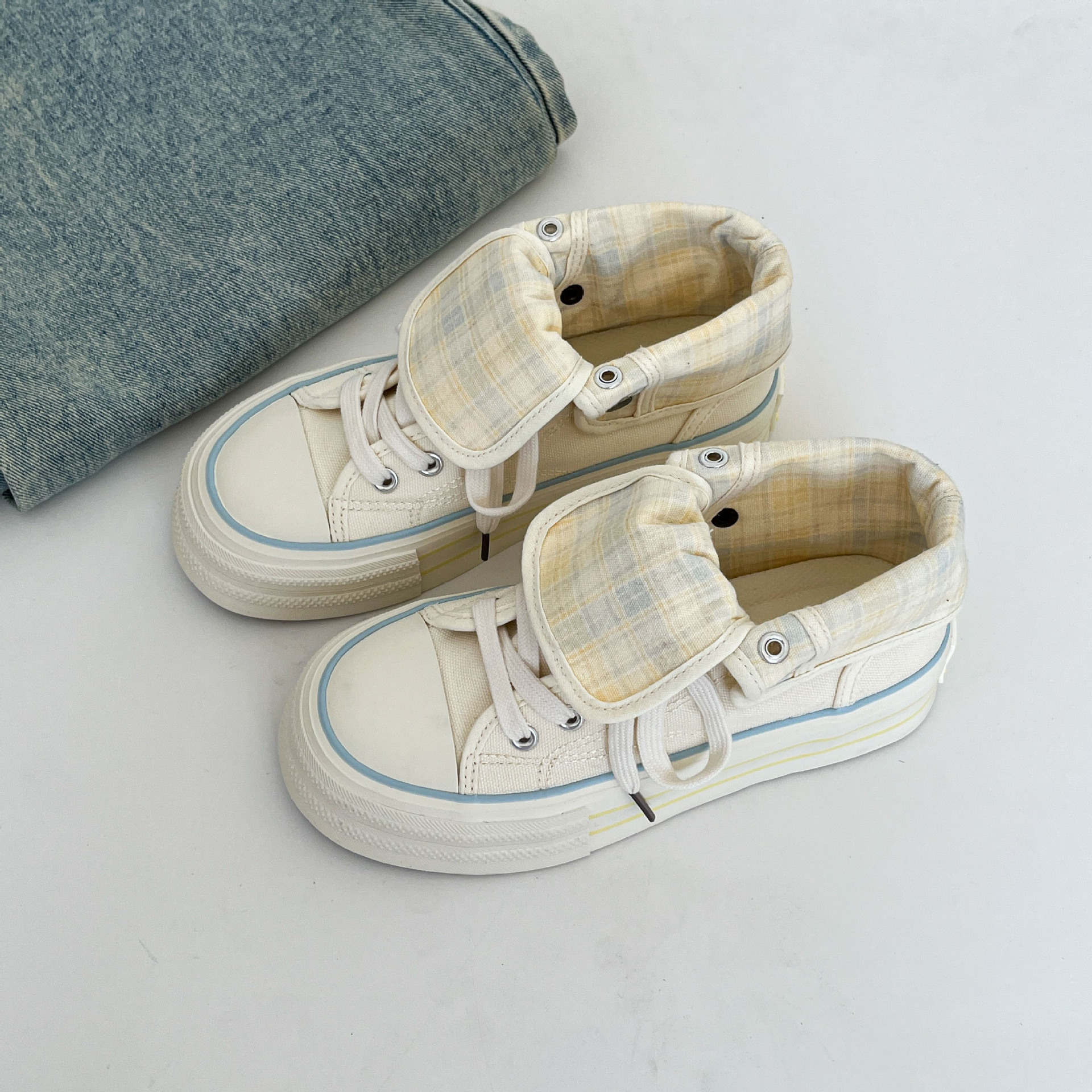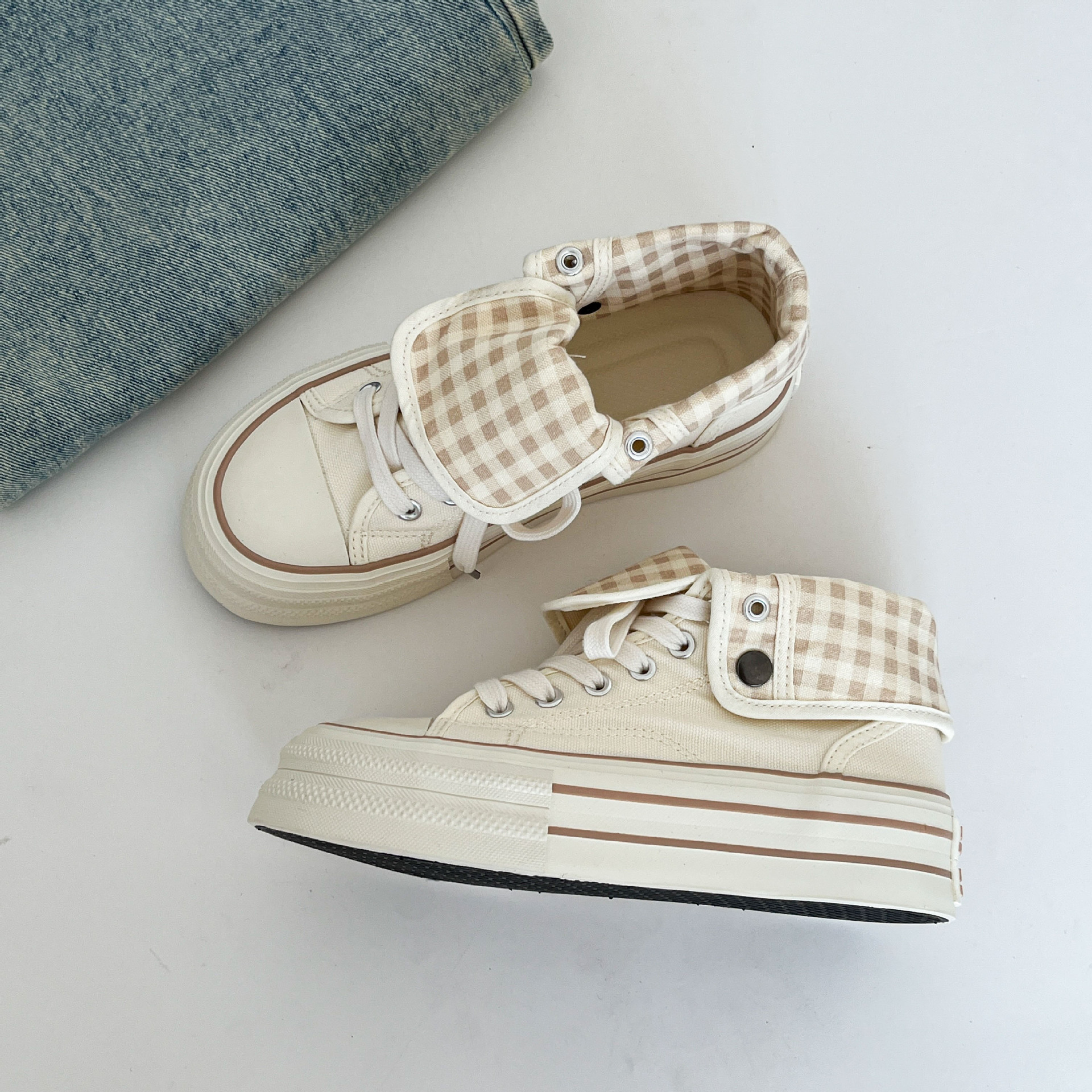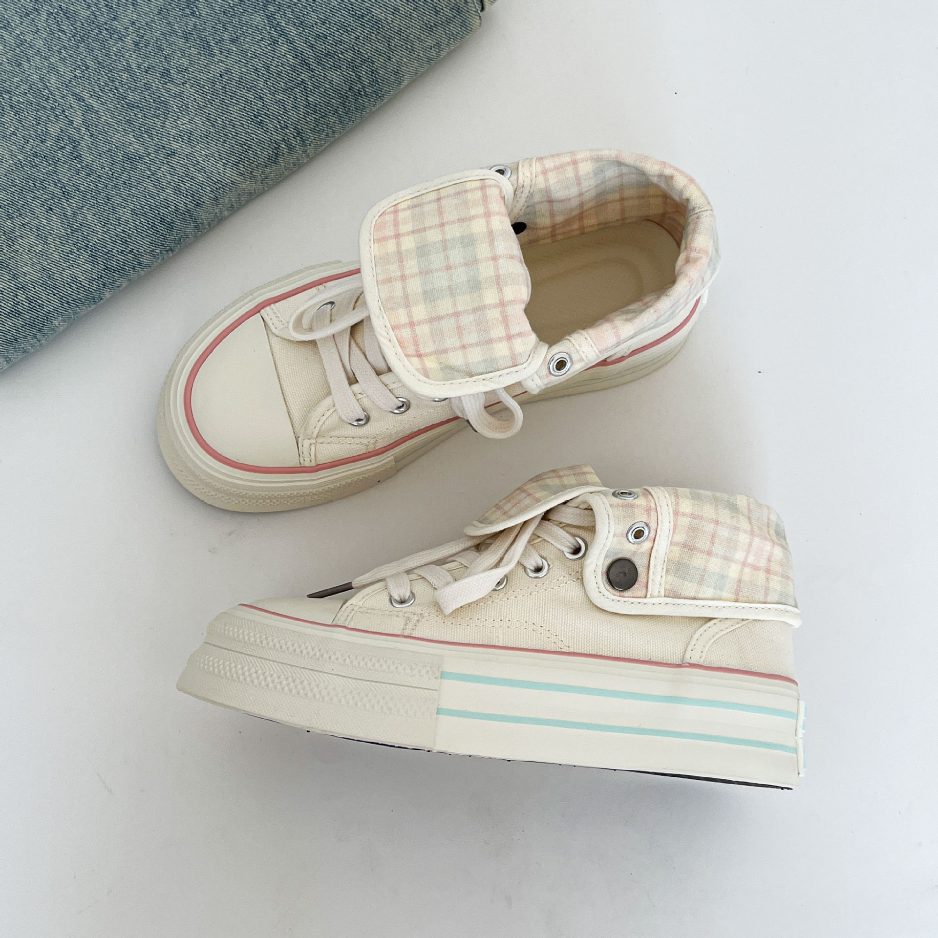 【YW】无忧购 两穿高帮增高帆布鞋女新款复古白色增高小众休闲鞋6163(截单后3-5天发货)