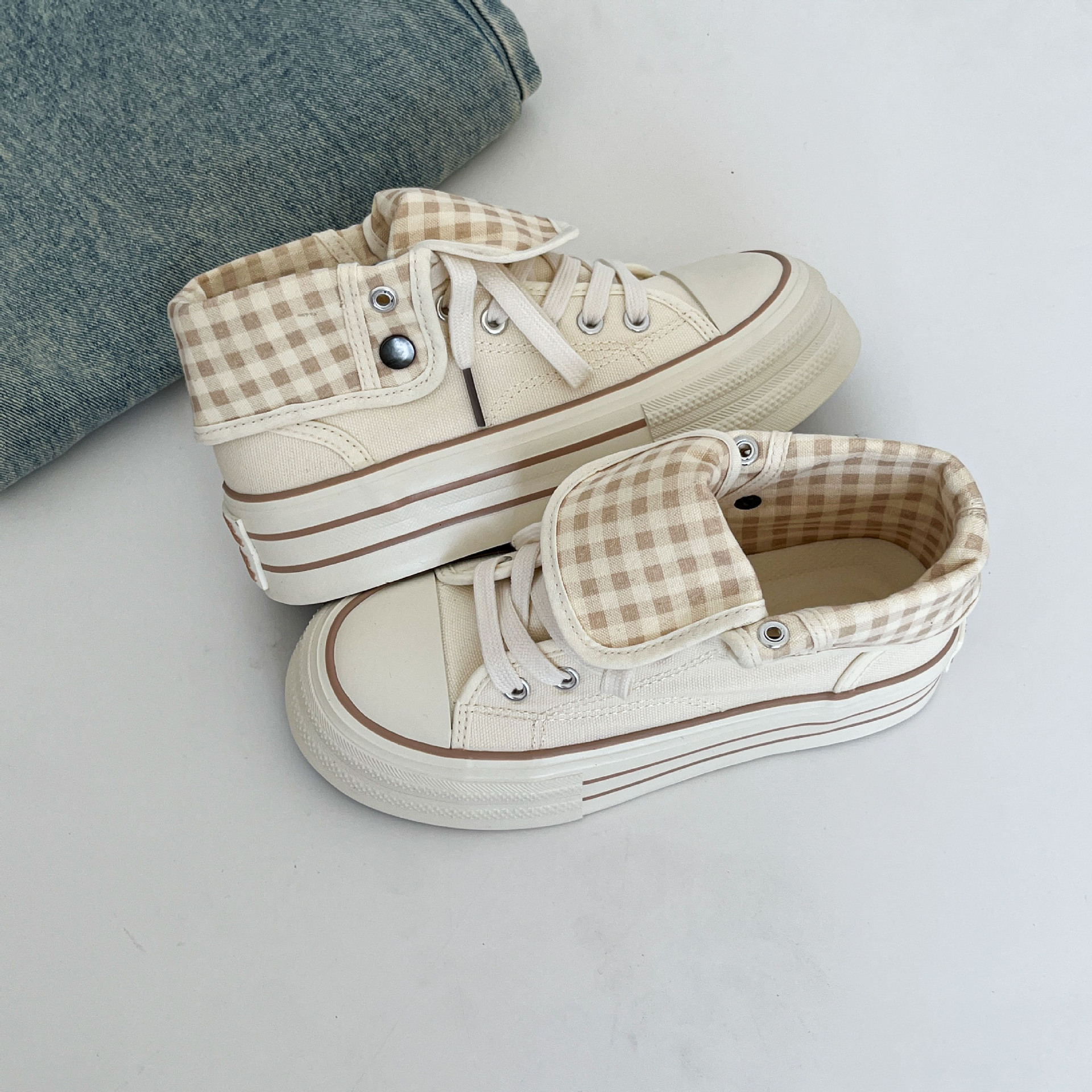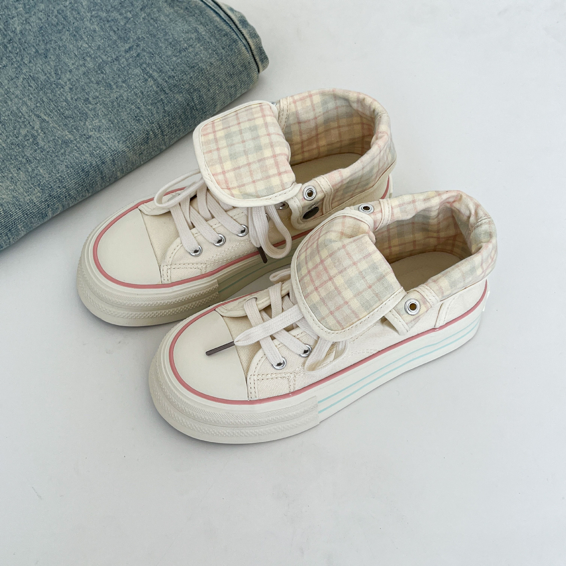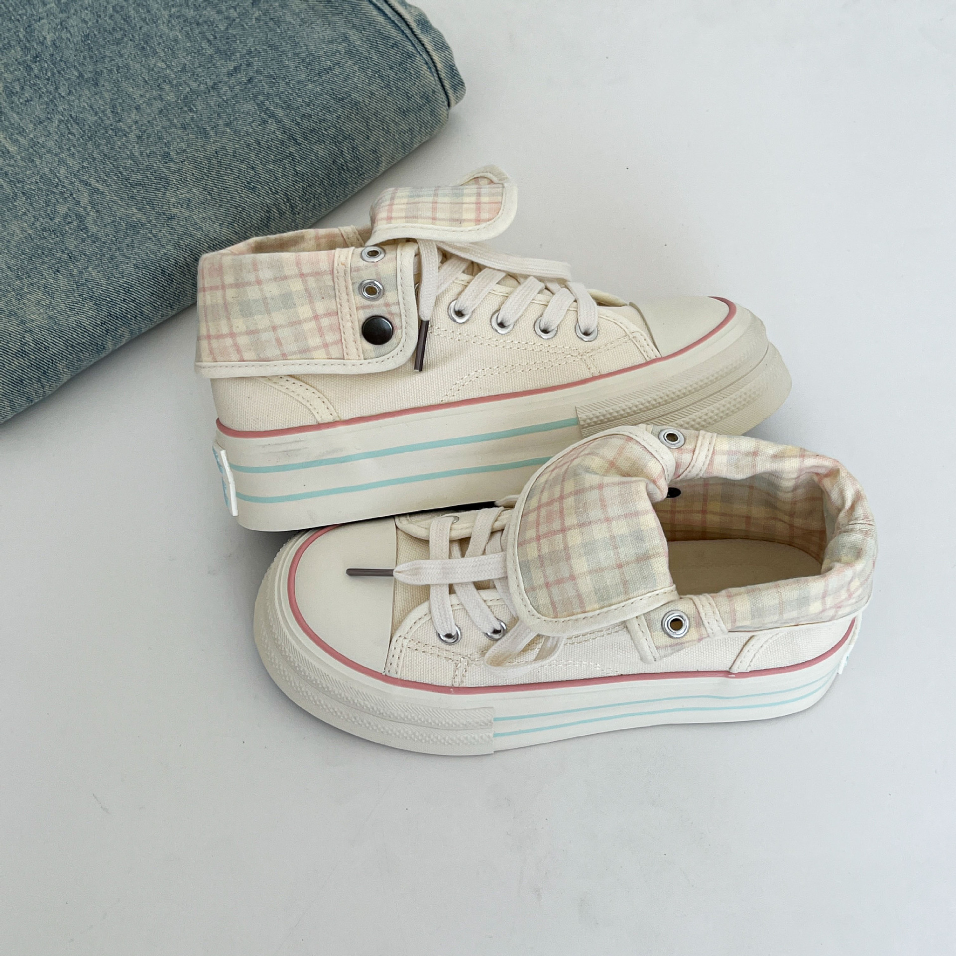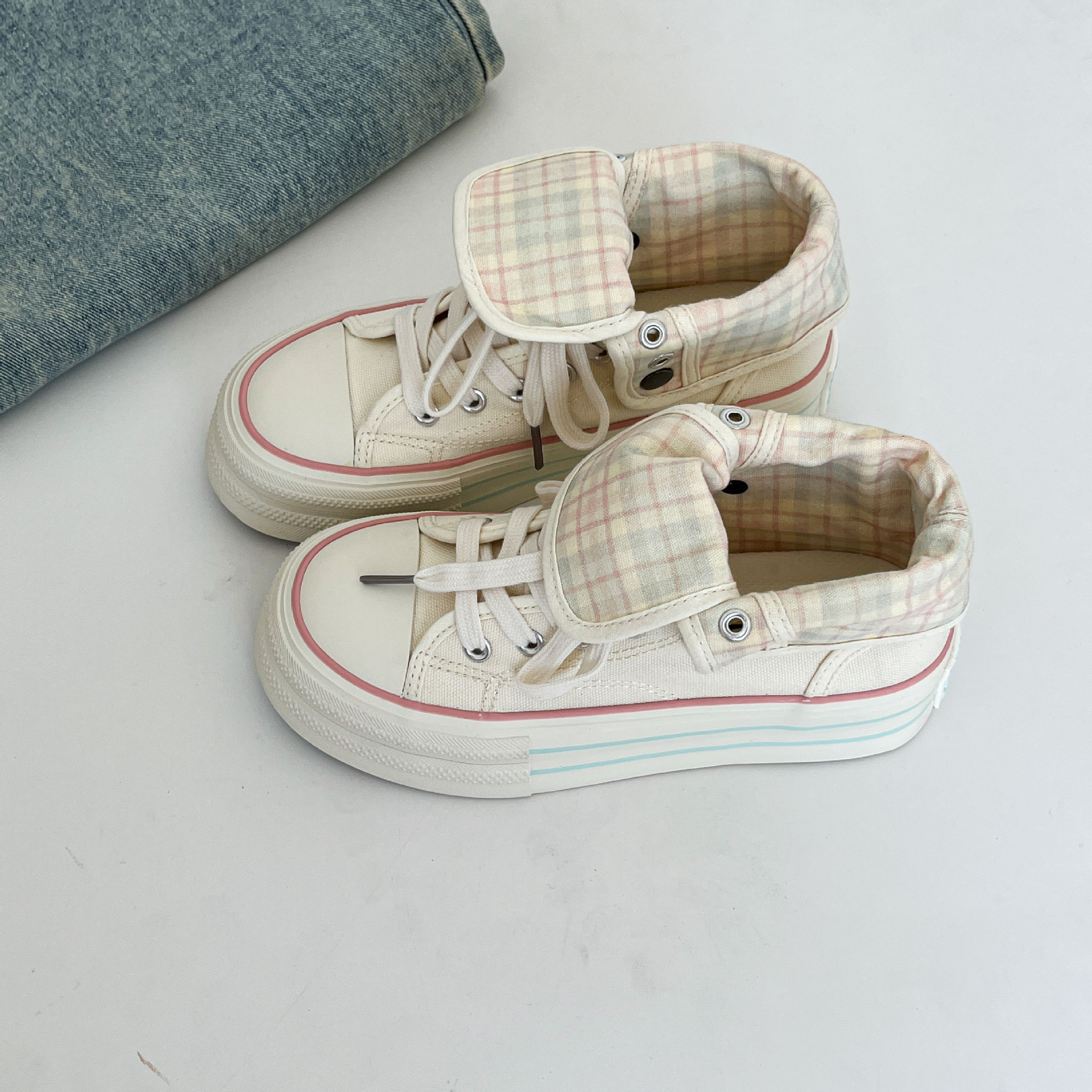 【YW】无忧购 两穿高帮增高帆布鞋女新款复古白色增高小众休闲鞋6163(截单后3-5天发货)