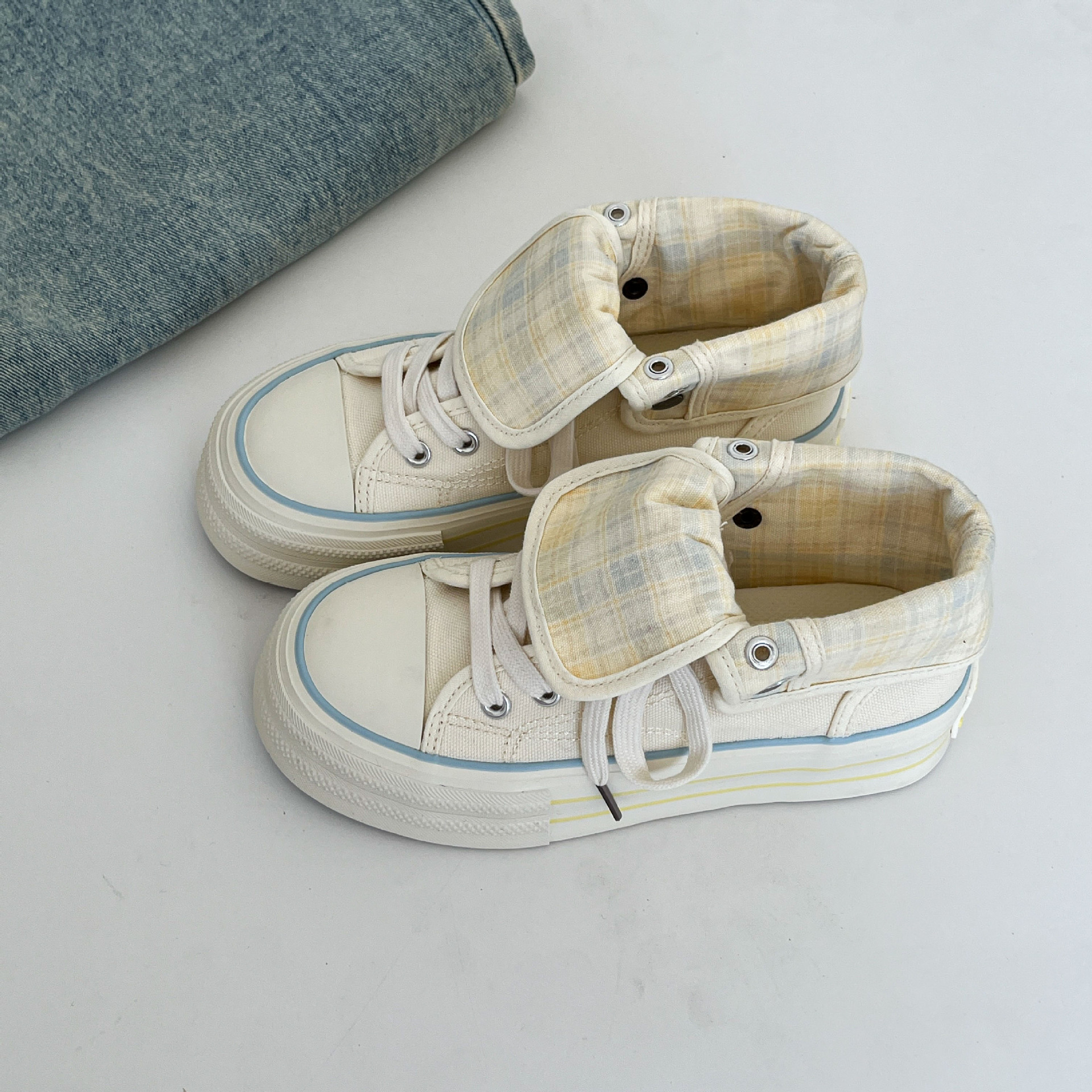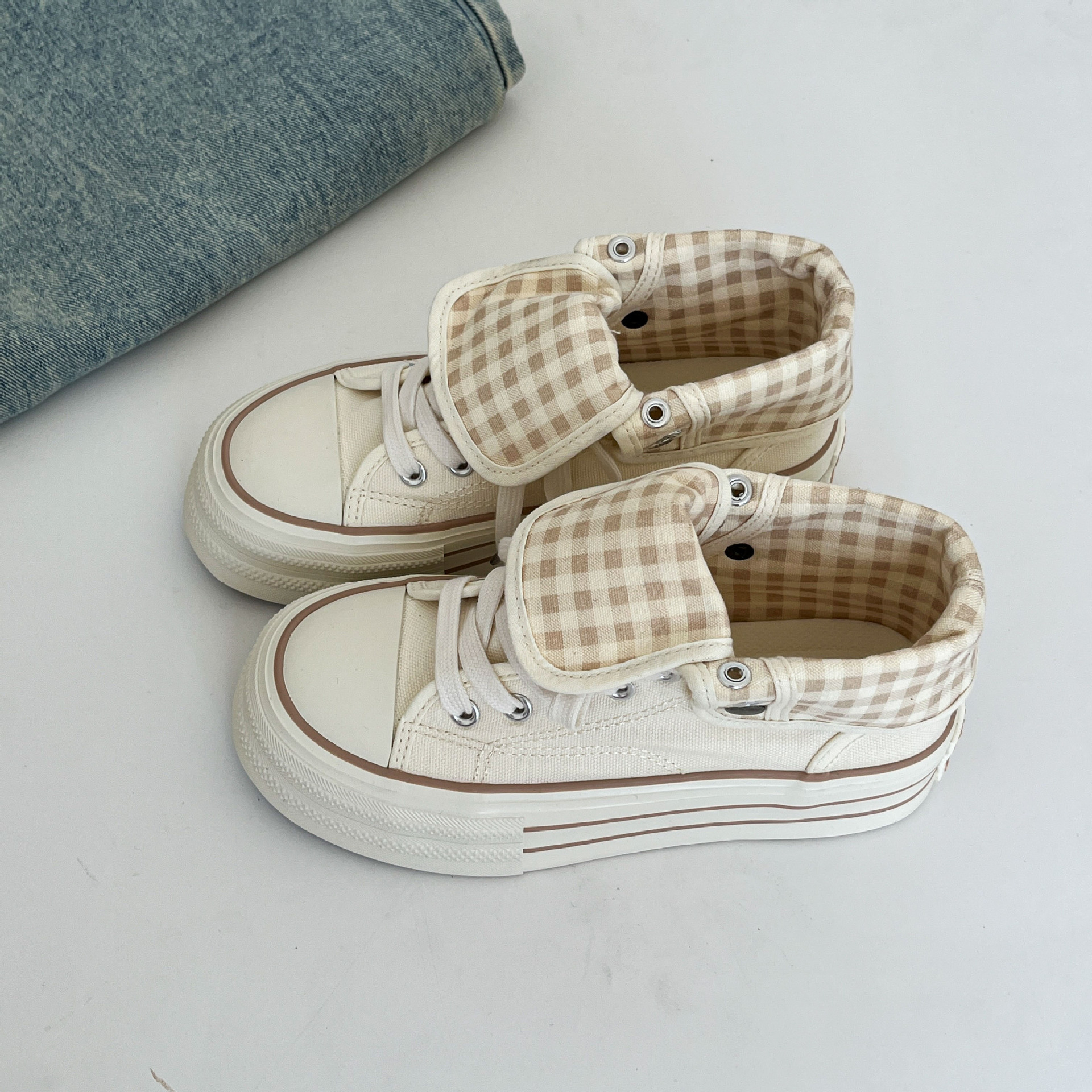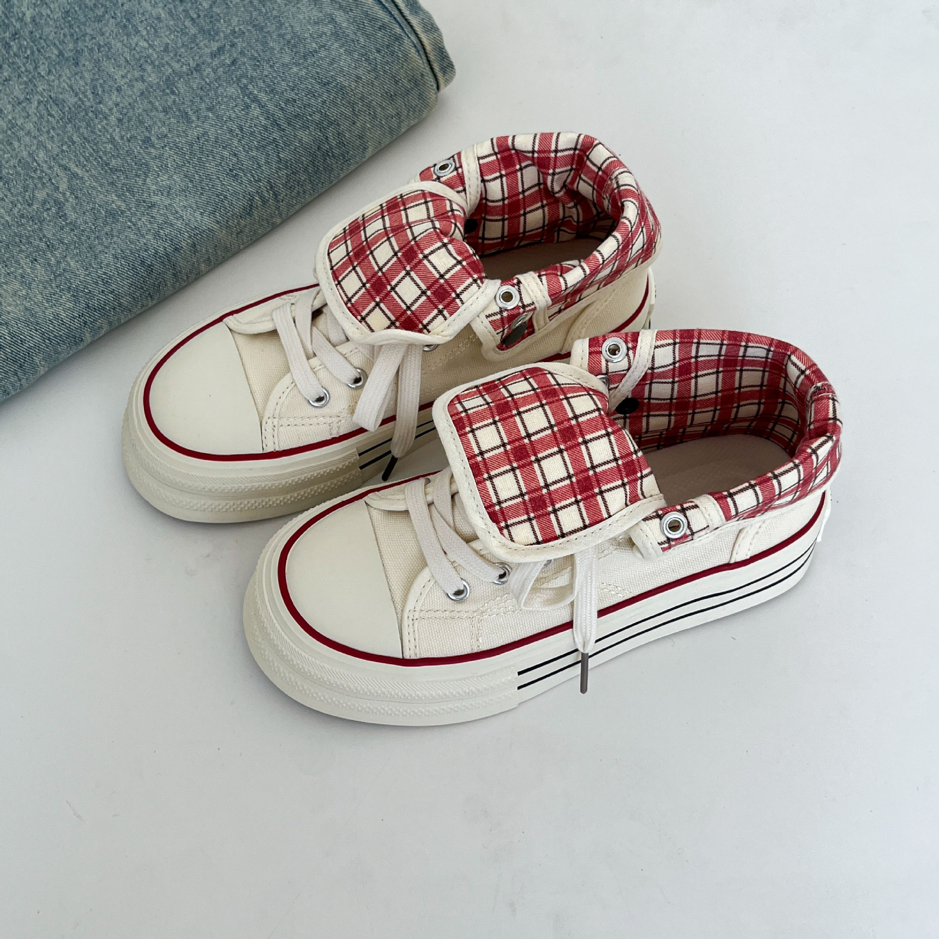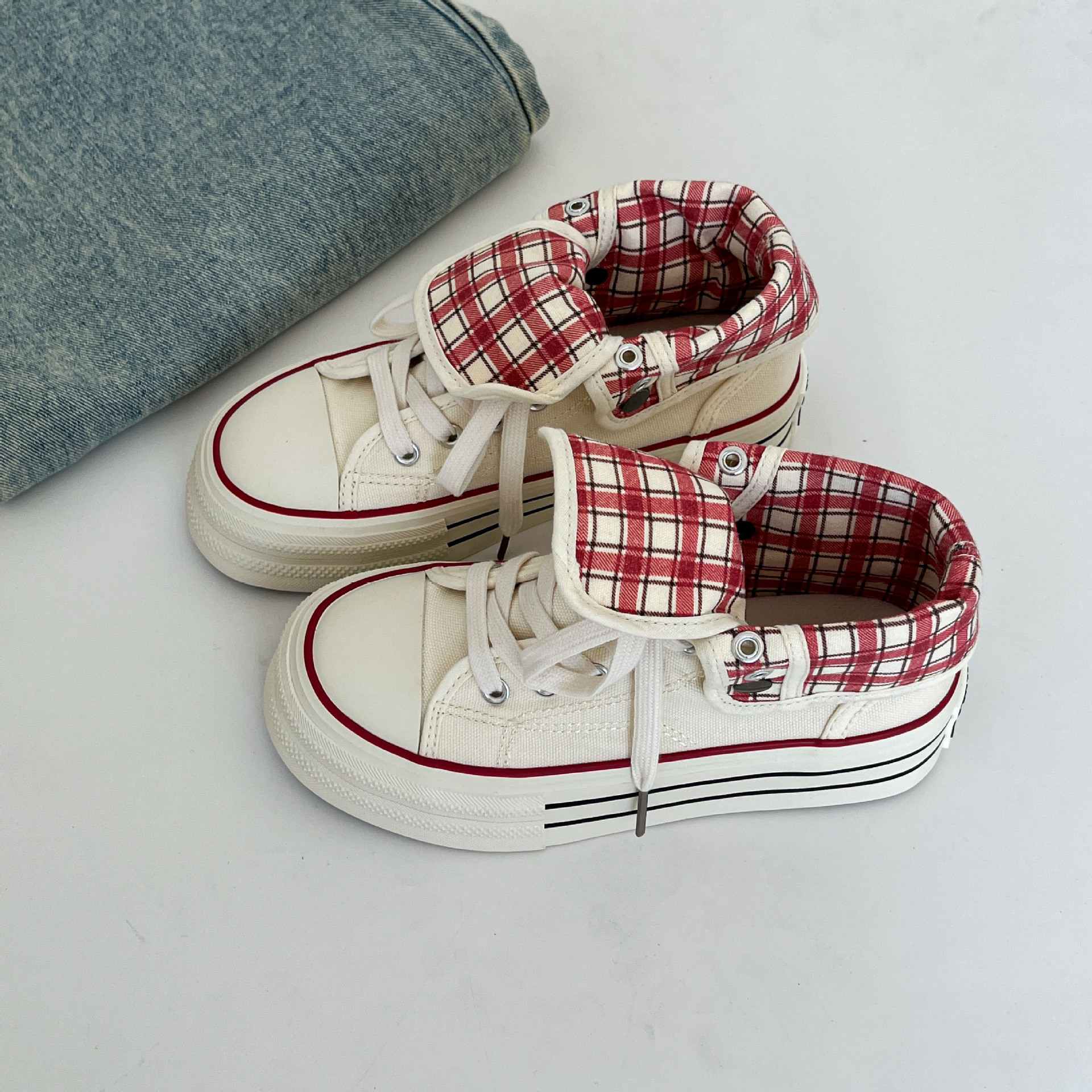 【YW】无忧购 两穿高帮增高帆布鞋女新款复古白色增高小众休闲鞋6163(截单后3-5天发货)