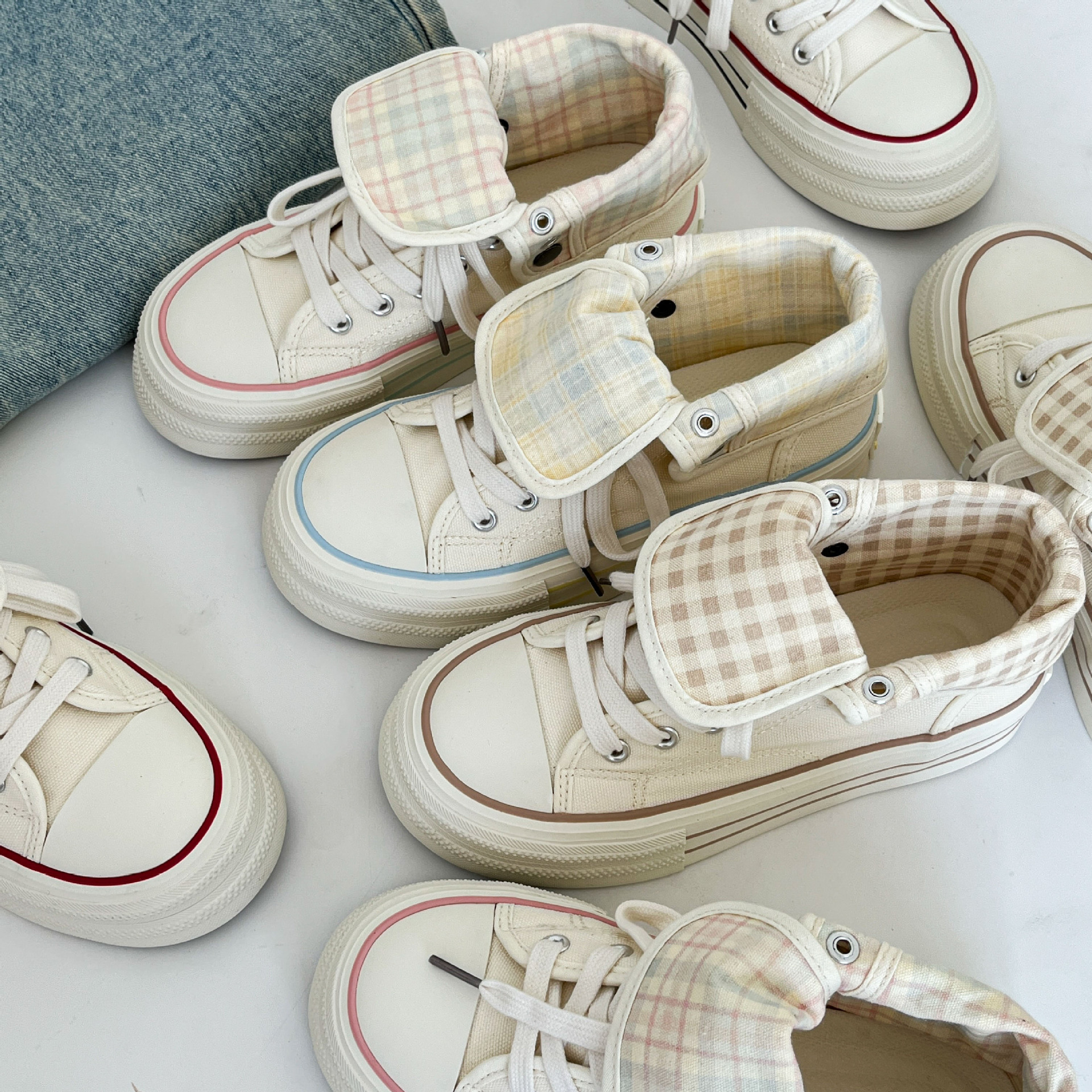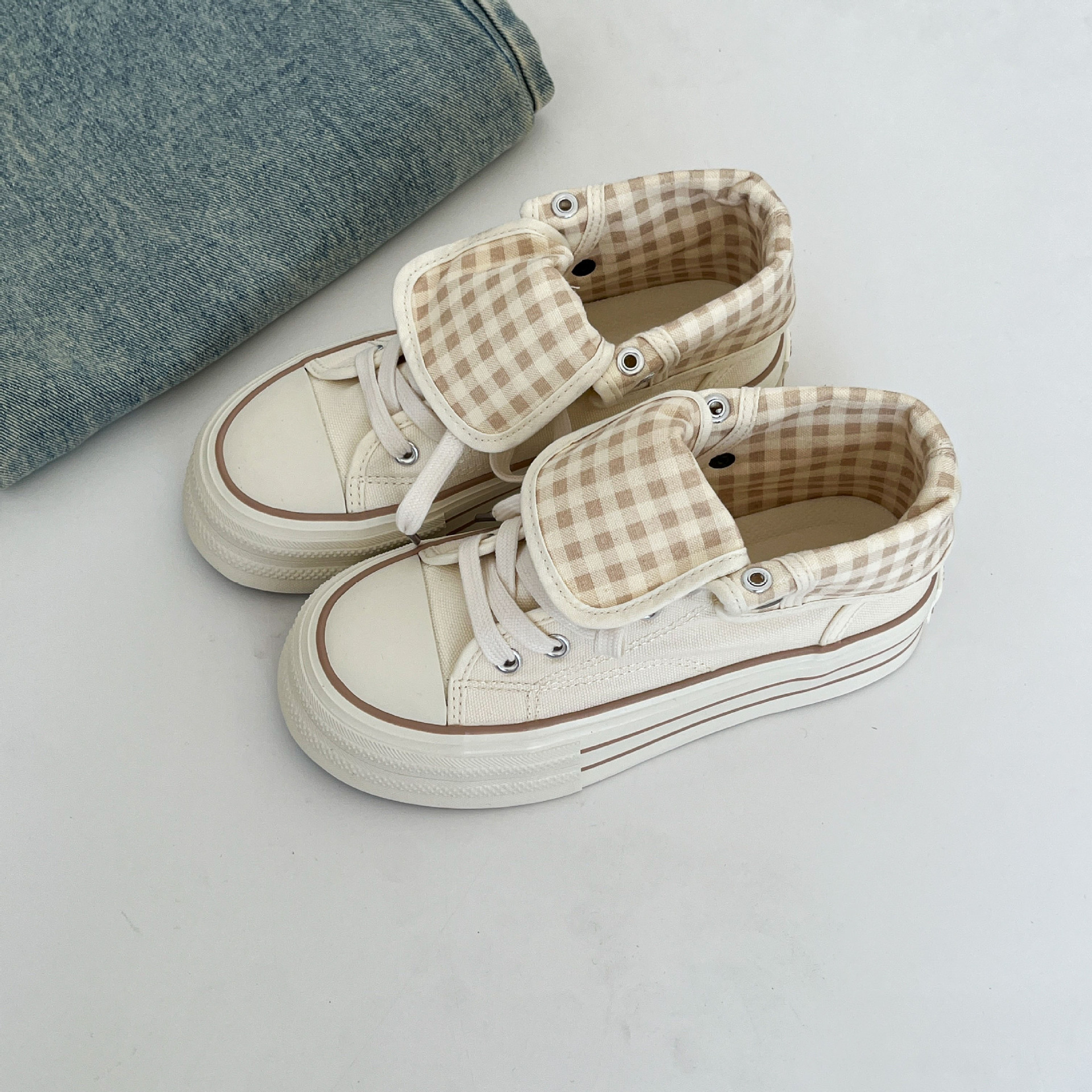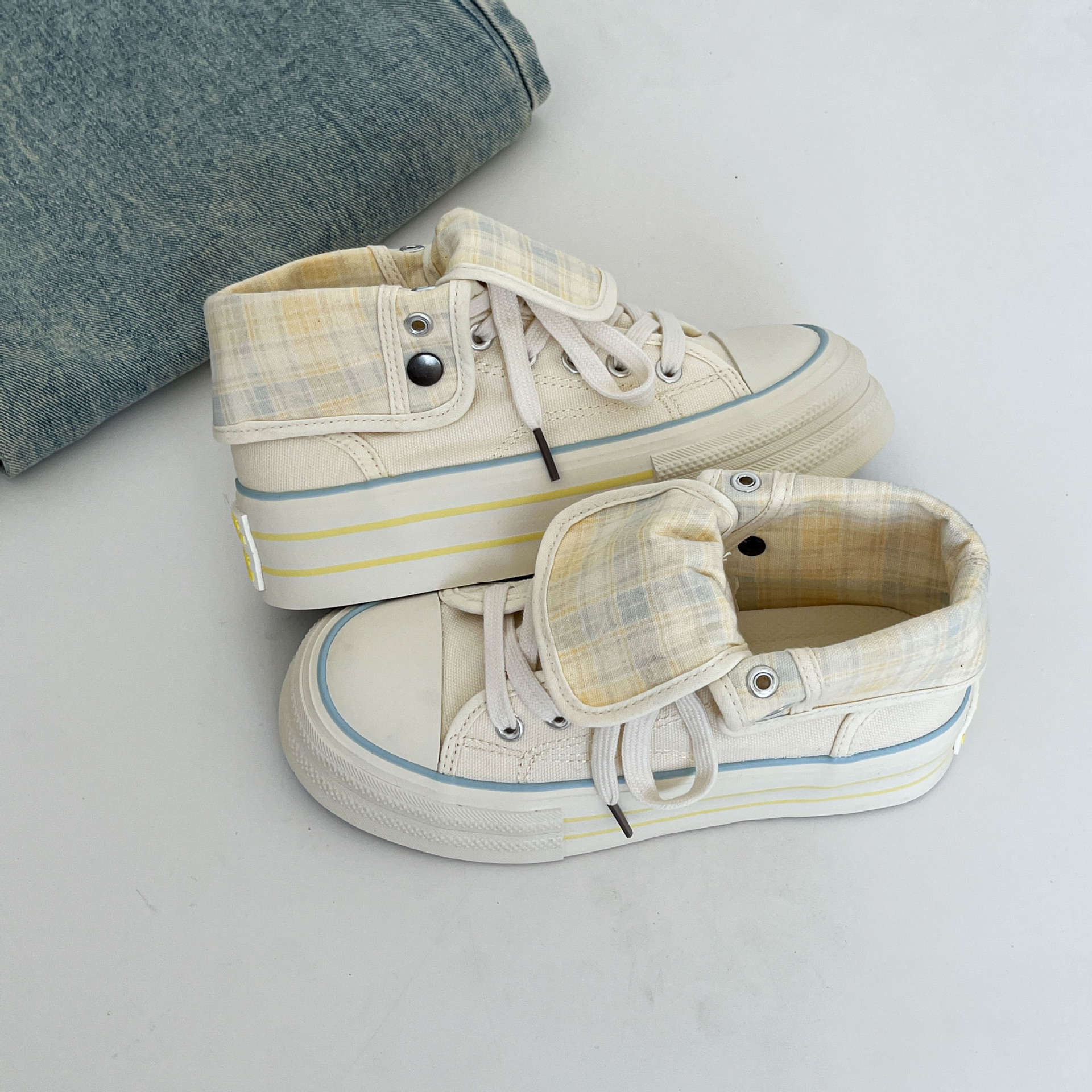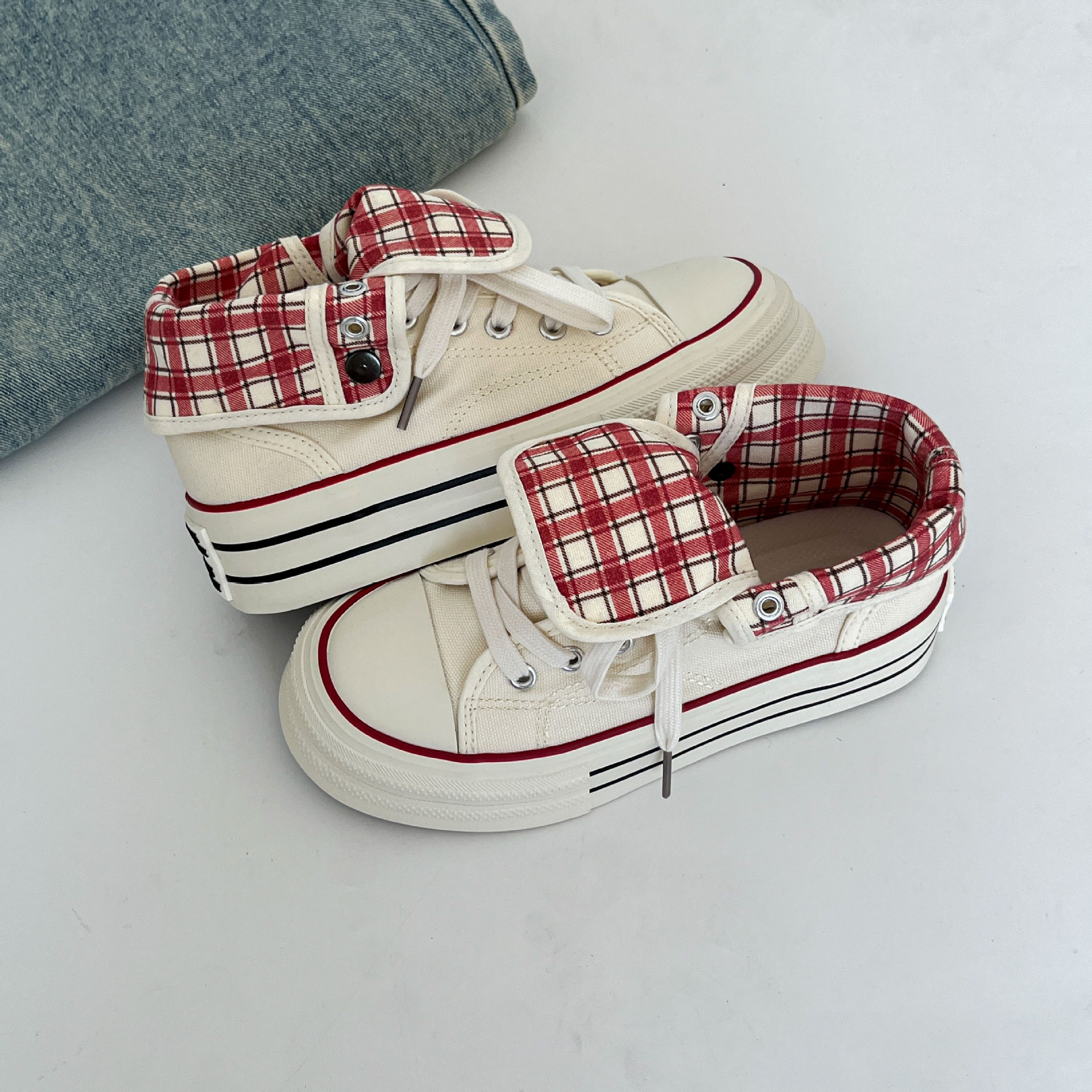 【YW】无忧购 两穿高帮增高帆布鞋女新款复古白色增高小众休闲鞋6163(截单后3-5天发货)