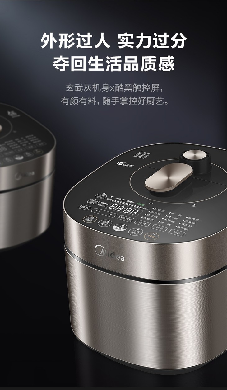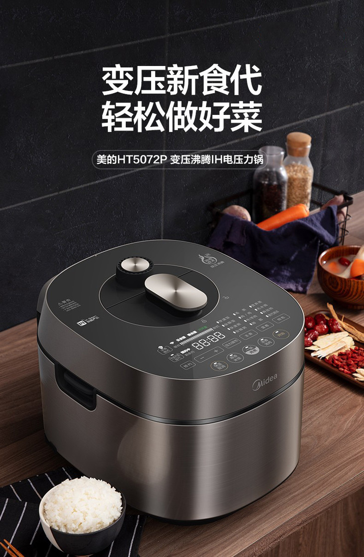 美的(508929)电压力锅 HT5072P IH电磁加热家用WIFI智控智能预约多功能高压锅 精钢厚釜5L大容量双胆