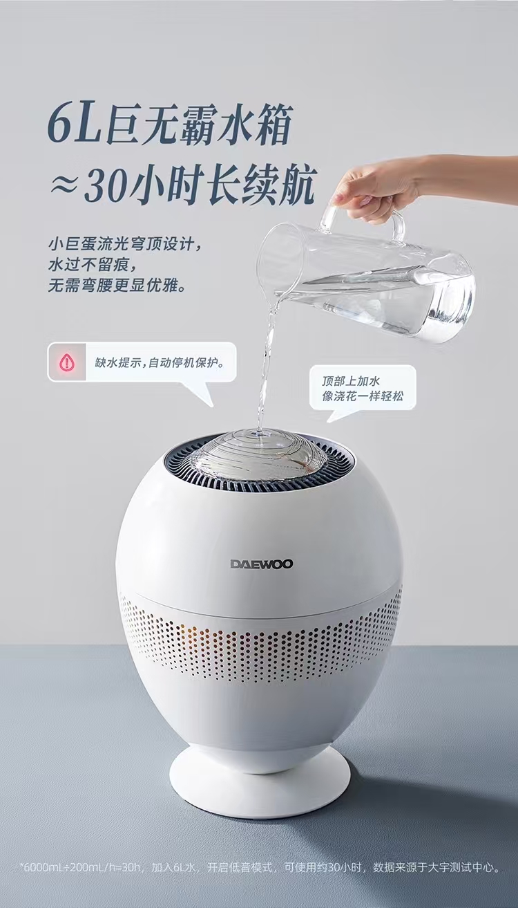 DAEWOO大宇小巨蛋无雾加湿器家用孕妇卧室6L大容量PH05