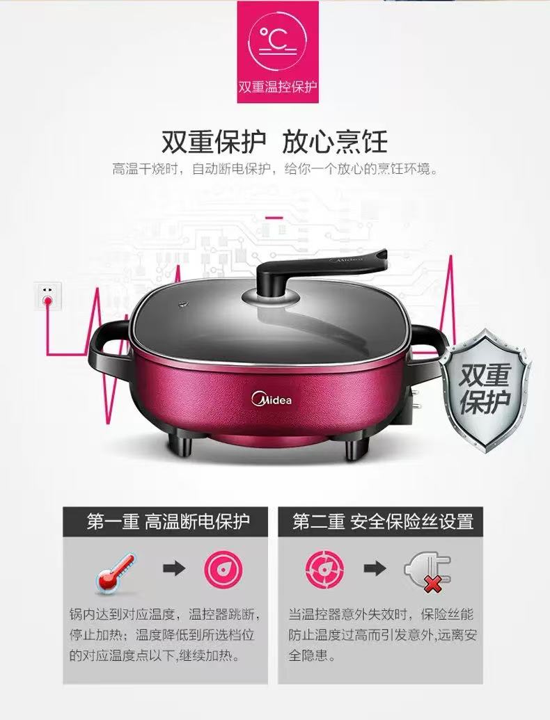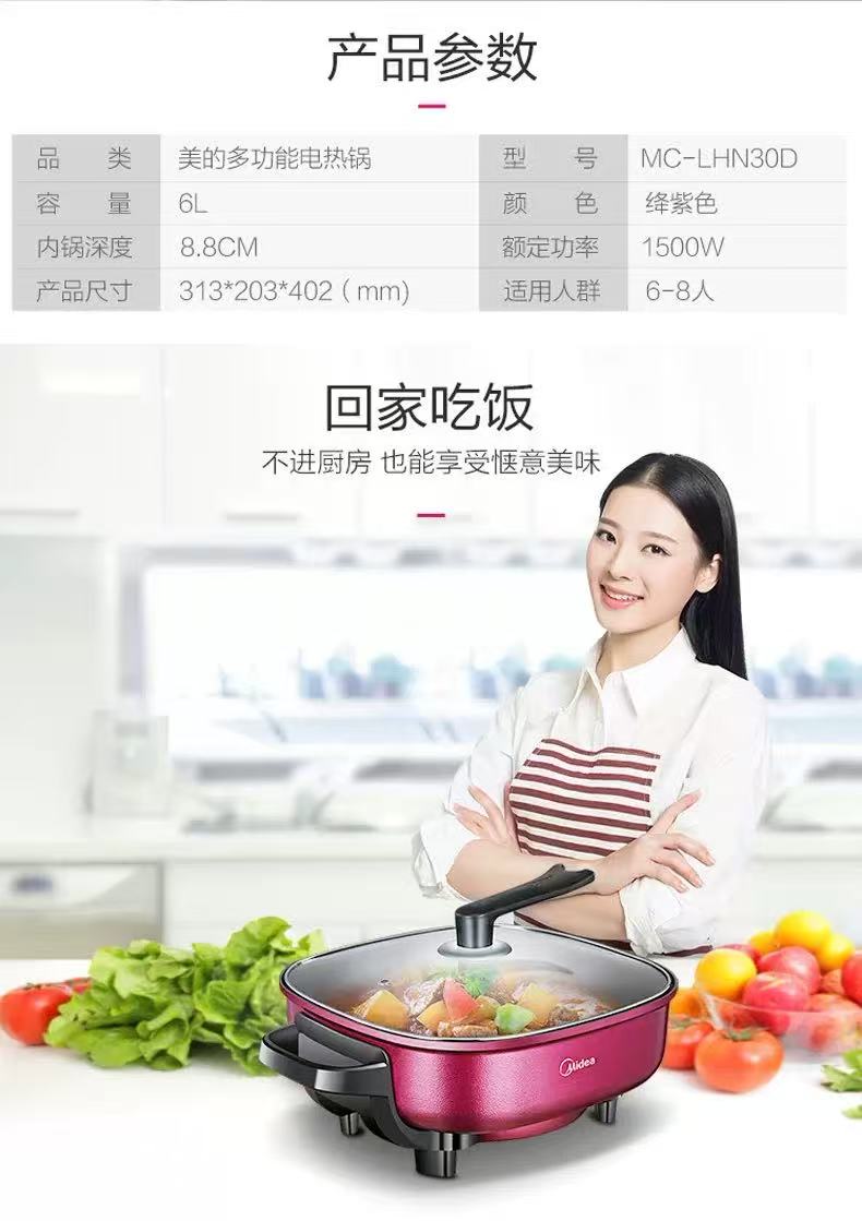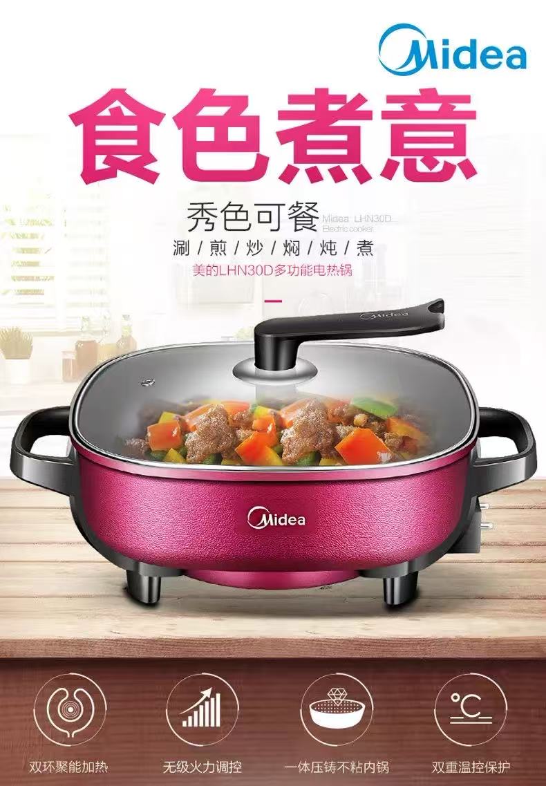 美的MC-LHN30D电火锅家用多功能一体式电炒锅炒菜不粘锅【LY】