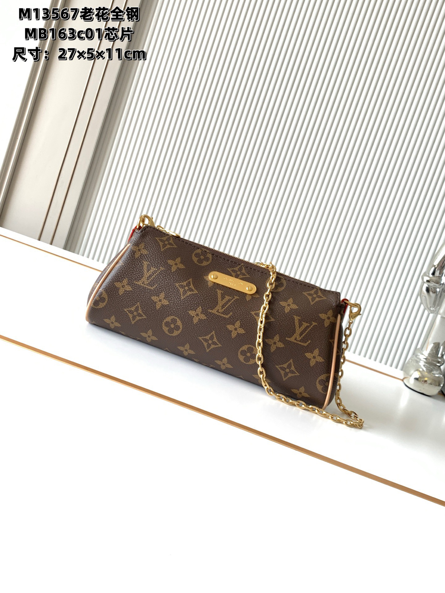 秋冬特惠💰1130 渠道级LV【全钢五金 MB163c01变码芯片】te级LV 全套包装 M13567老花 本款 Pochette Eva 手袋为品牌 Monogram 帆布搭配撞色皮革饰边,以别致笔触传递典雅风范。路易威登铭纹标识牌和可拆卸链条相得益彰,恰宜构型便于收纳短款钱夹和化妆品等日常所需。尺寸:27 x 5 x 11厘米 (长度 x 宽 x 高)