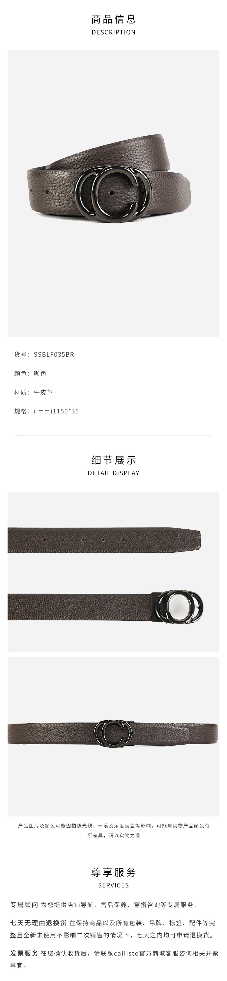callisto咖色牛皮革皮带 SSBLF035C