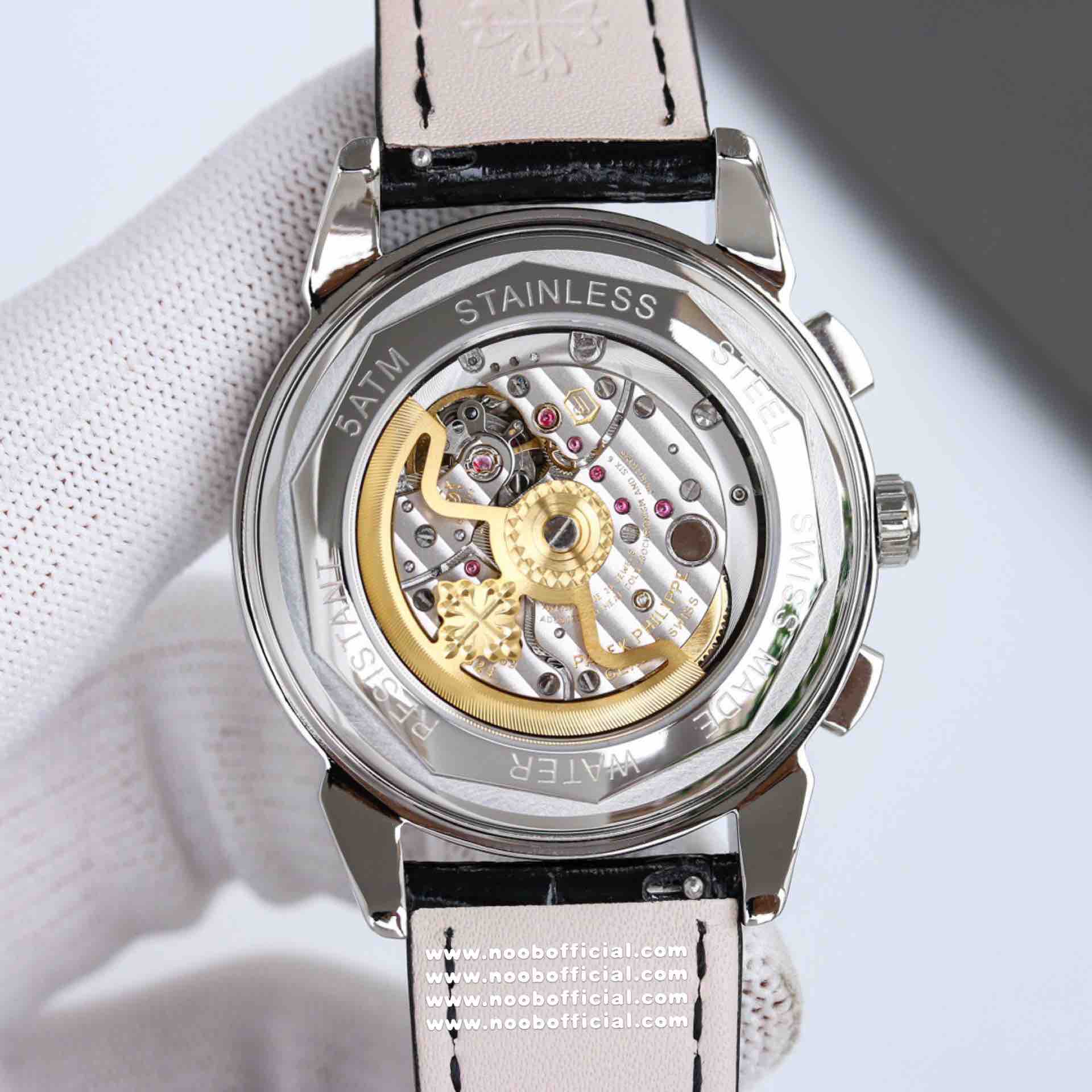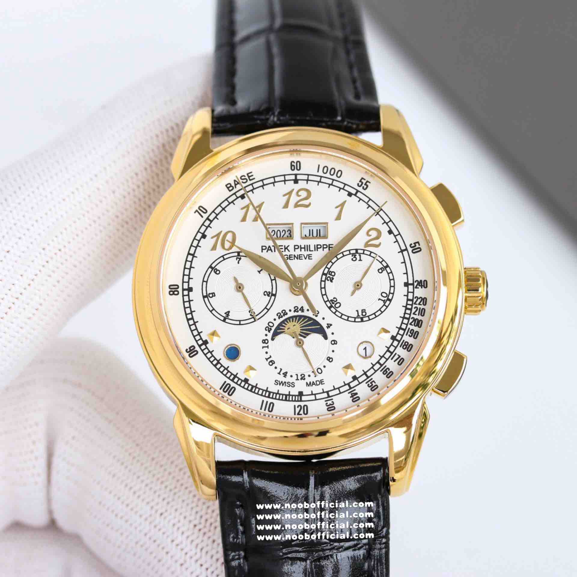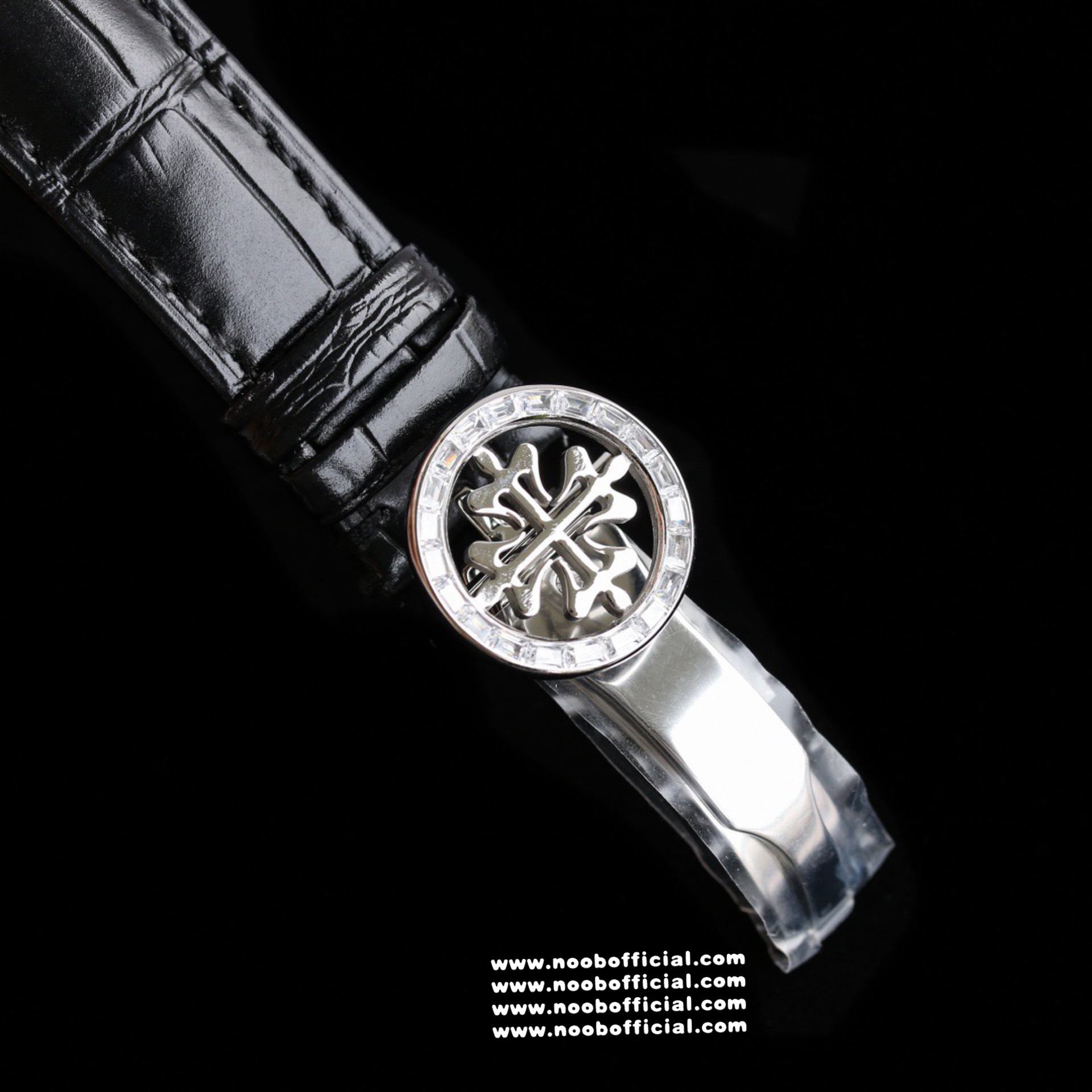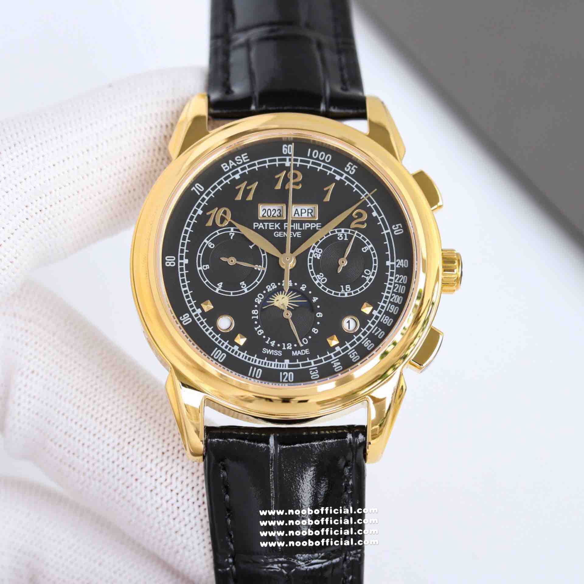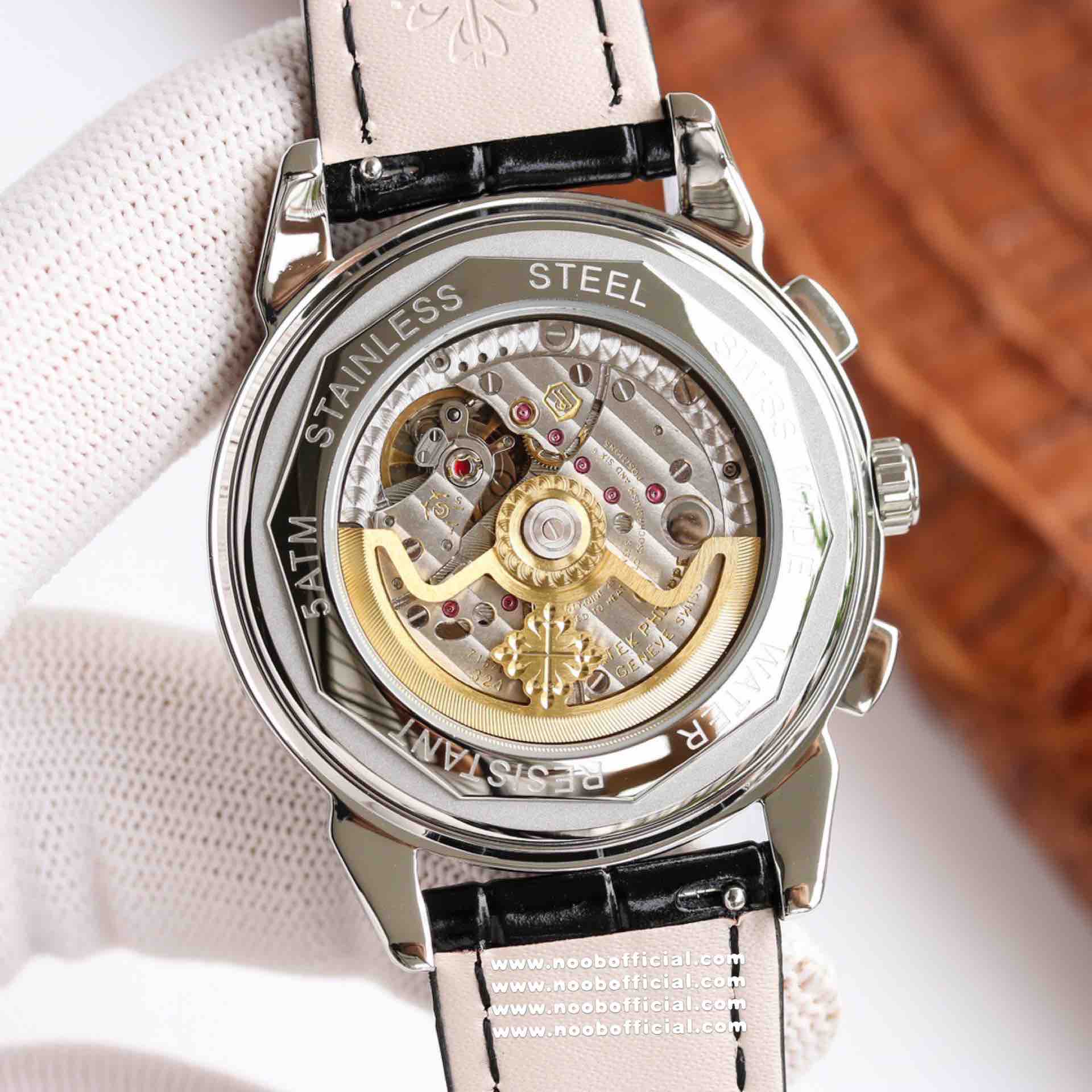 Noob Maker,N厂市场独家,耗时2年,18k包金版本和定制版手工镶钻工艺来啦,由20种不同钻组成,色泽艳丽,扣子也点缀21颗钻,搭配正品一致的美洲鳄鱼皮表带百达.翡丽超级复杂功能计时系列